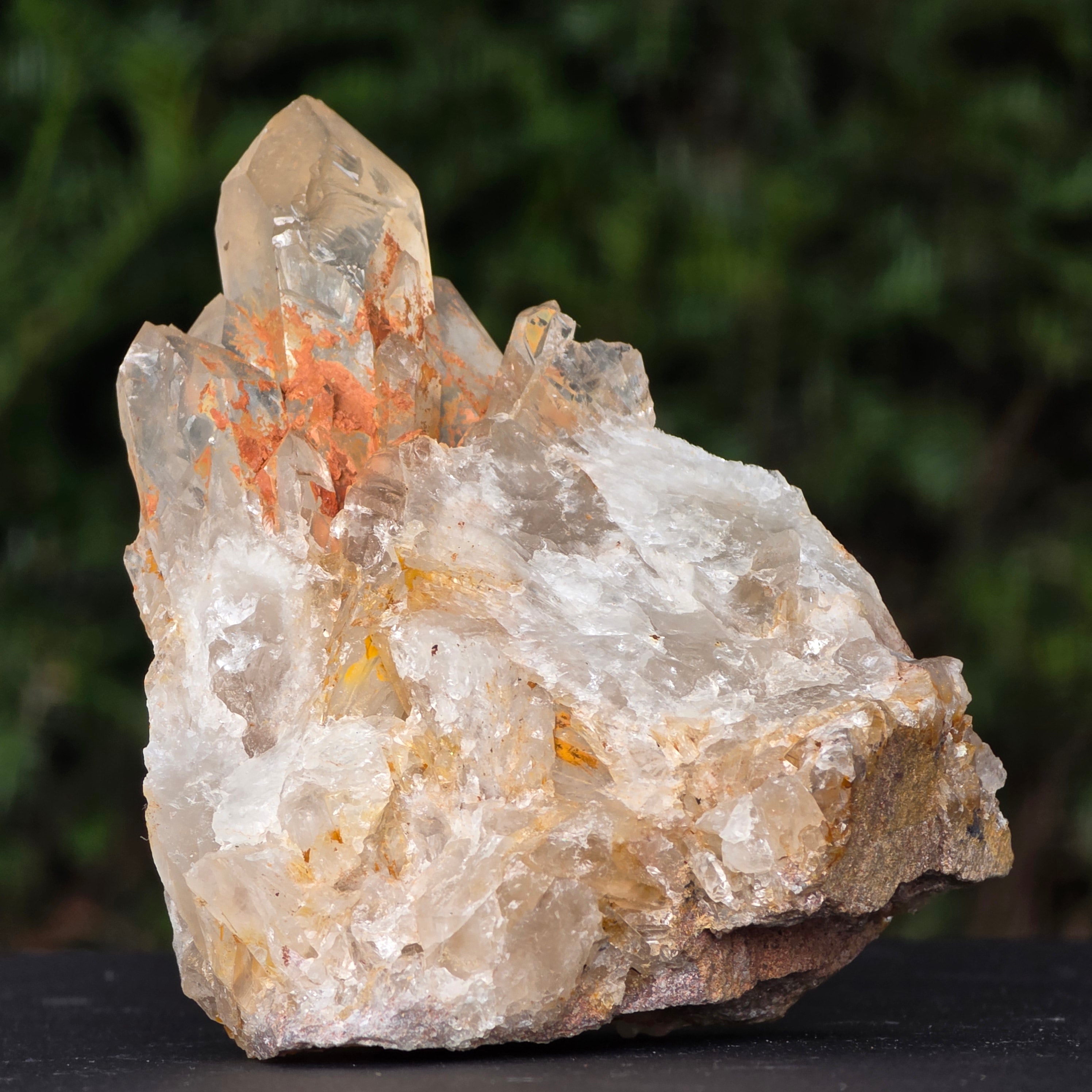 În adâncurile continentului african, acolo unde pământul freamătă de viață primordială, a luat naștere acest citrin – o piatră rară și misterioasă, extrasă din solurile bogate ale Congo-ului. Cu nuanțe calde, ce pendulează între galben-auriu și umbre discrete de fum, acest specimen natural poartă amprenta timpului și a transformărilor lente ale Pământului.