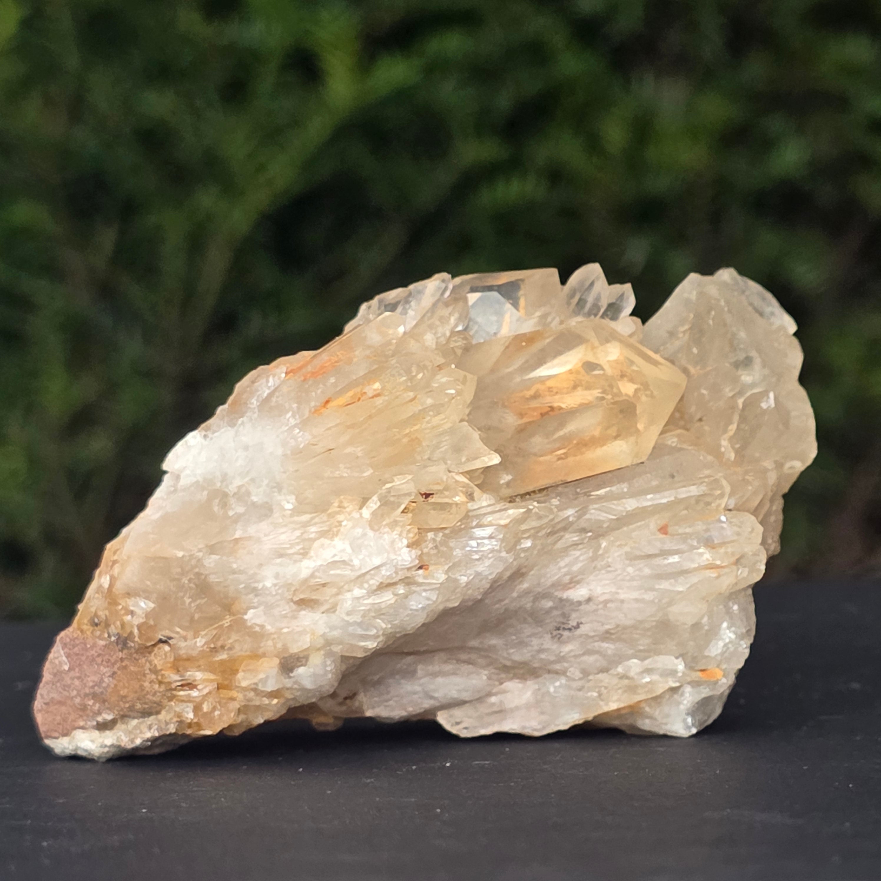 În adâncurile continentului african, acolo unde pământul freamătă de viață primordială, a luat naștere acest citrin – o piatră rară și misterioasă, extrasă din solurile bogate ale Congo-ului. Cu nuanțe calde, ce pendulează între galben-auriu și umbre discrete de fum, acest specimen natural poartă amprenta timpului și a transformărilor lente ale Pământului.