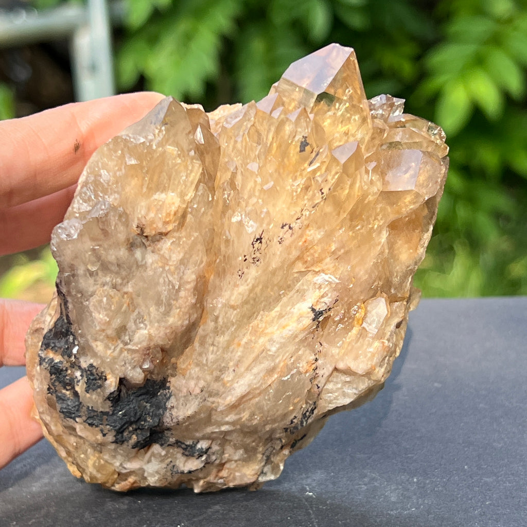 În adâncurile continentului african, acolo unde pământul freamătă de viață primordială, a luat naștere acest citrin fumuriu – o piatră rară și misterioasă, extrasă din solurile bogate ale Congo-ului. Cu nuanțe calde, ce pendulează între galben-auriu și umbre discrete de fum, acest specimen natural poartă amprenta timpului și a transformărilor lente ale Pământului.