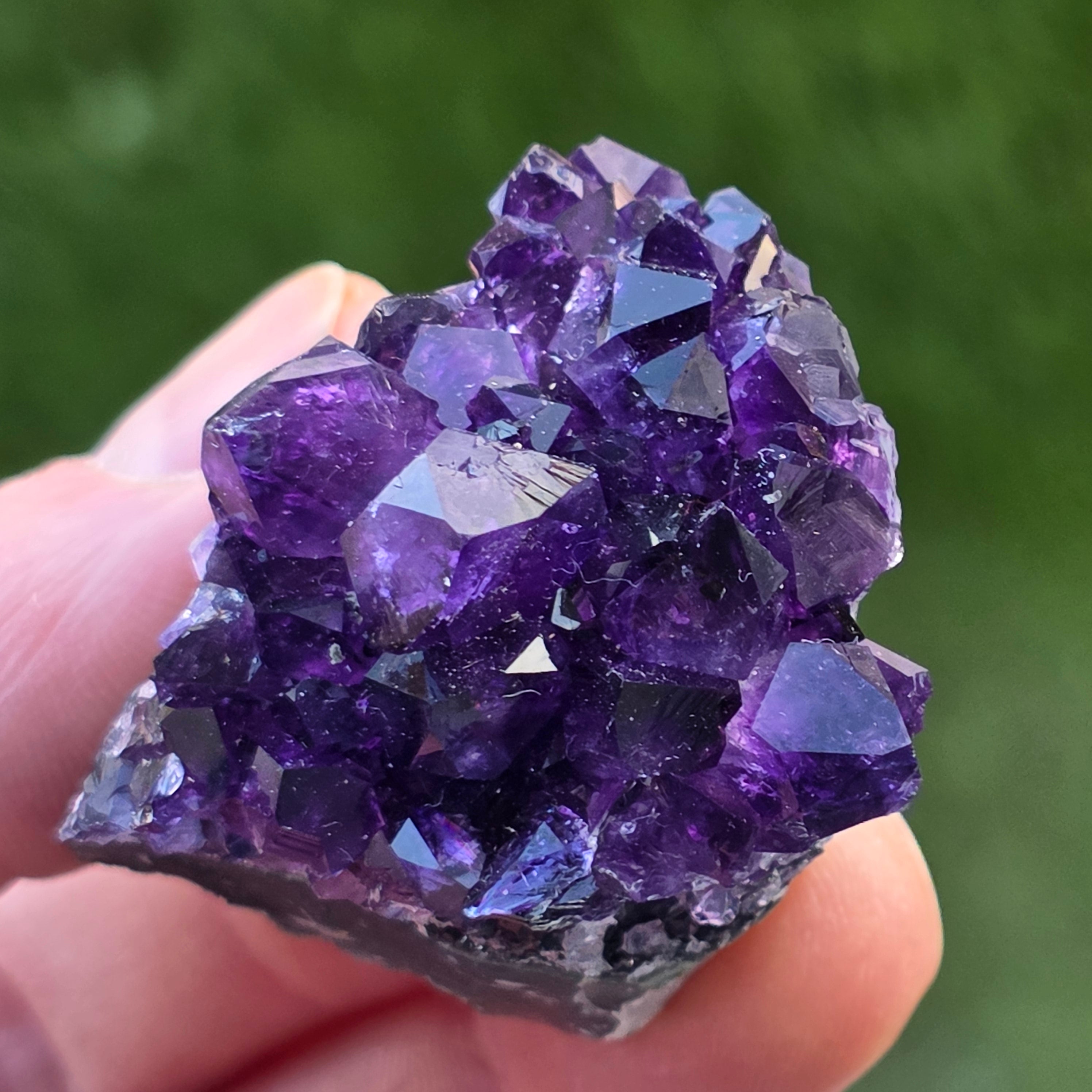 Acest cluster de ametist din Uruguay, de o calitate excepțională, poartă o vibrație înaltă de purificare și claritate. Cristalele sale perfect formate captează lumina într-un dans hipnotic de nuanțe violete – o piesă rară, ideală pentru colecționari sau pentru spații care cer rafinament și echilibru energetic autentic.