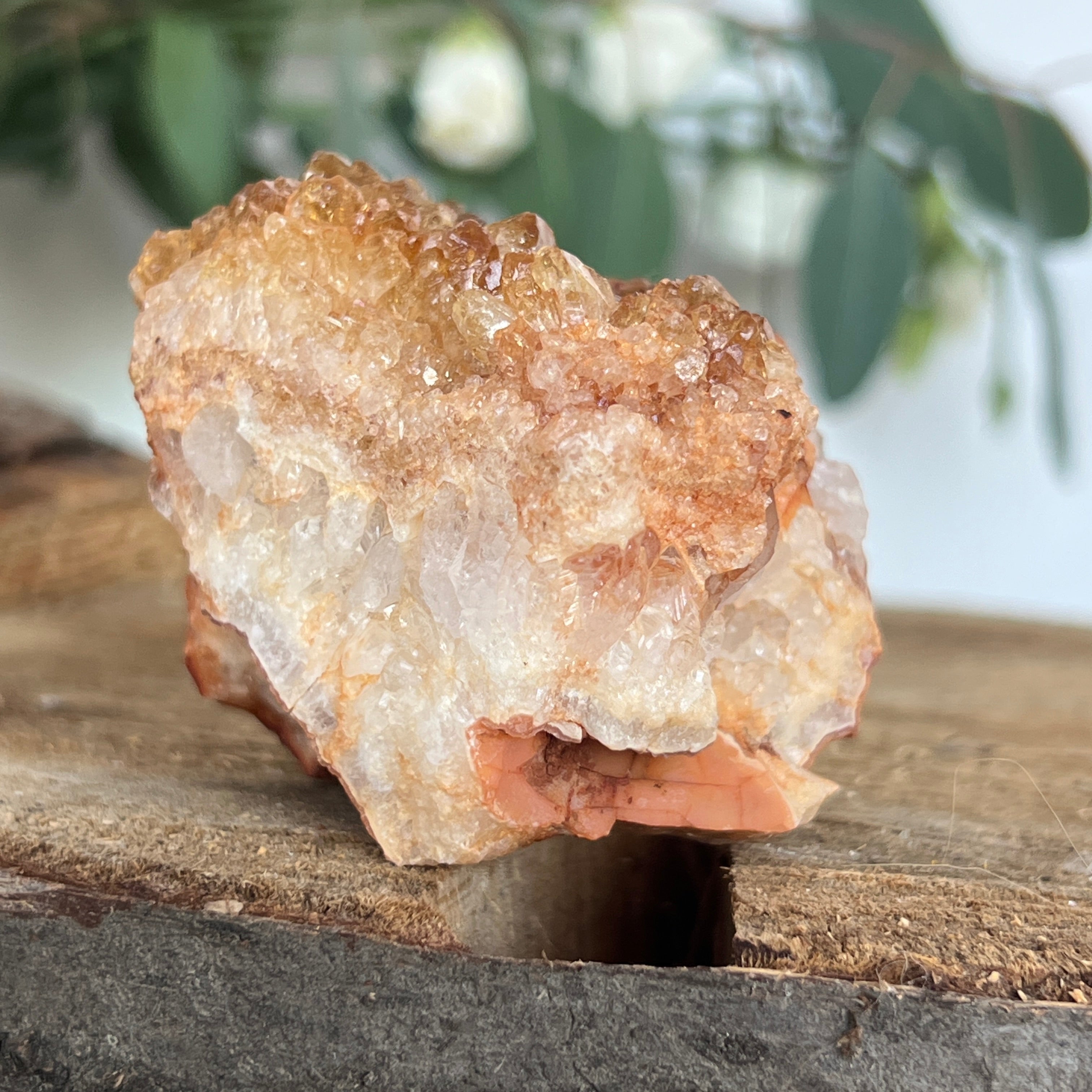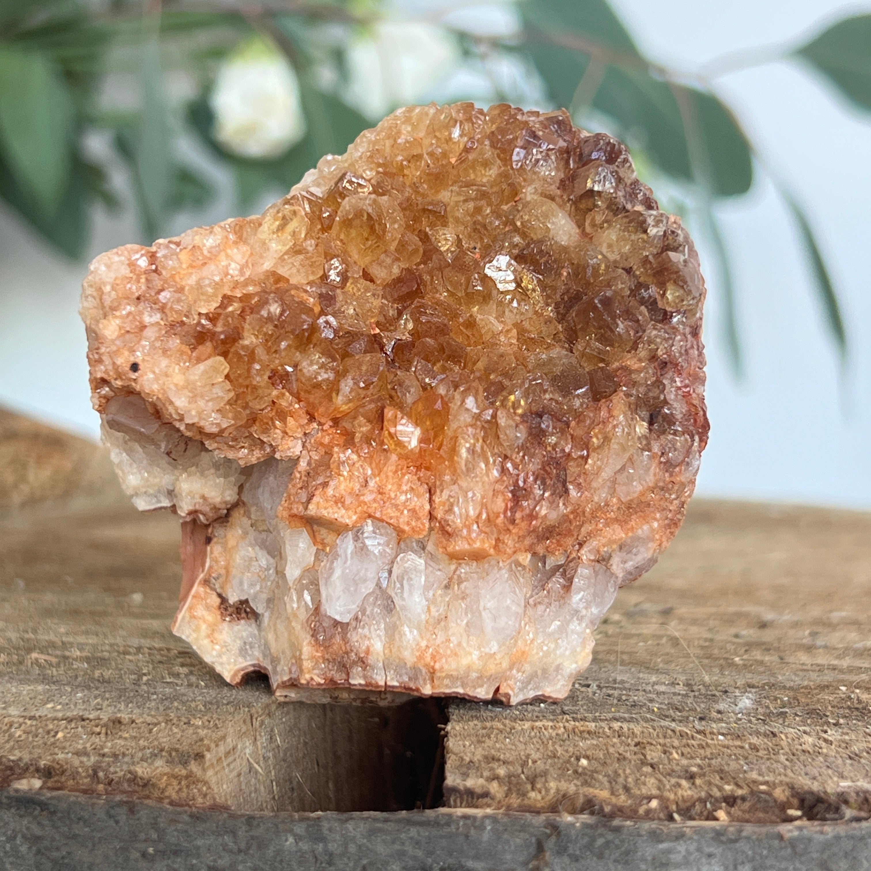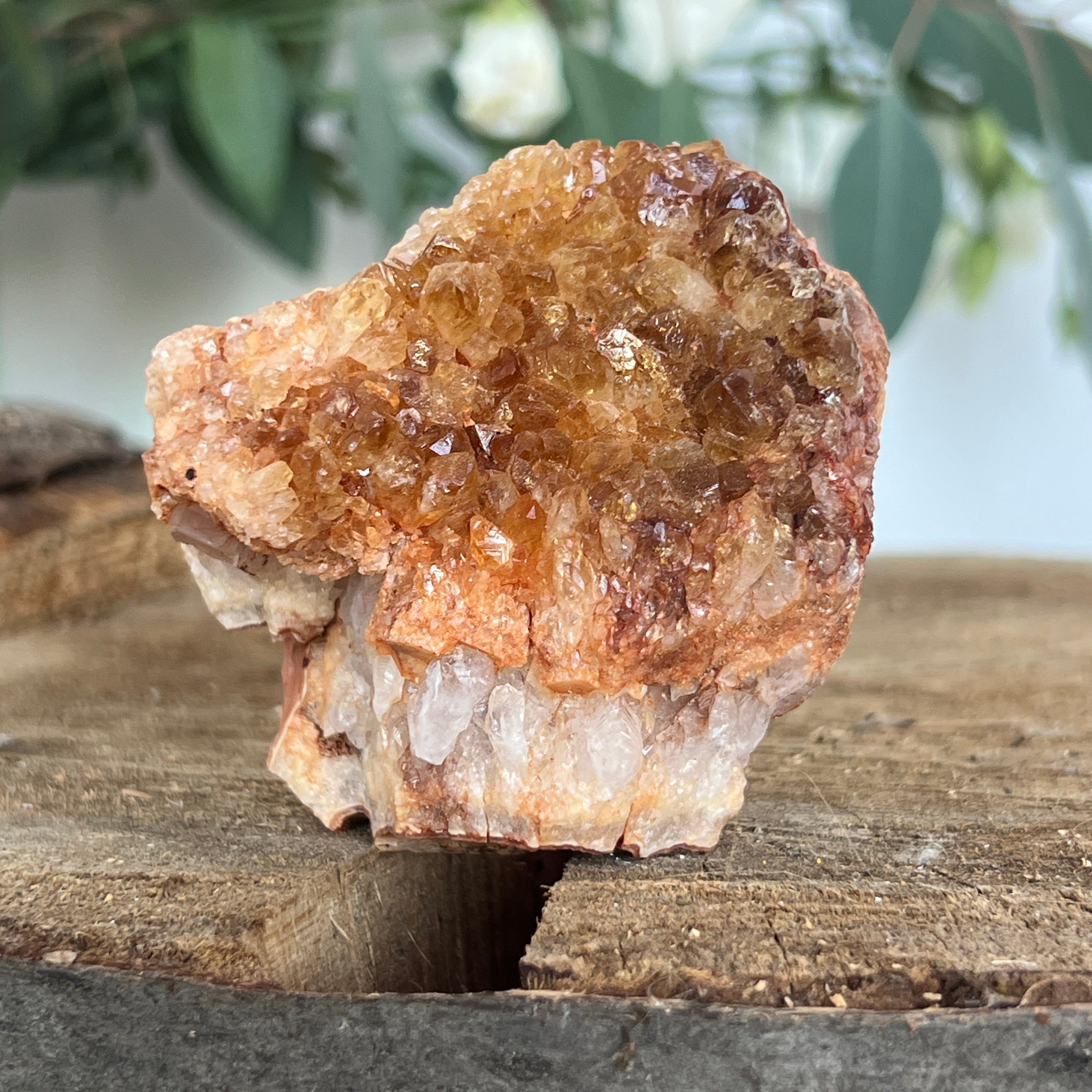 În cristaloterapie, citrinul este considerat piatra abundenței și a optimismului. Chiar și în forma tratată termic, vibrația sa luminoasă este percepută ca un sprijin pentru claritate mentală, bucurie și manifestarea intențiilor. Un cluster de această mărime și intensitate devine un adevărat punct de lumină într-un spațiu, atrăgând armonie și prosperitate.