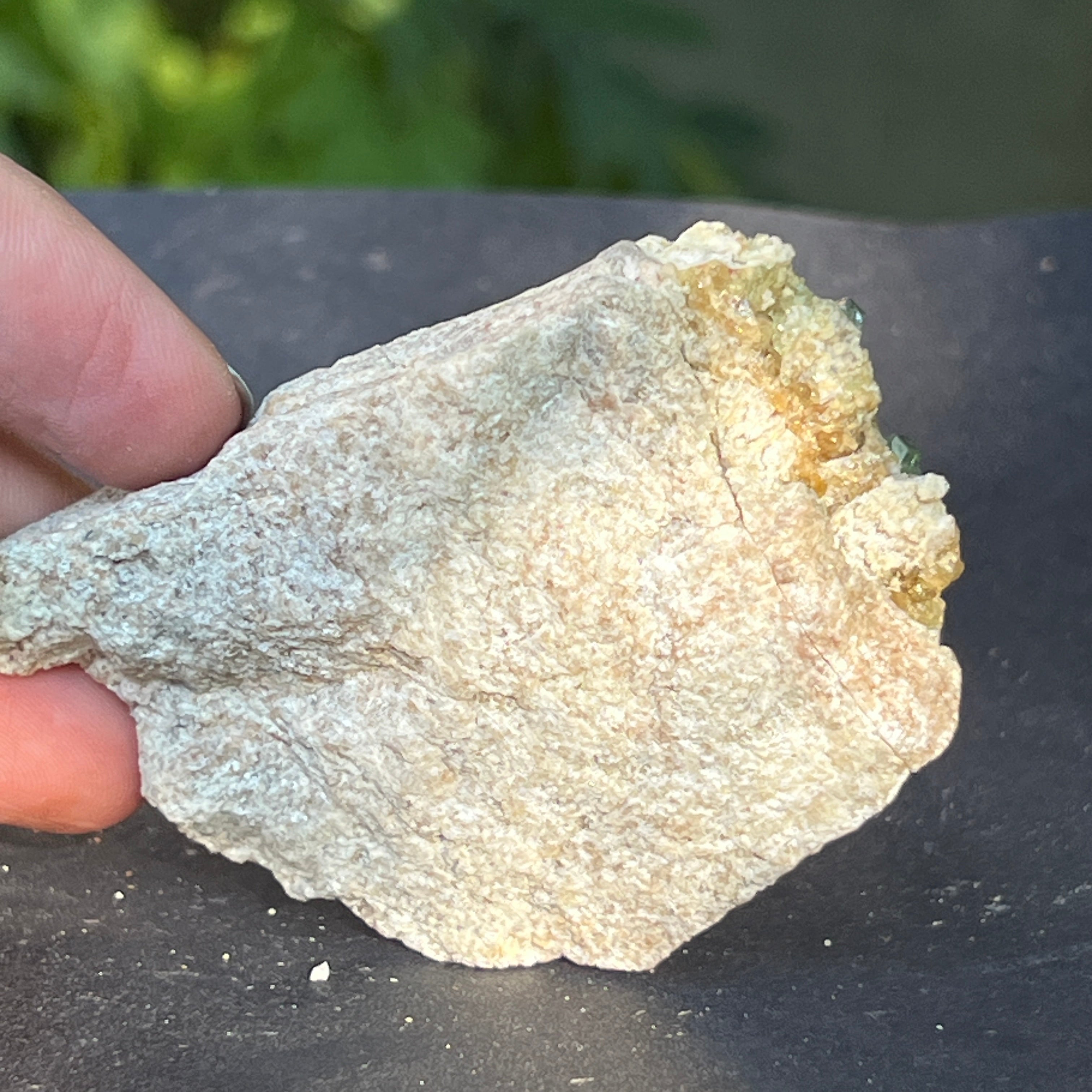 Descriere - Cluster granat verde Demantoid pe matrice – specimen brut din Erongo, Namibia | Model 8