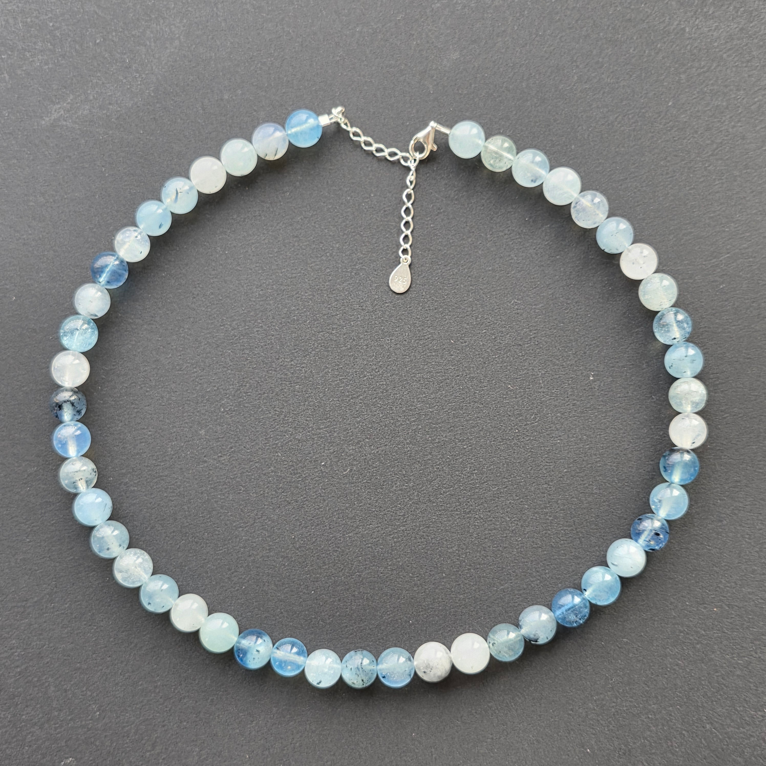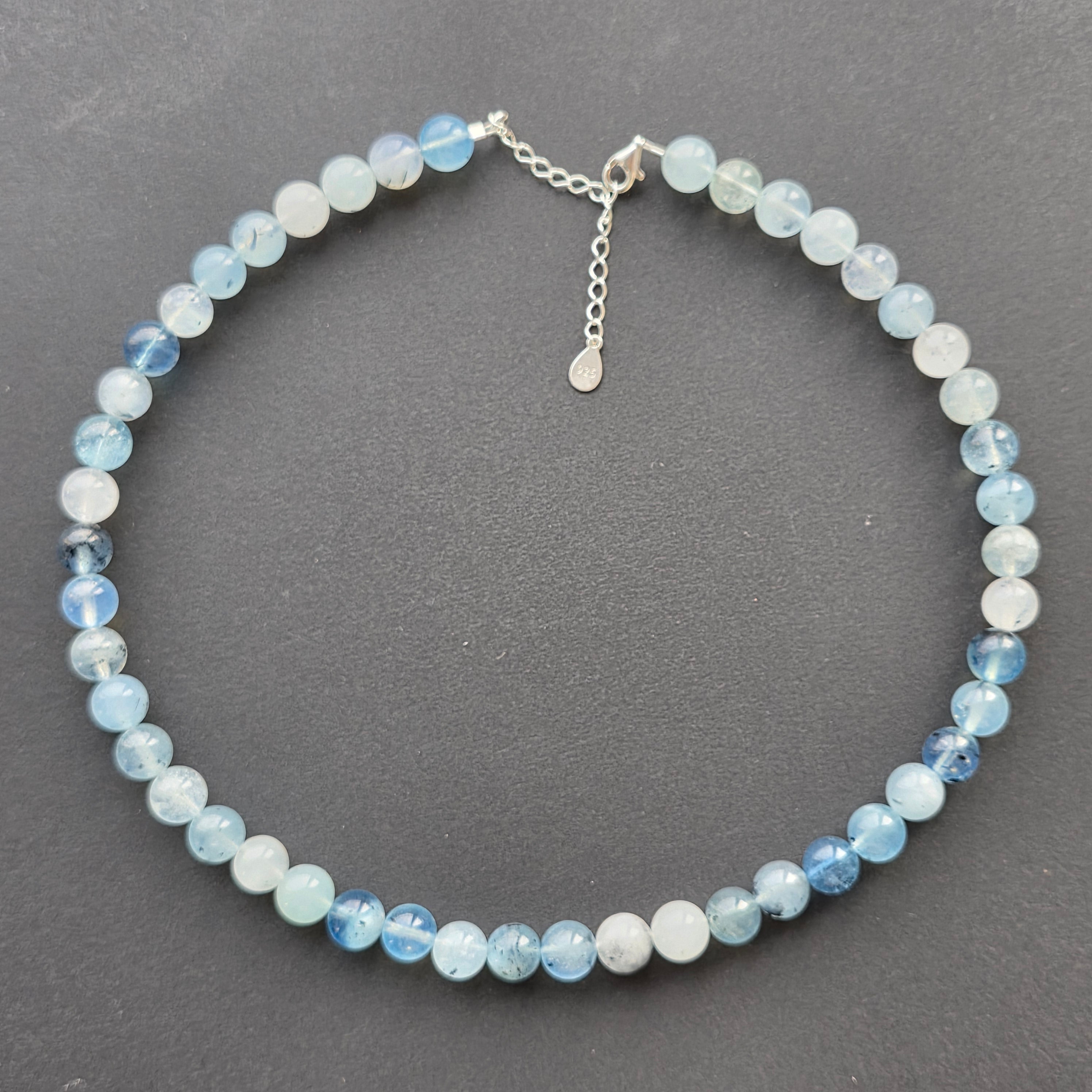 Materiale: acvamarin natural cu incluziuni sfere de 9 mm, argint 925