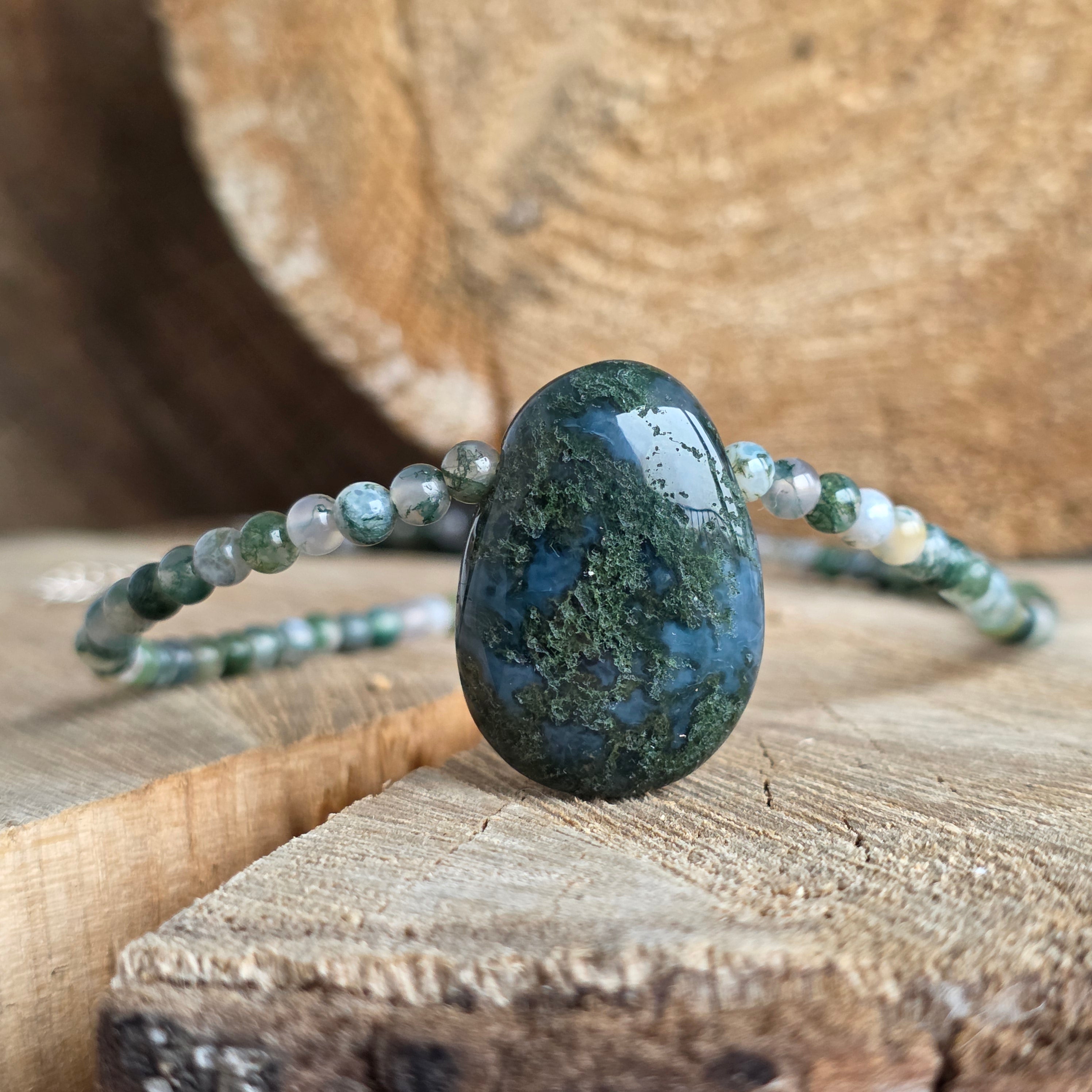 Agatul moss este cunoscut ca piatra conectării cu natura și a echilibrului interior. Se spune că susține regenerarea, stabilitatea emoțională și reîntoarcerea la esență. Este o piatră a celor care caută rădăcini profunde și libertate interioară.
