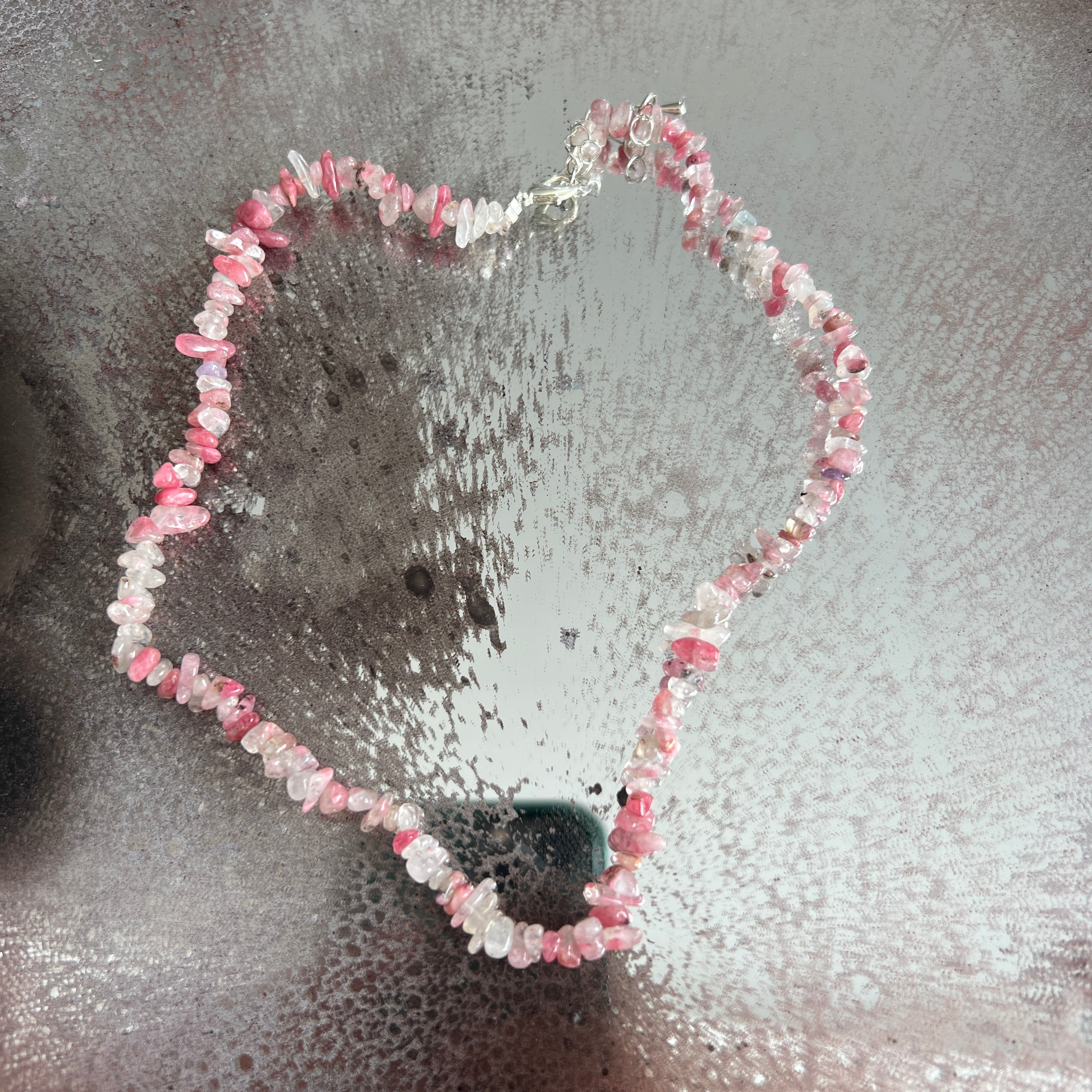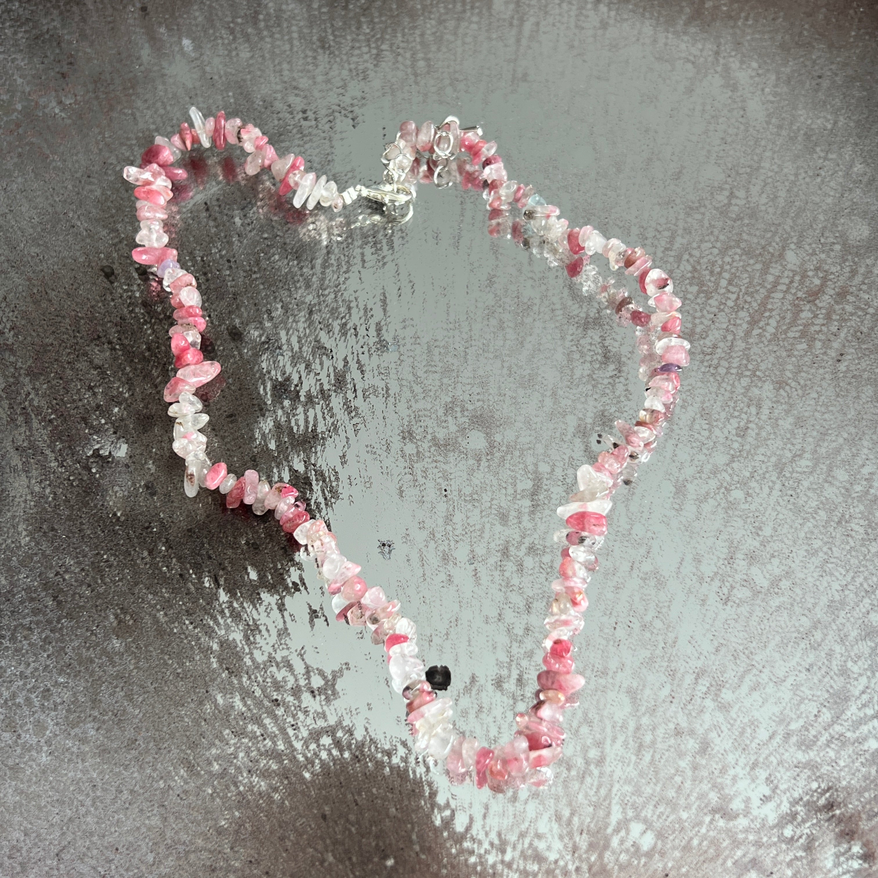 – combinat cu brățări sau cercei din rodonit pentru un set armonios