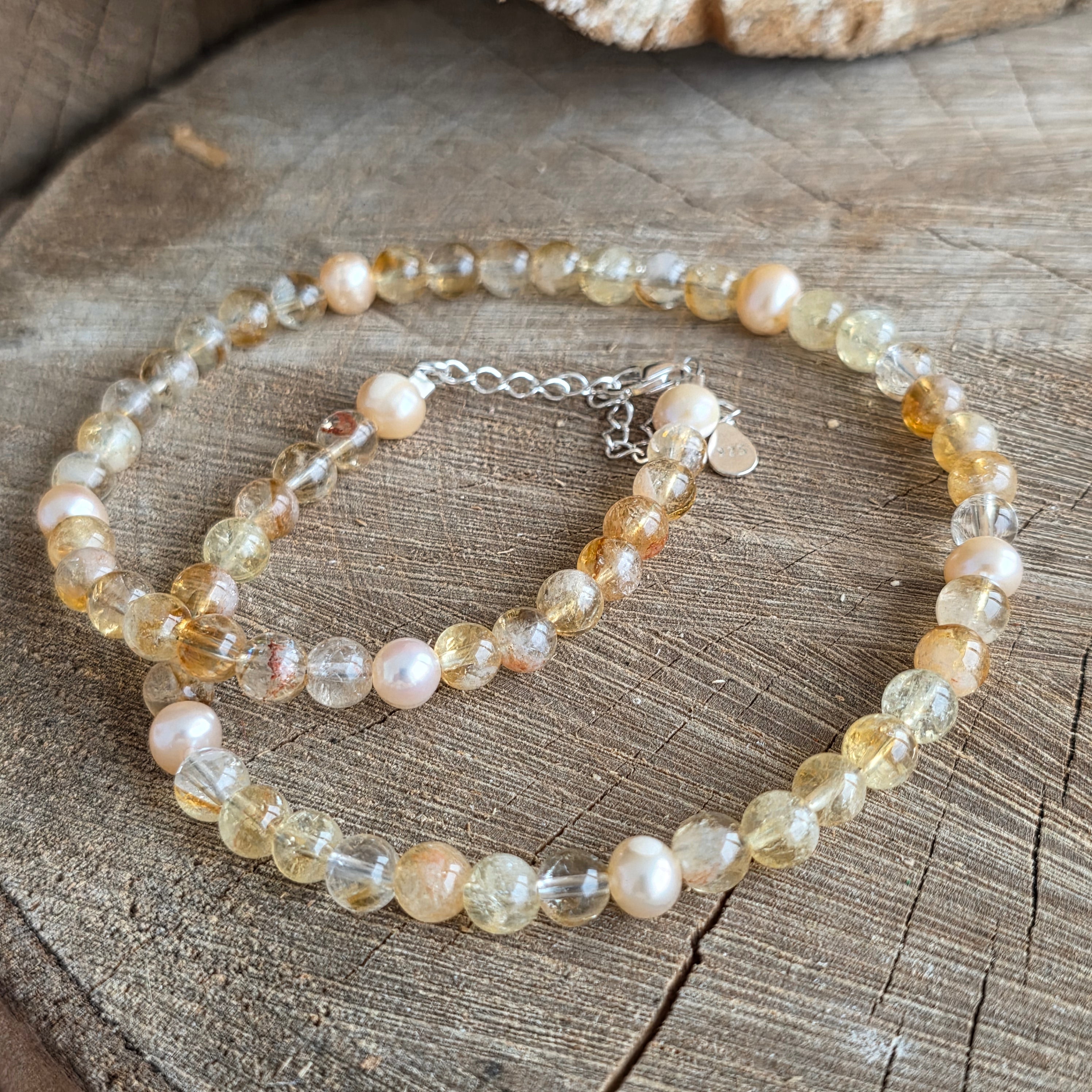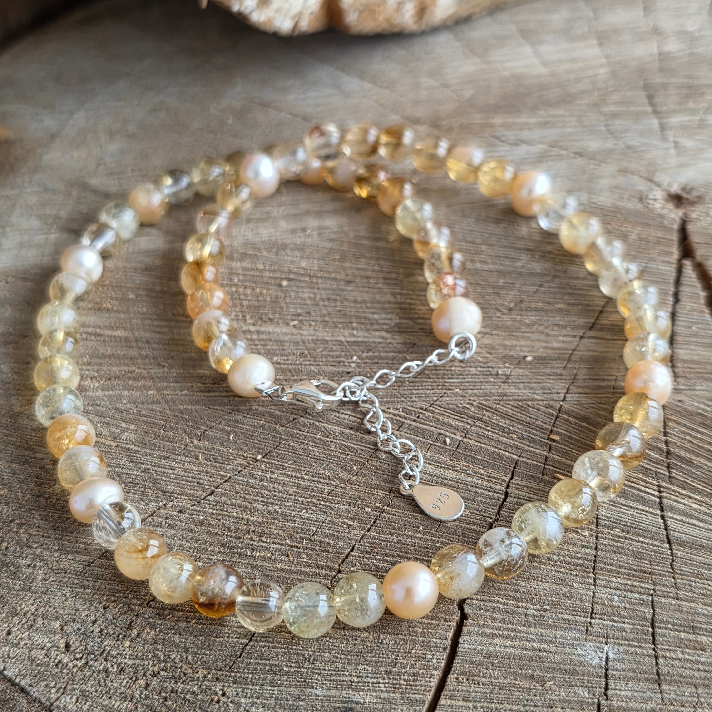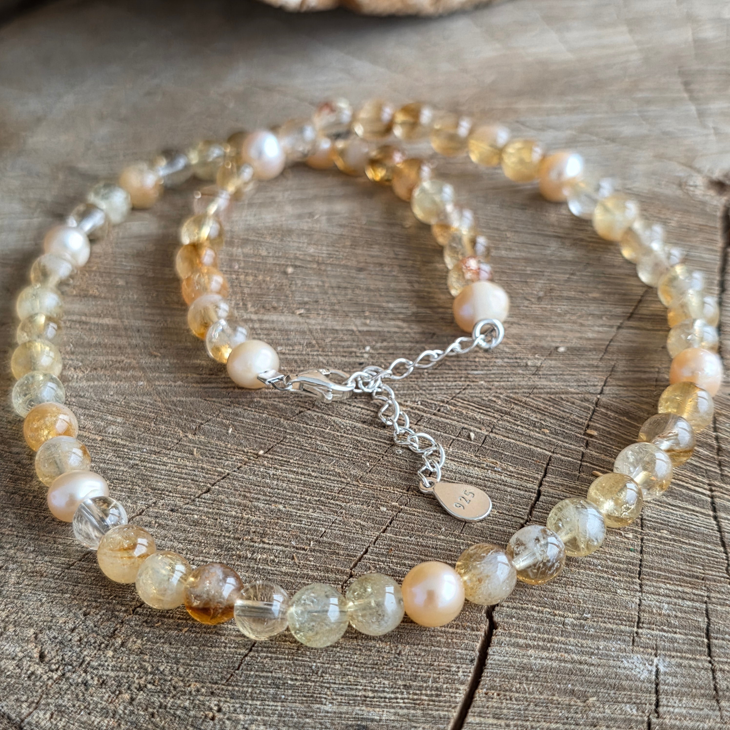 Un colier care captează lumina — pur și simplu. Realizat din citrin natural acest colier radiază căldură, bucurie și claritate. Nu doar o bijuterie, ci o amintire constantă a optimismului și a forței interioare.
