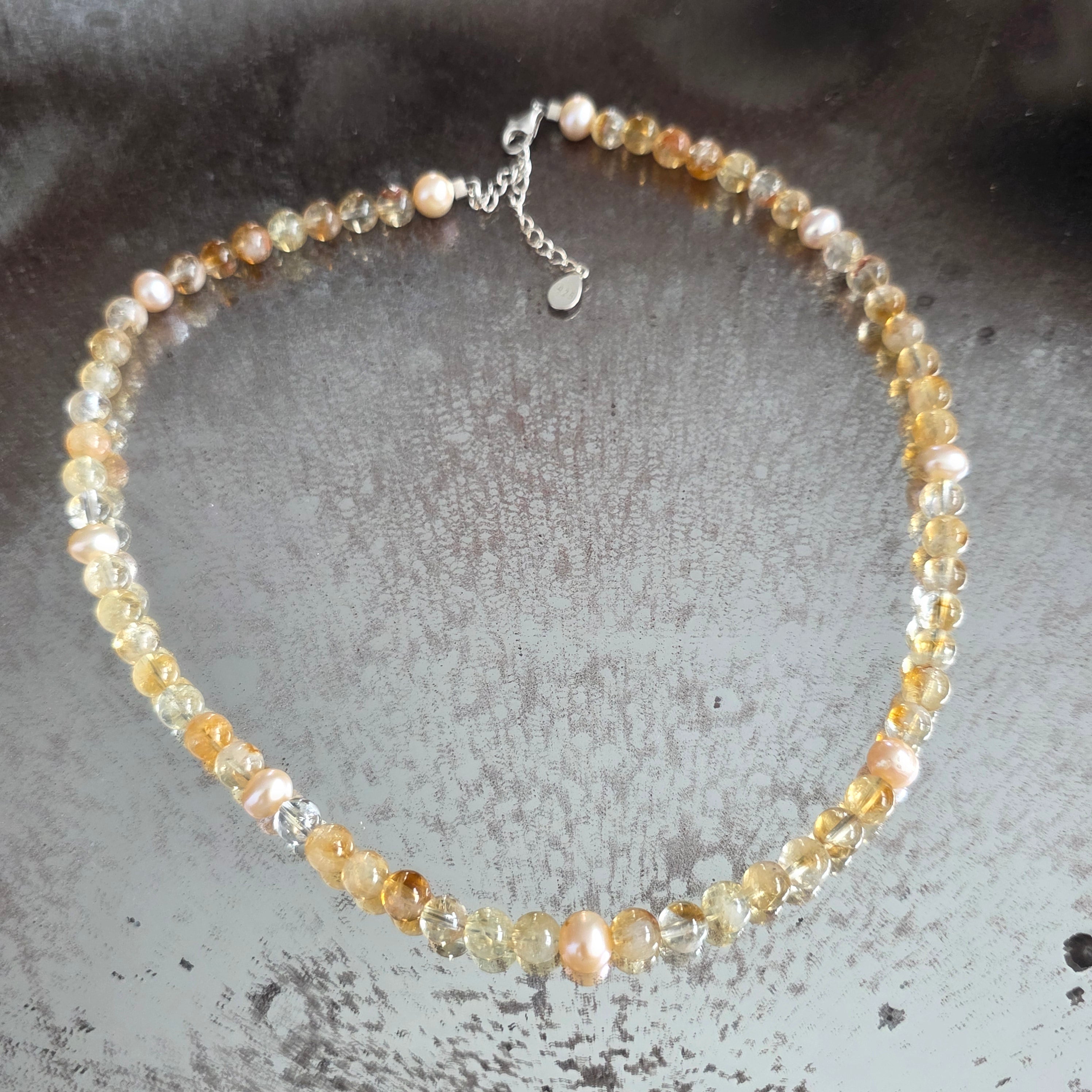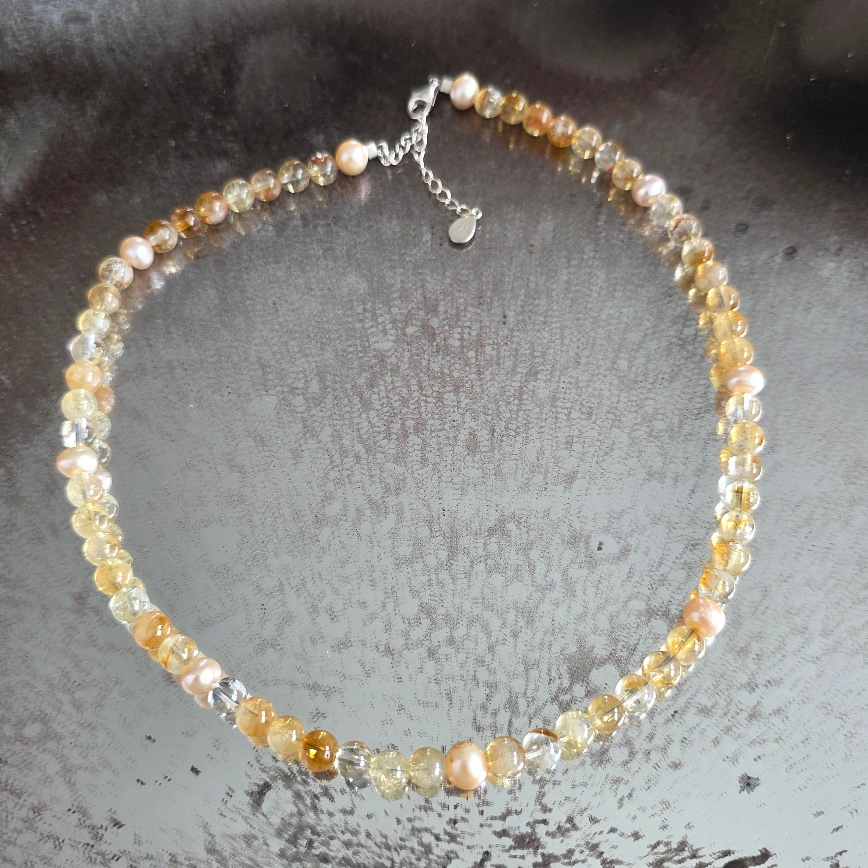 Un colier care captează lumina — pur și simplu. Realizat din citrin natural acest colier radiază căldură, bucurie și claritate. Nu doar o bijuterie, ci o amintire constantă a optimismului și a forței interioare.
