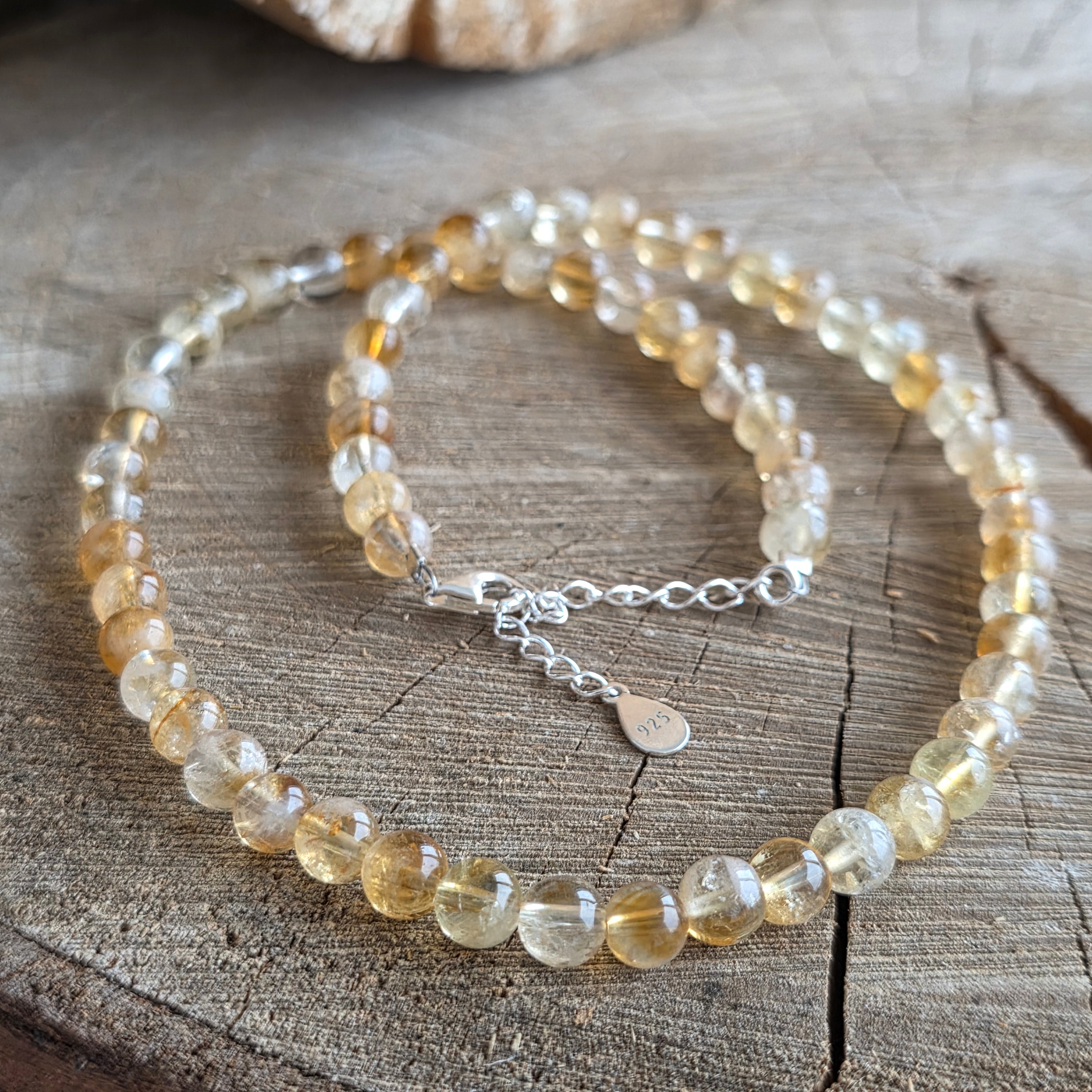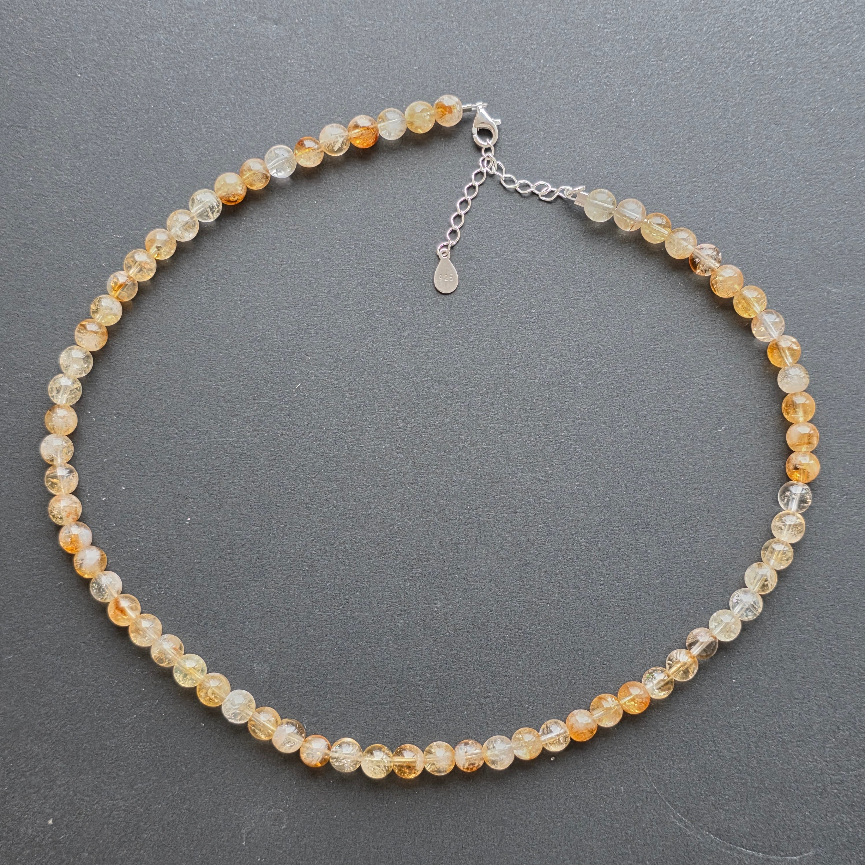 Un colier care captează lumina — pur și simplu. Realizat din citrin natural acest colier radiază căldură, bucurie și claritate. Nu doar o bijuterie, ci o amintire constantă a optimismului și a forței interioare.
