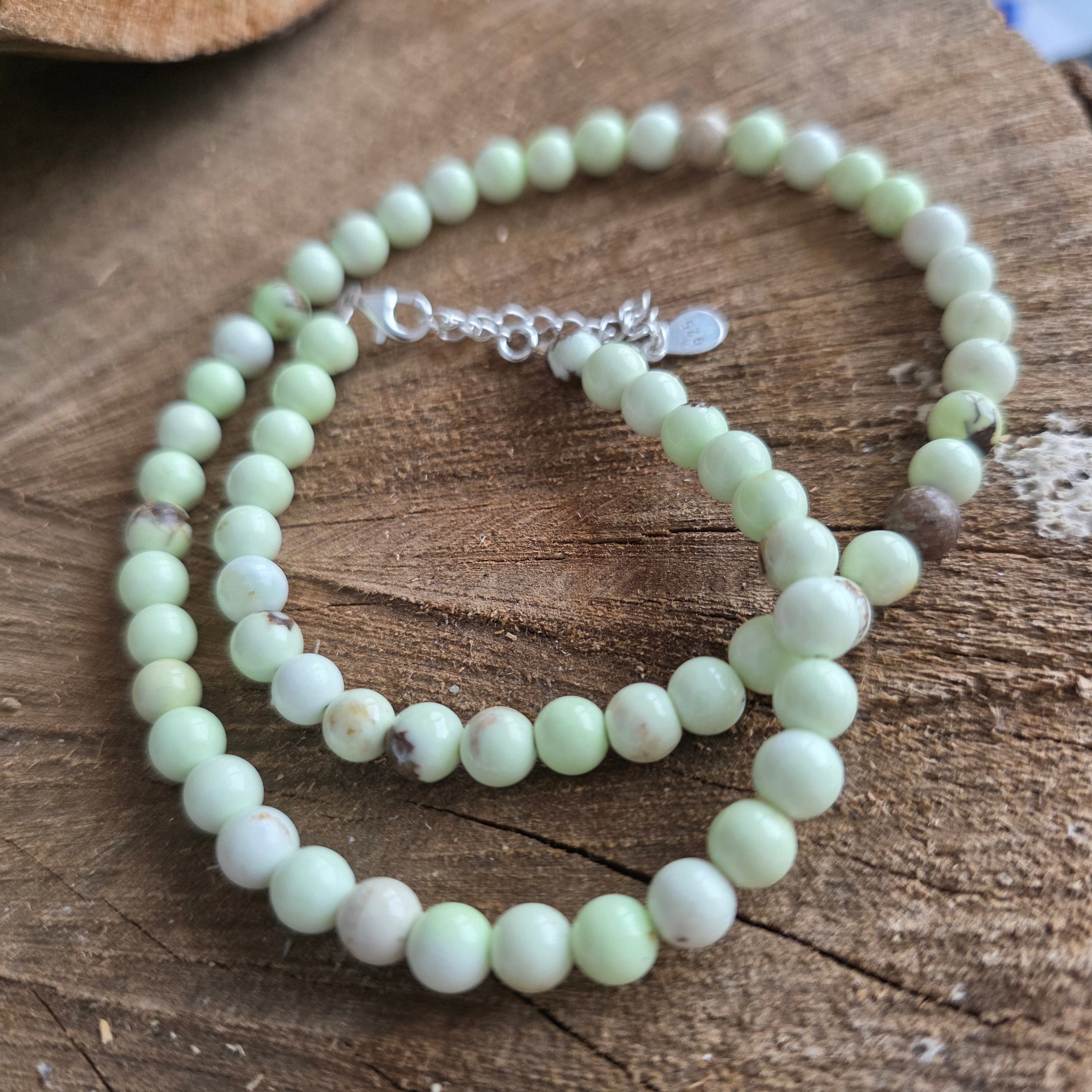 Materiale: crisopraz natural 6 mm, argint 925