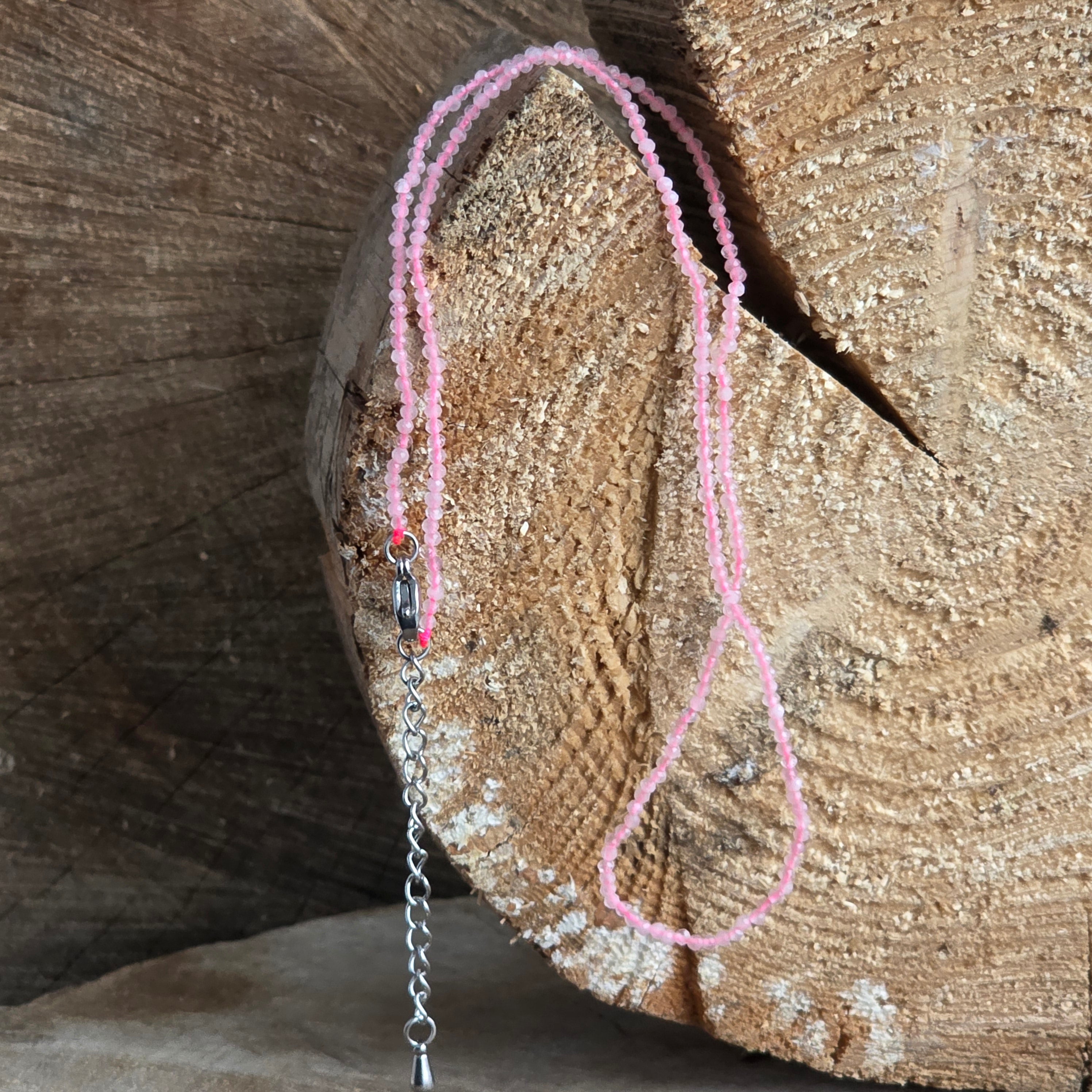 Colier cuart roz sfere 2 mm, dimensiune: 38 + 5 cm (lant prelungire)