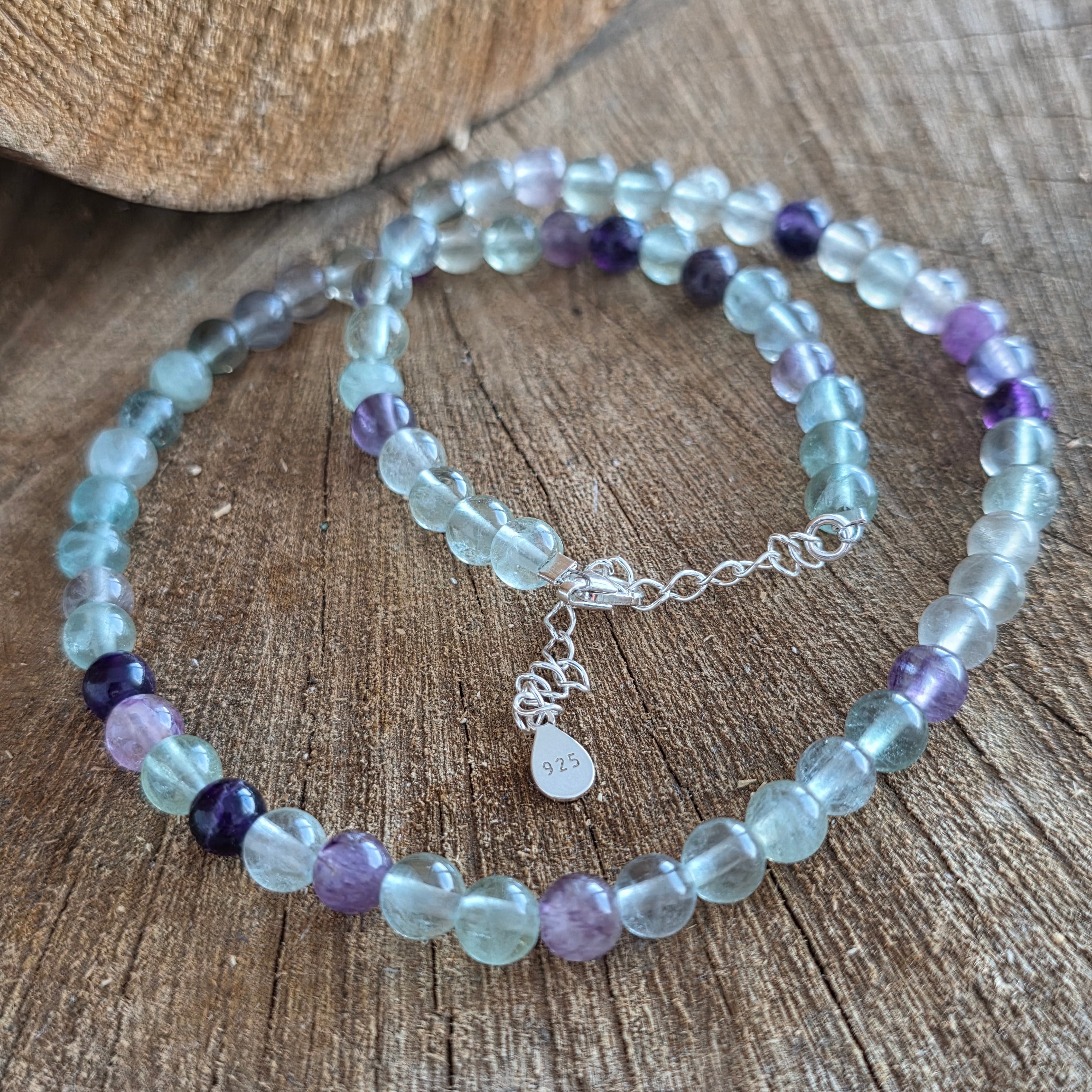 Materiale: fluorit curcubeu 6 mm, argint 925
