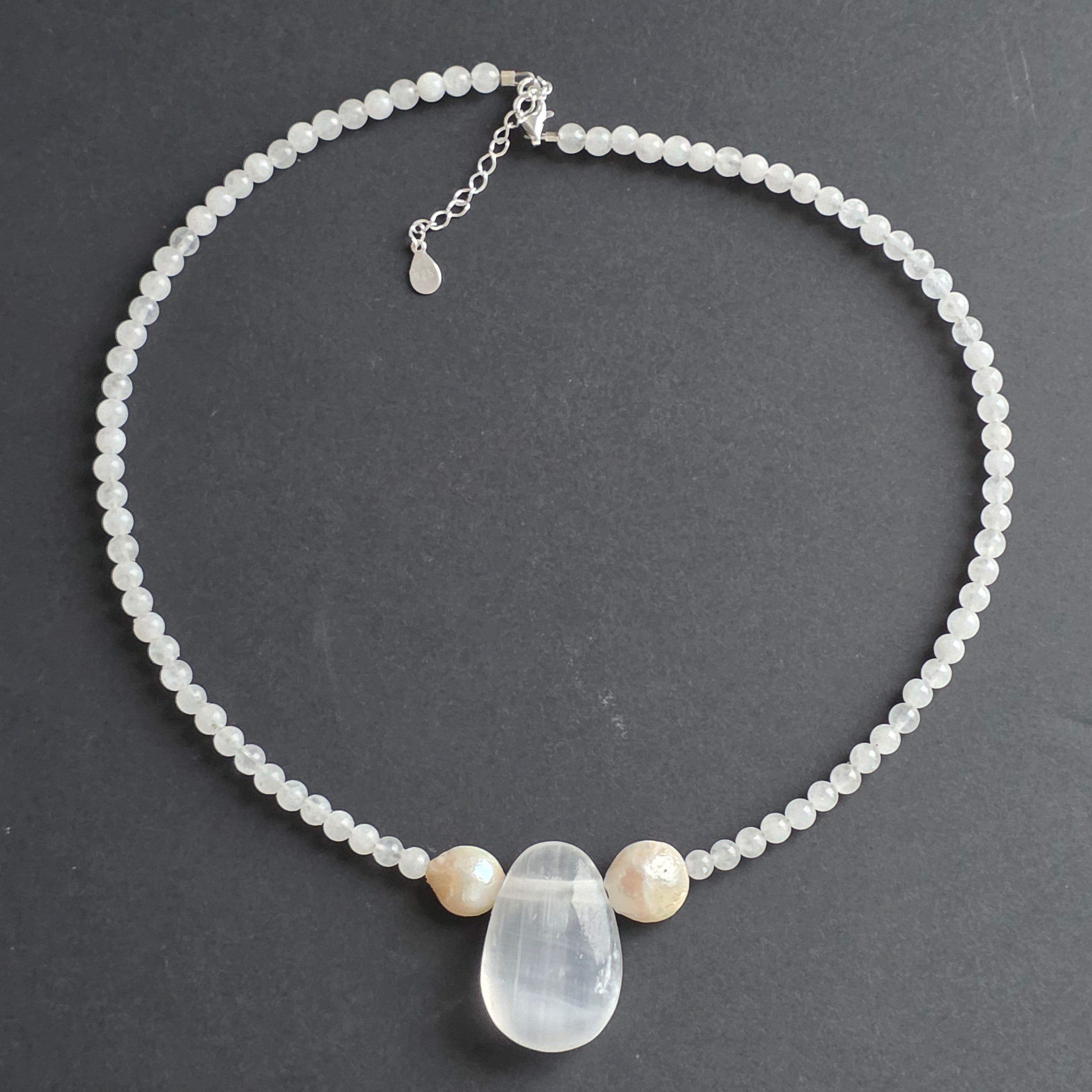 Descriere - Colier jad alb, perle și selenit Moonlight#29