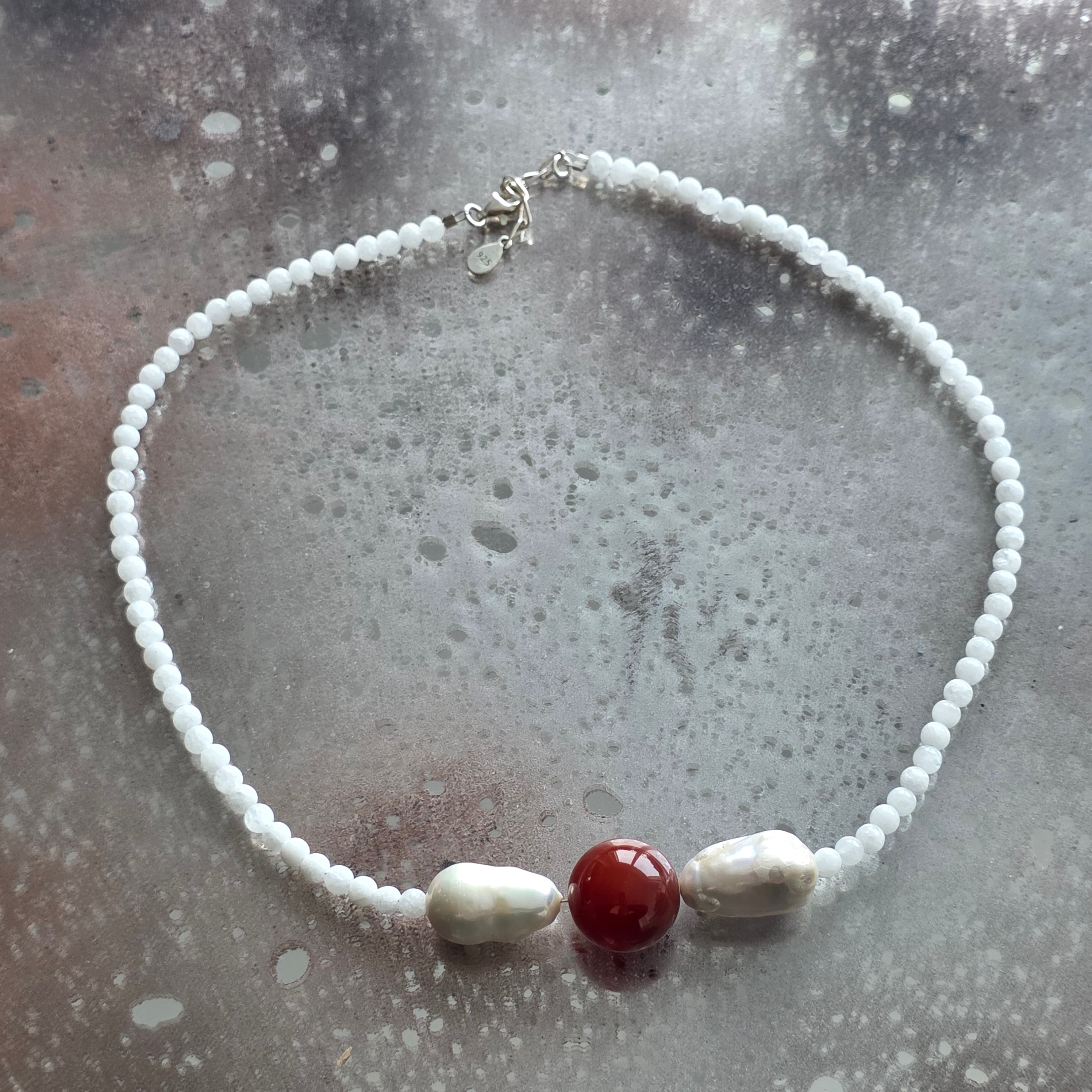 Colier jad alb, perle si carneol Rooted Glow#15