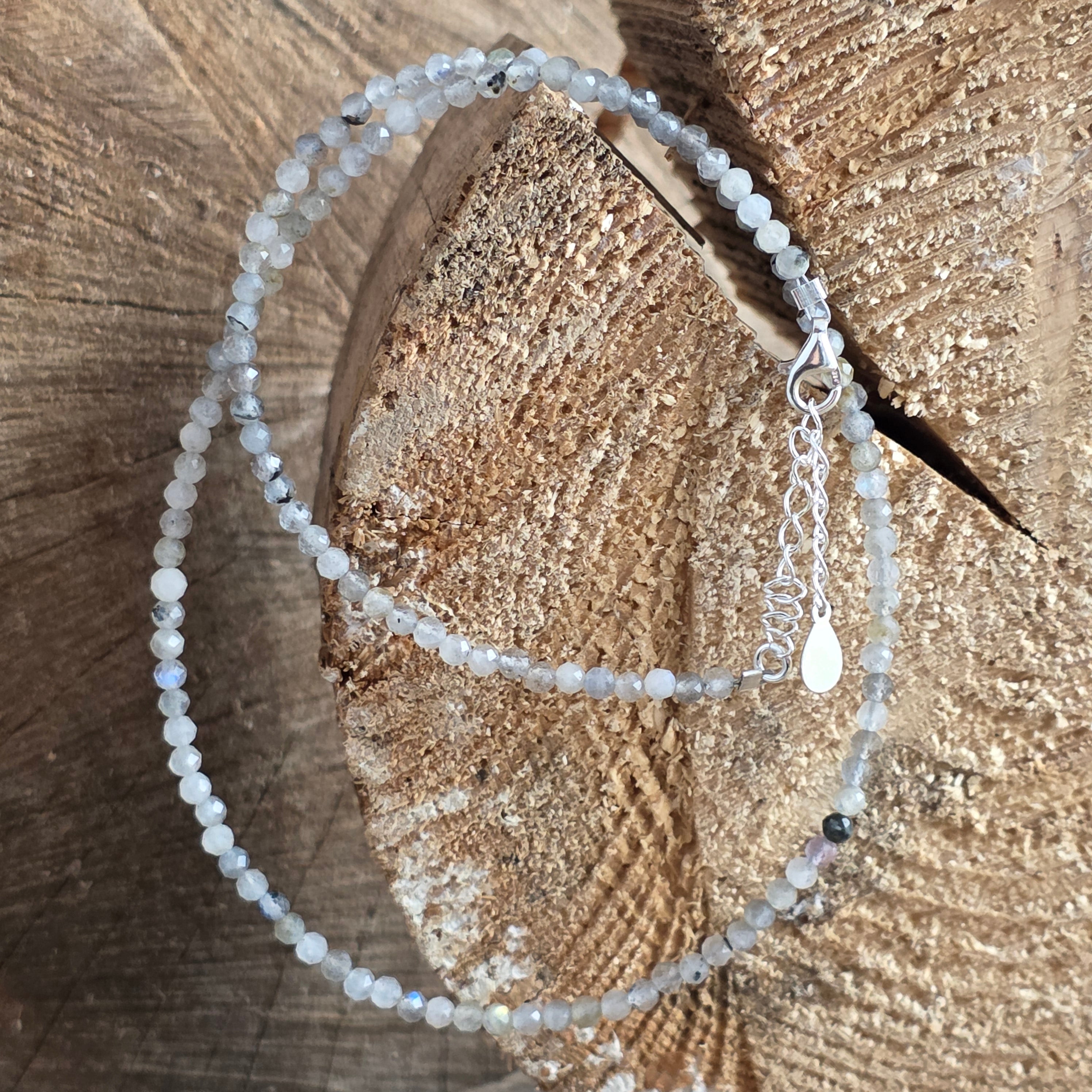 O bijuterie ce îmbină finețea și misterul – Colierul Labradorit AURA #131 este o explozie de lumină subtilă și eleganță discretă. Mărgelele fațetate de doar 3 mm reflectă lumina în multiple unghiuri, creând un joc hipnotic de reflexe albastre, aurii și verzi, asemenea unei aurore boreale surprinse în piatră.