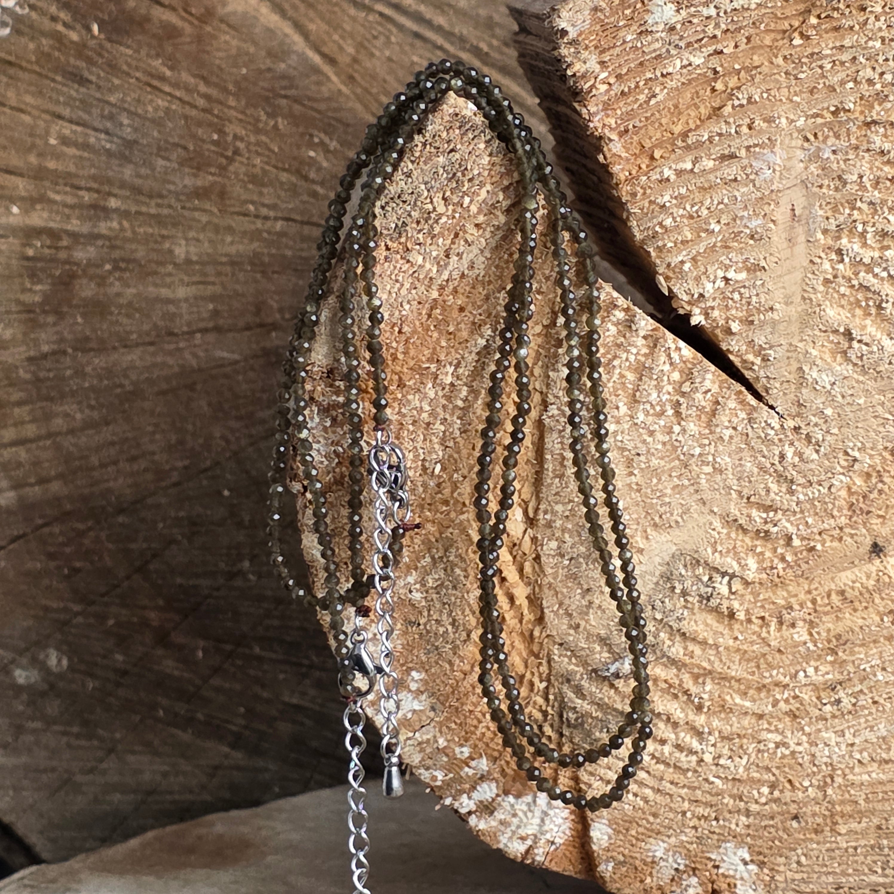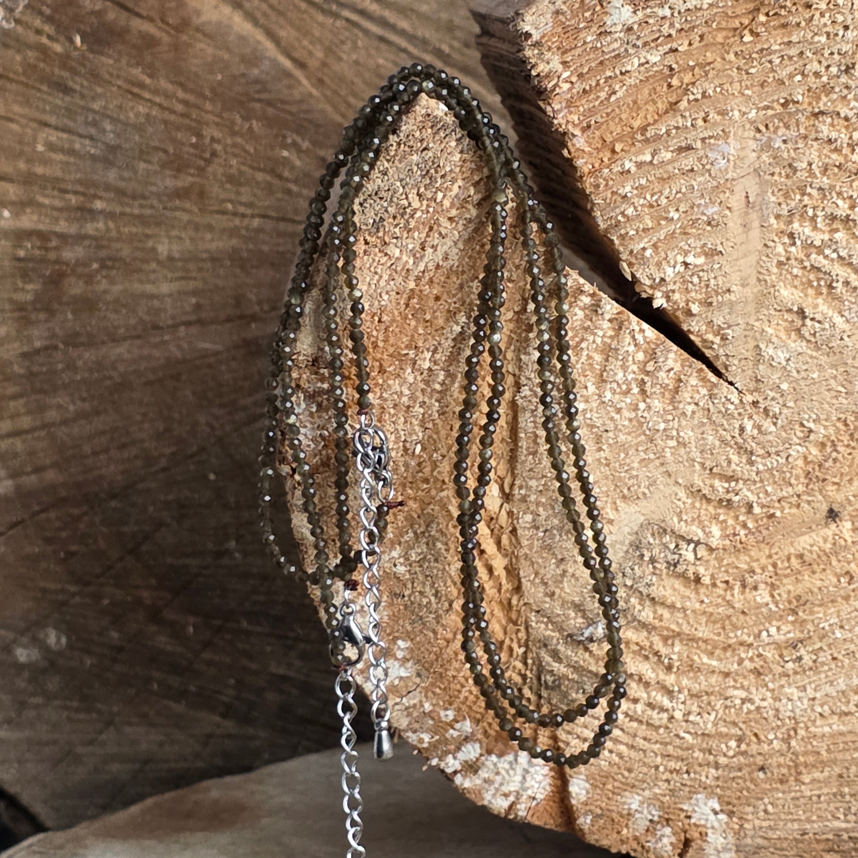 Colier obsidian argintiu sfere 2 mm, dimensiune: 38 + 5 cm (lant prelungire)