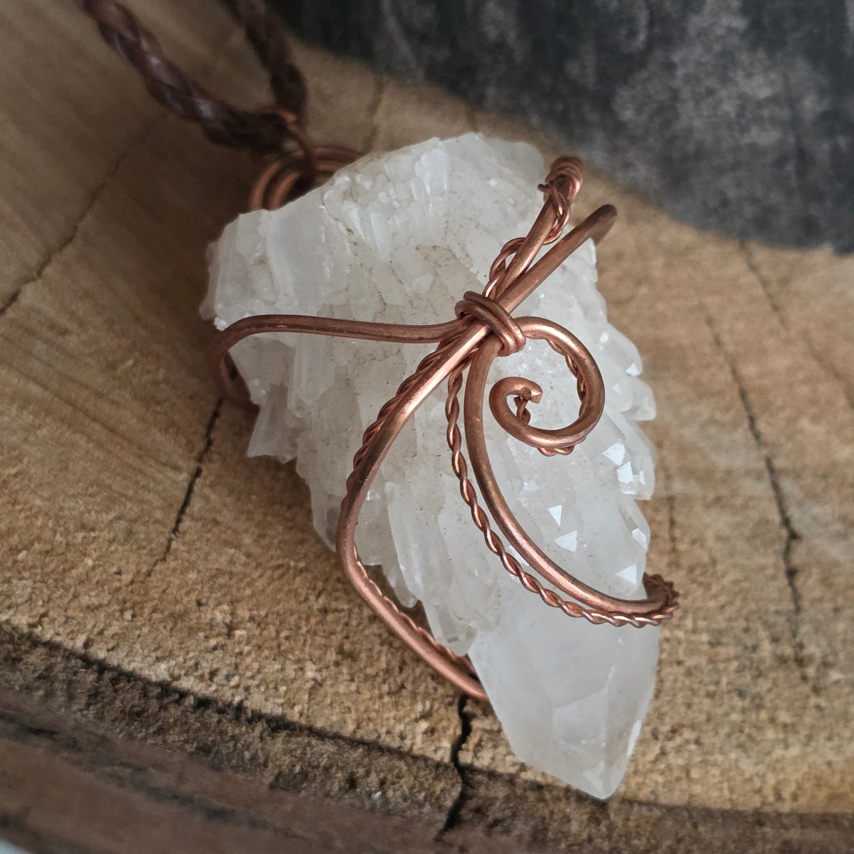 Descriere - Colier pandantiv cluster cuart incolor in cupru/artistic wire m3