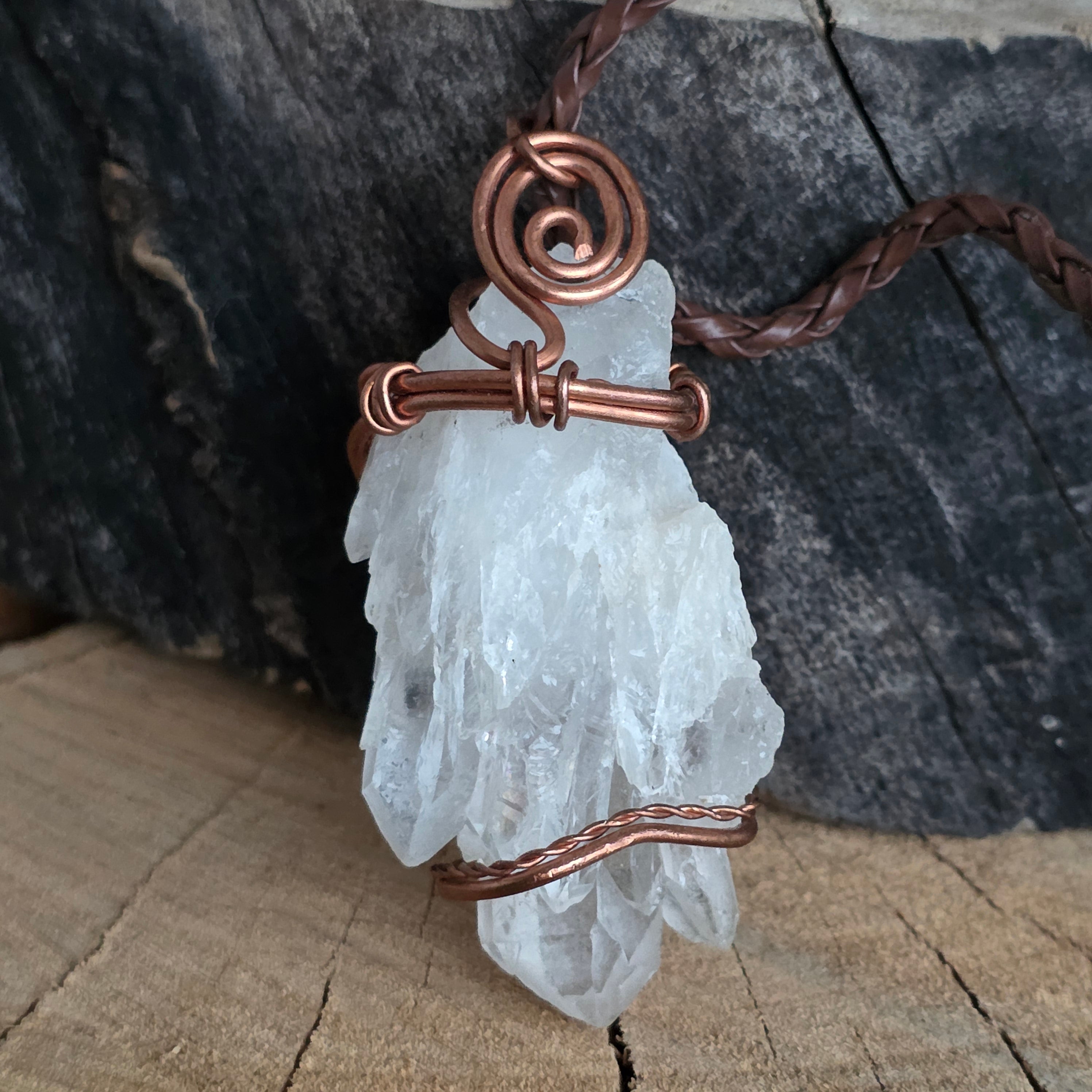Descriere - Colier pandantiv cluster cuart incolor in cupru/artistic wire m4