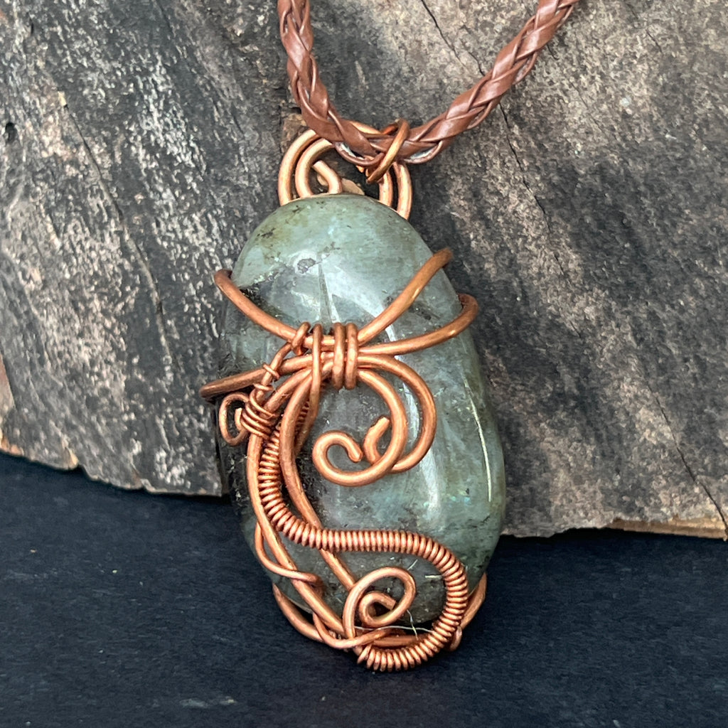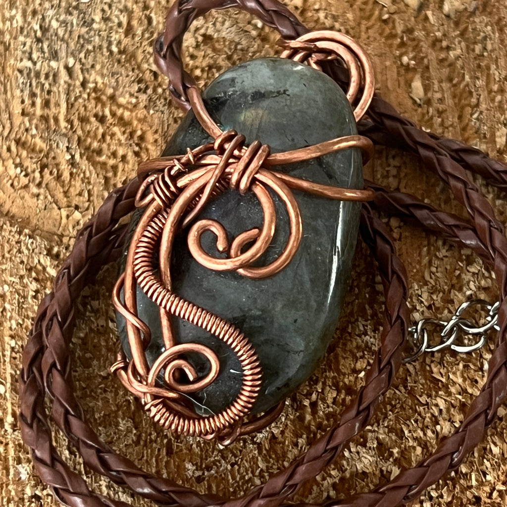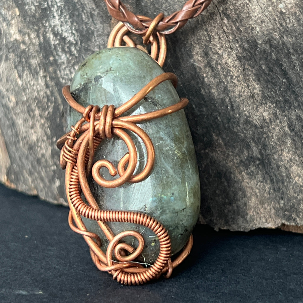 Colier pandantiv labradorit in cupru/artistic wire model 2