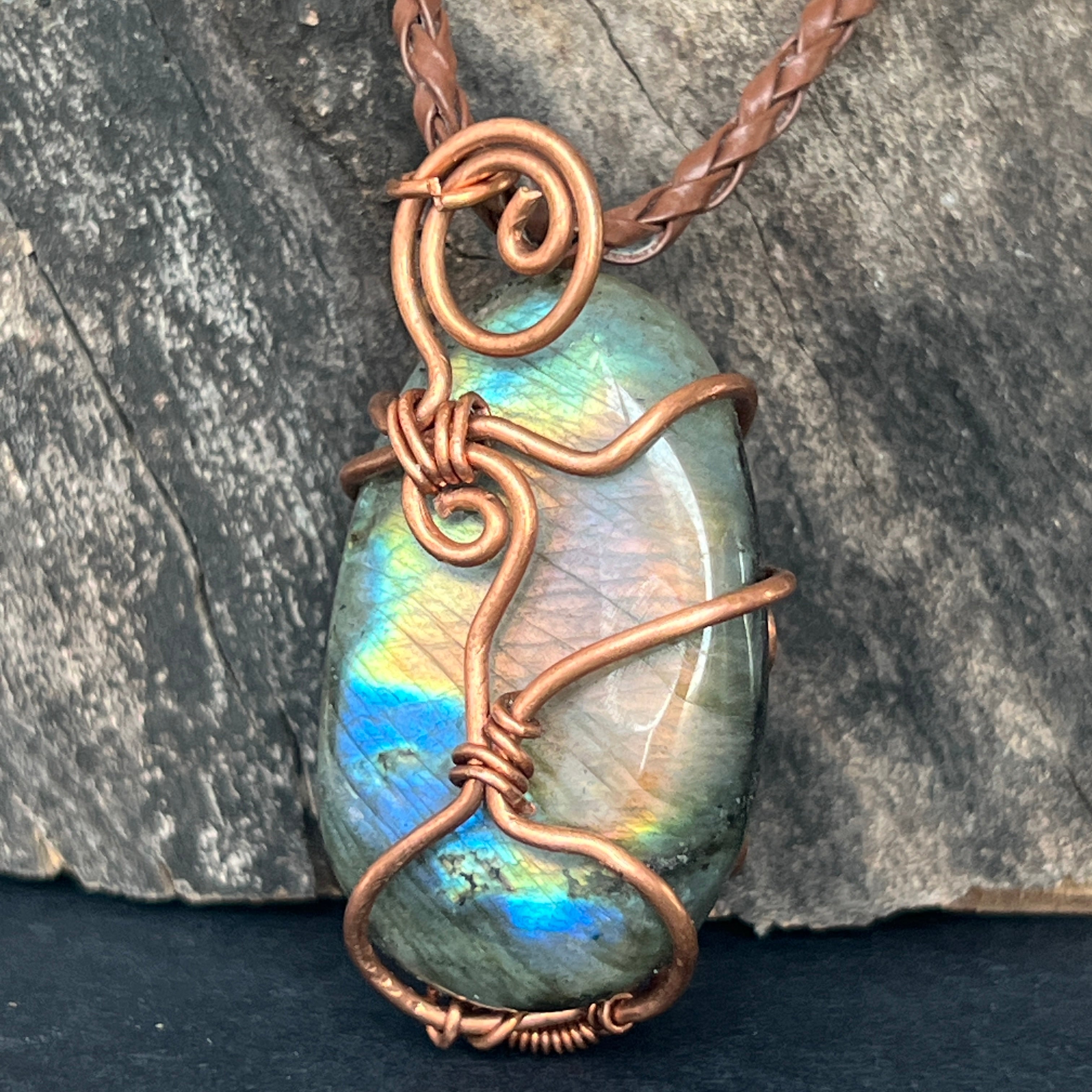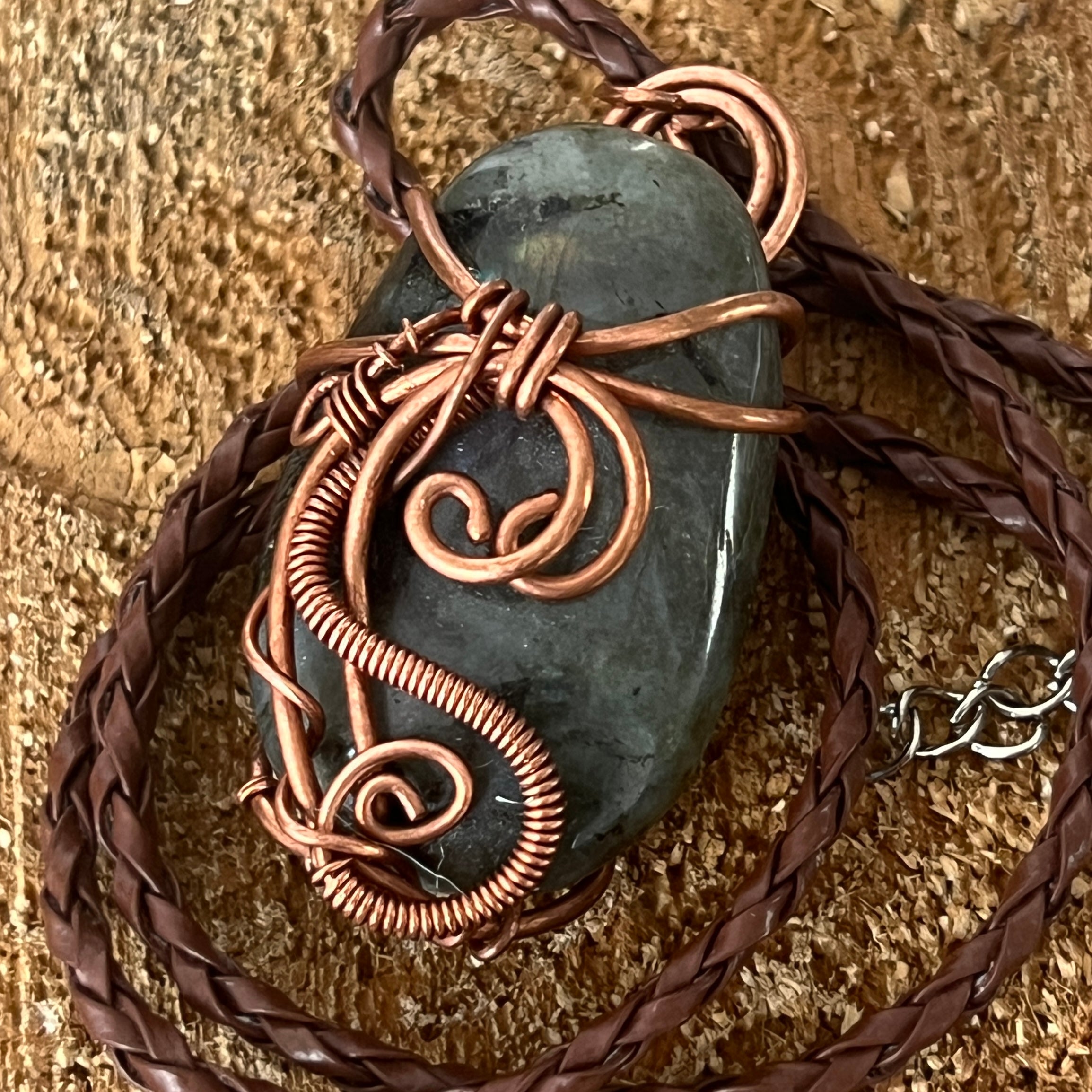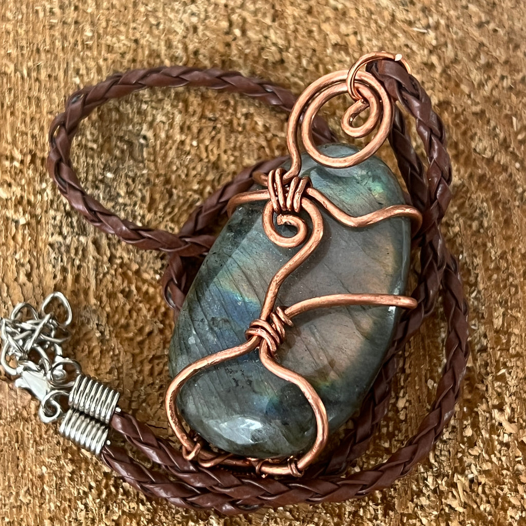 Descriere - Colier pandantiv labradorit in cupru/artistic wire model 2