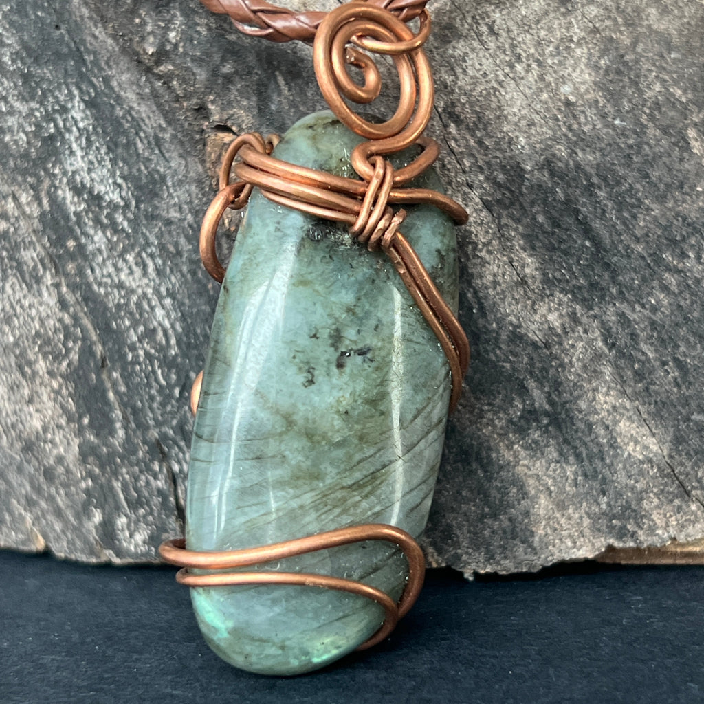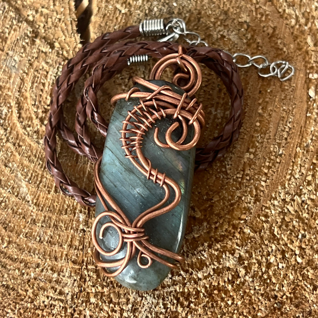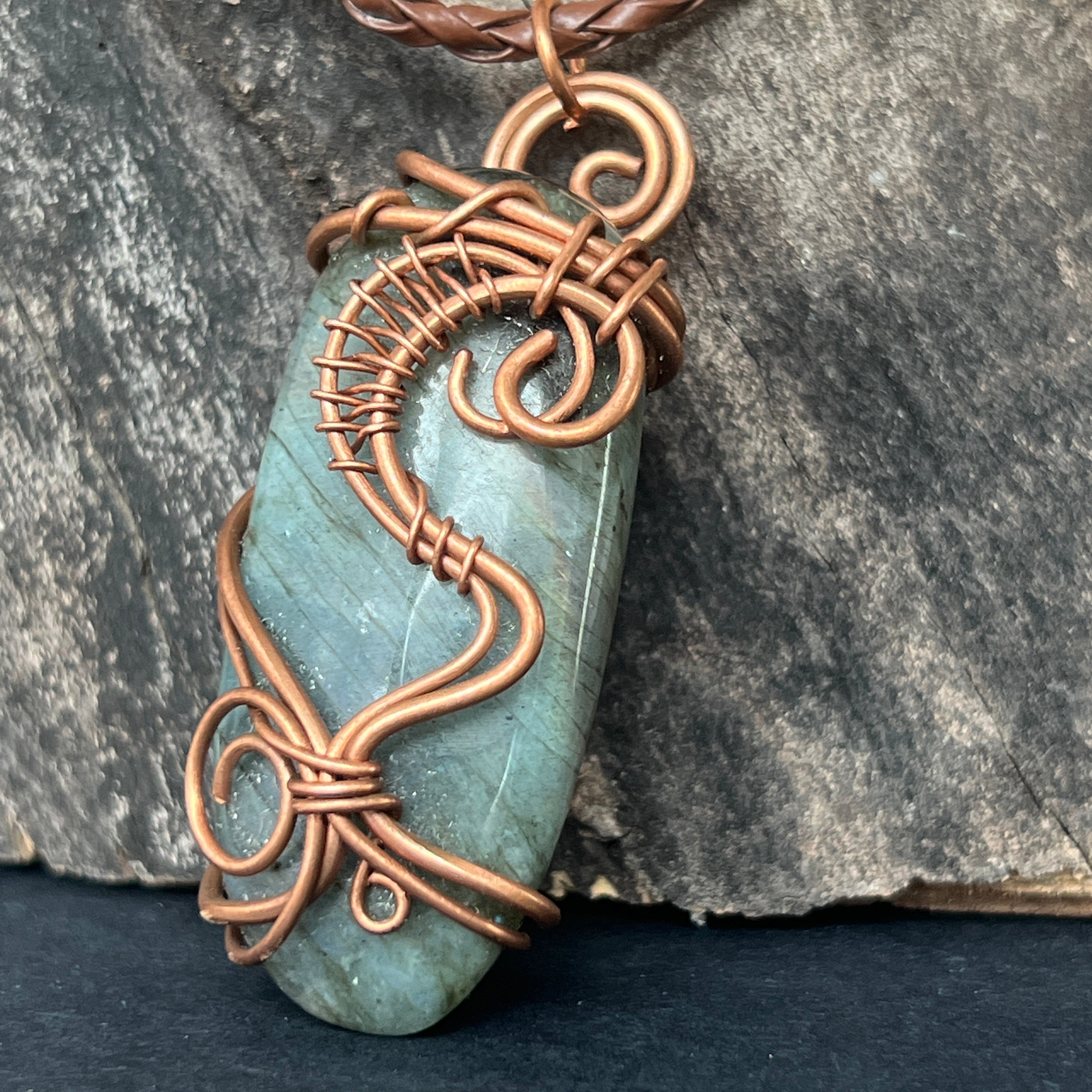 Descriere - Colier pandantiv labradorit in cupru/artistic wire model 3