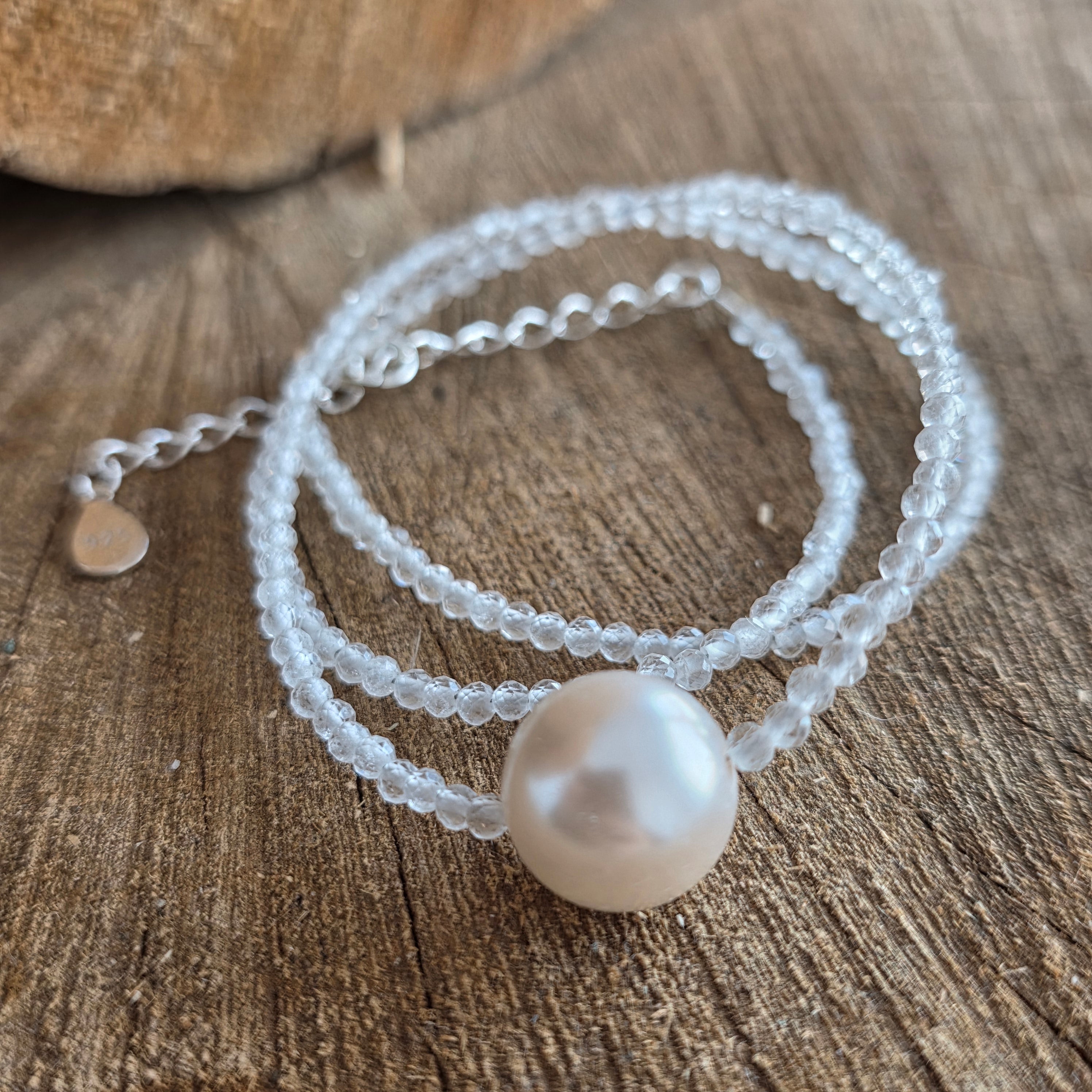 Materiale: piatră lunii naturală sfere fatetate 2.5 mm, argint 925, perla 1 cm