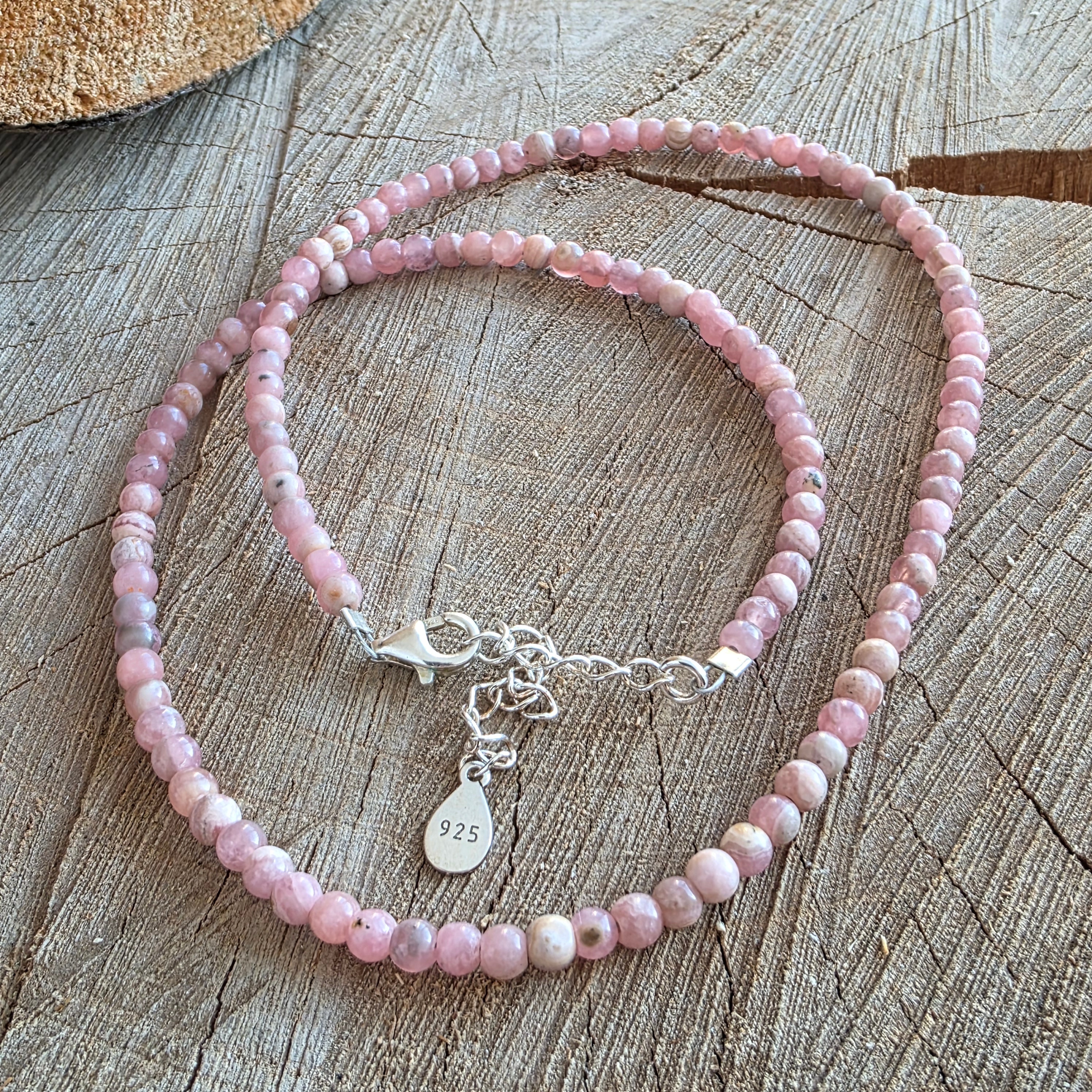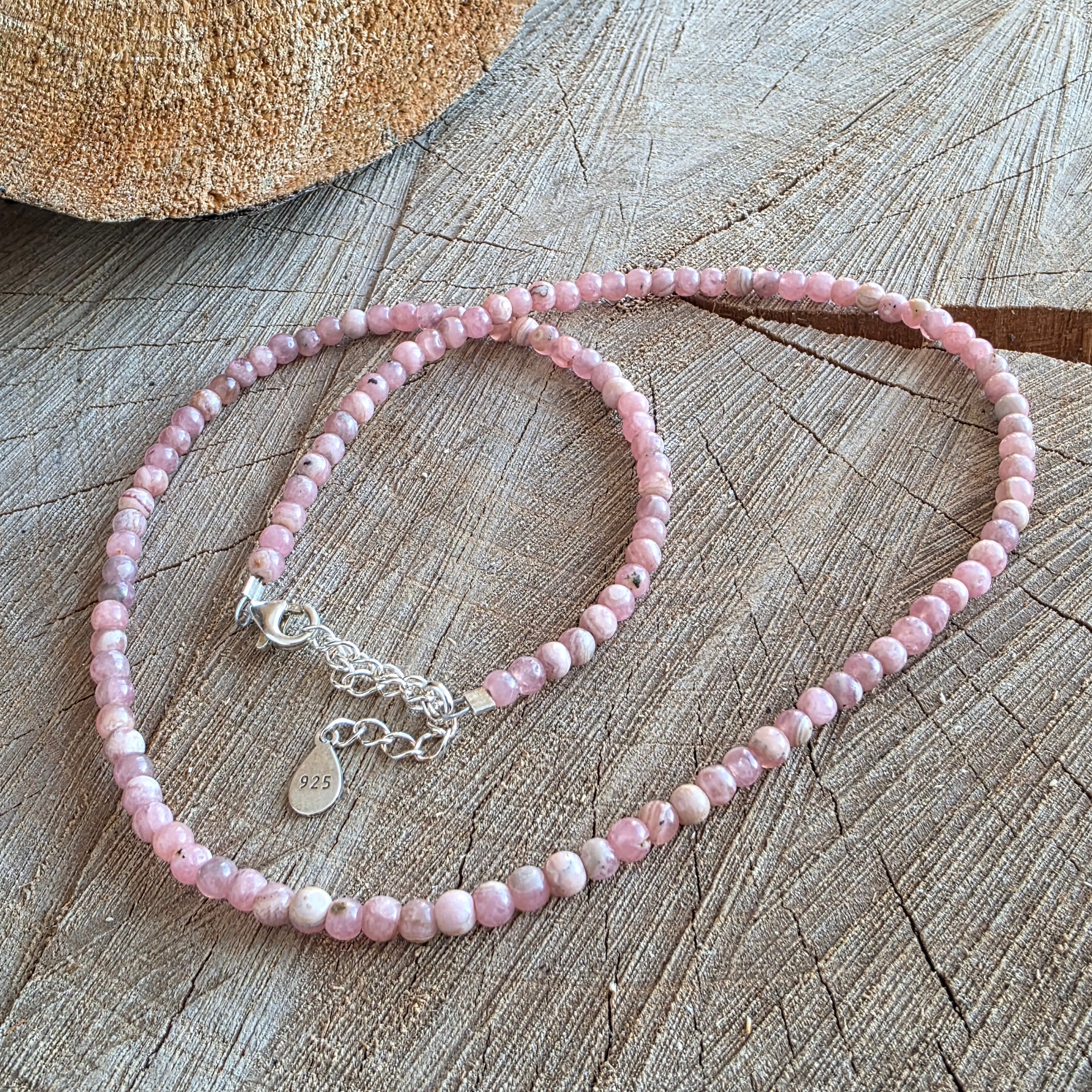 Materiale: rodocrozit natural (sfere de 4 mm), lanț și închidere din argint 925