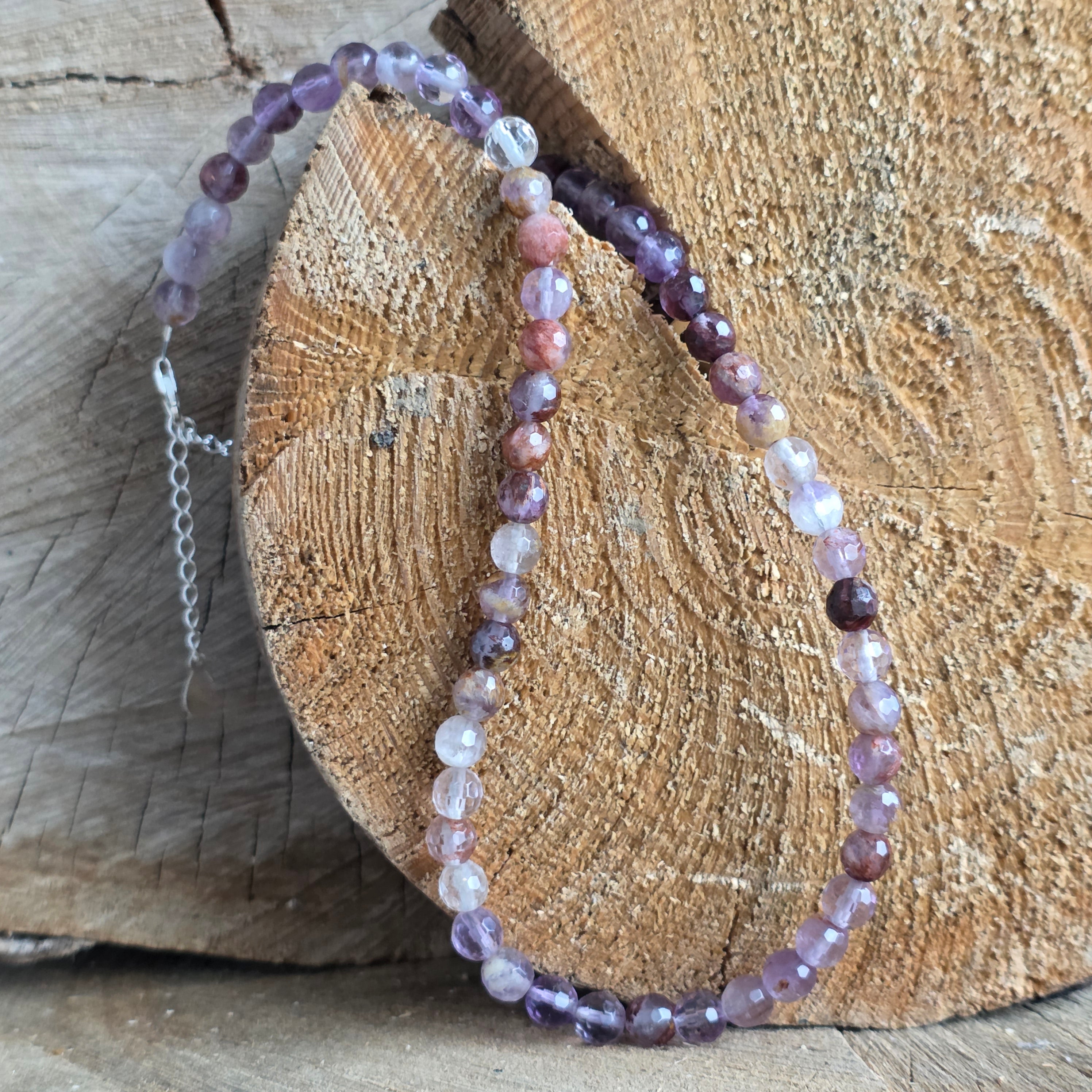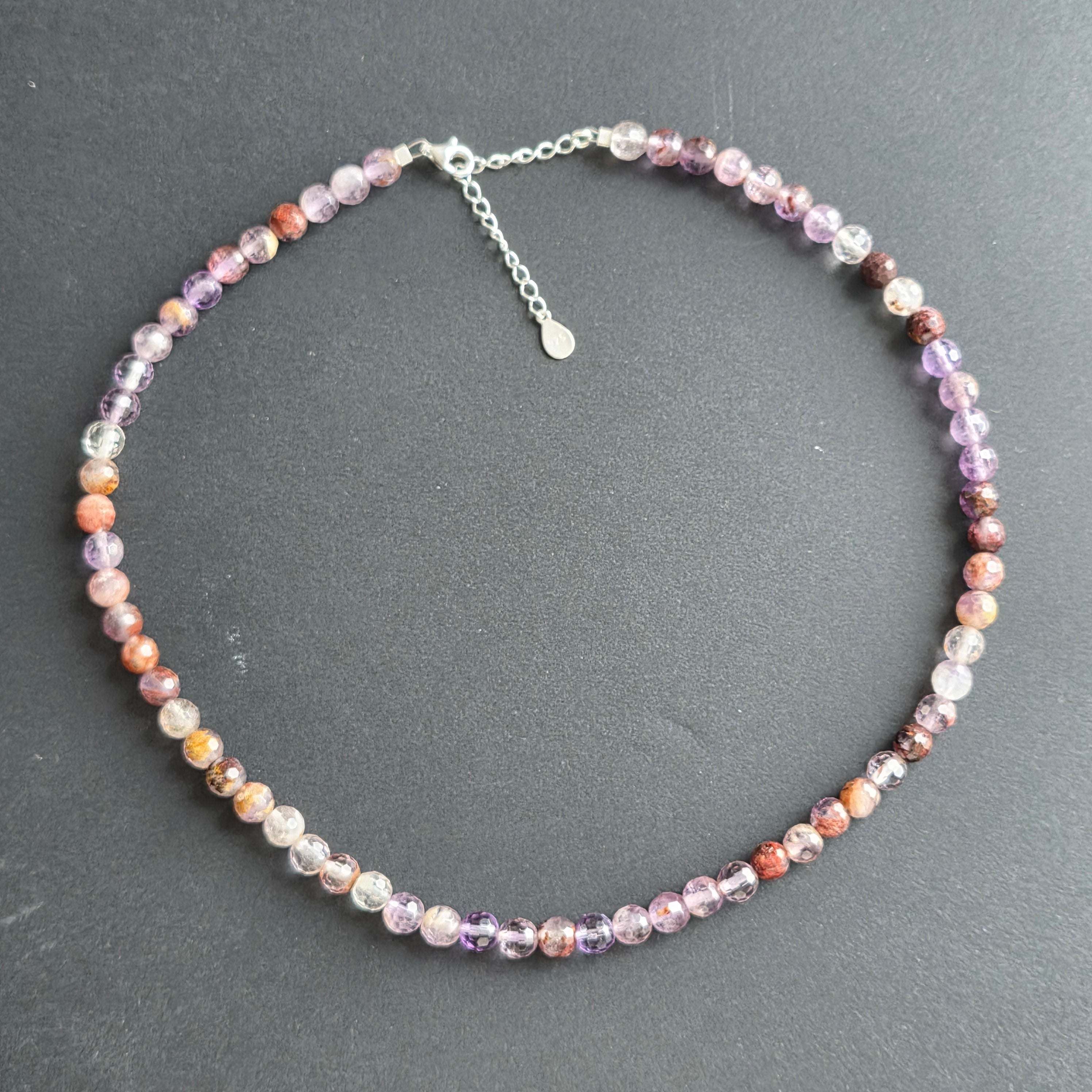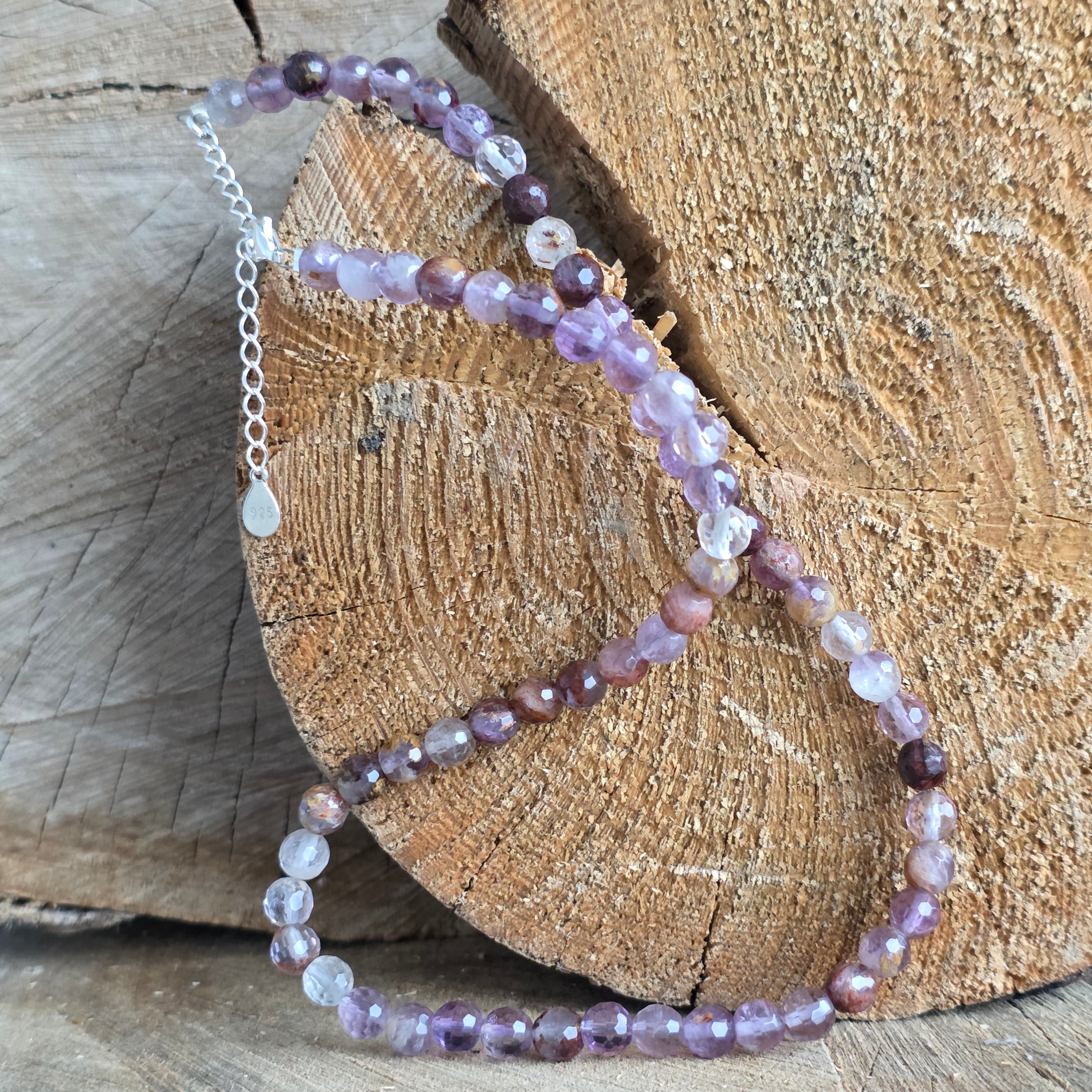 Materiale: Super Seven natural, sfere fatetate 6 mm, argint 925