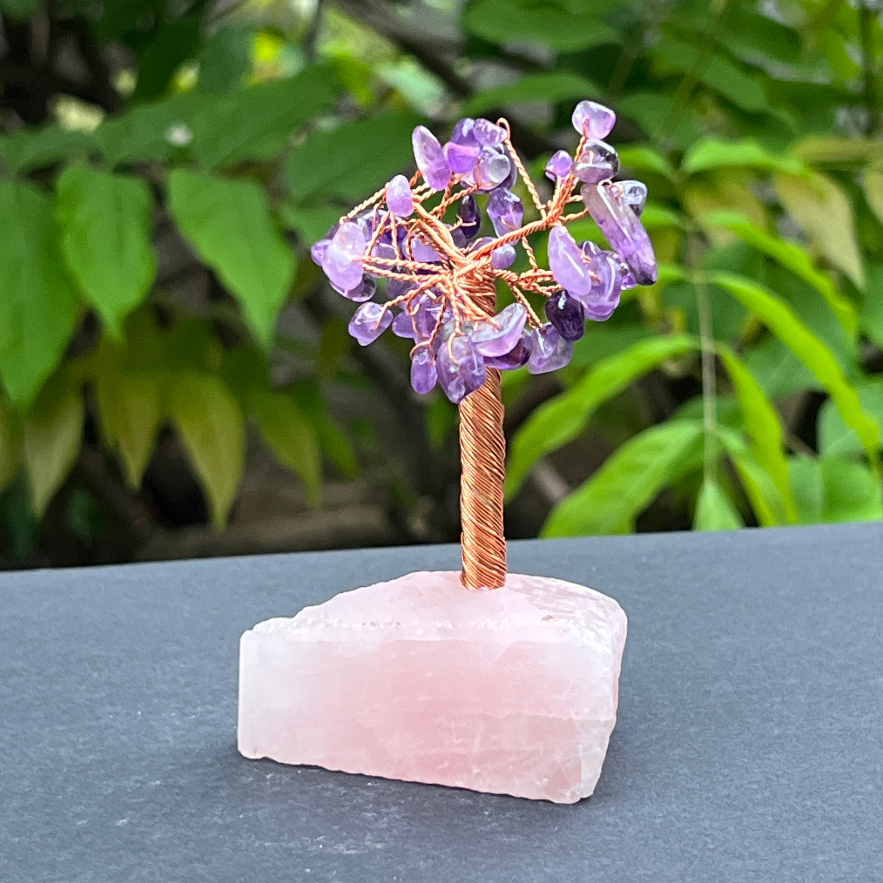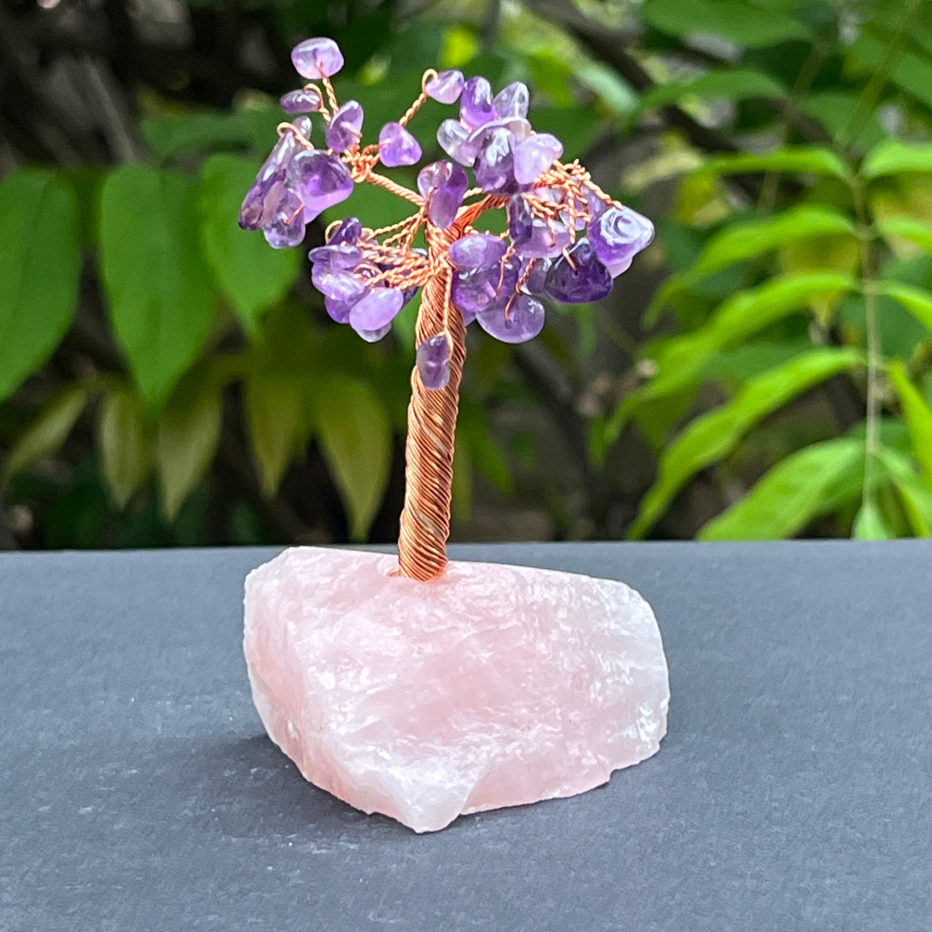 Copac feng shui cu ametist pe bază de cuarț roz – mărime S