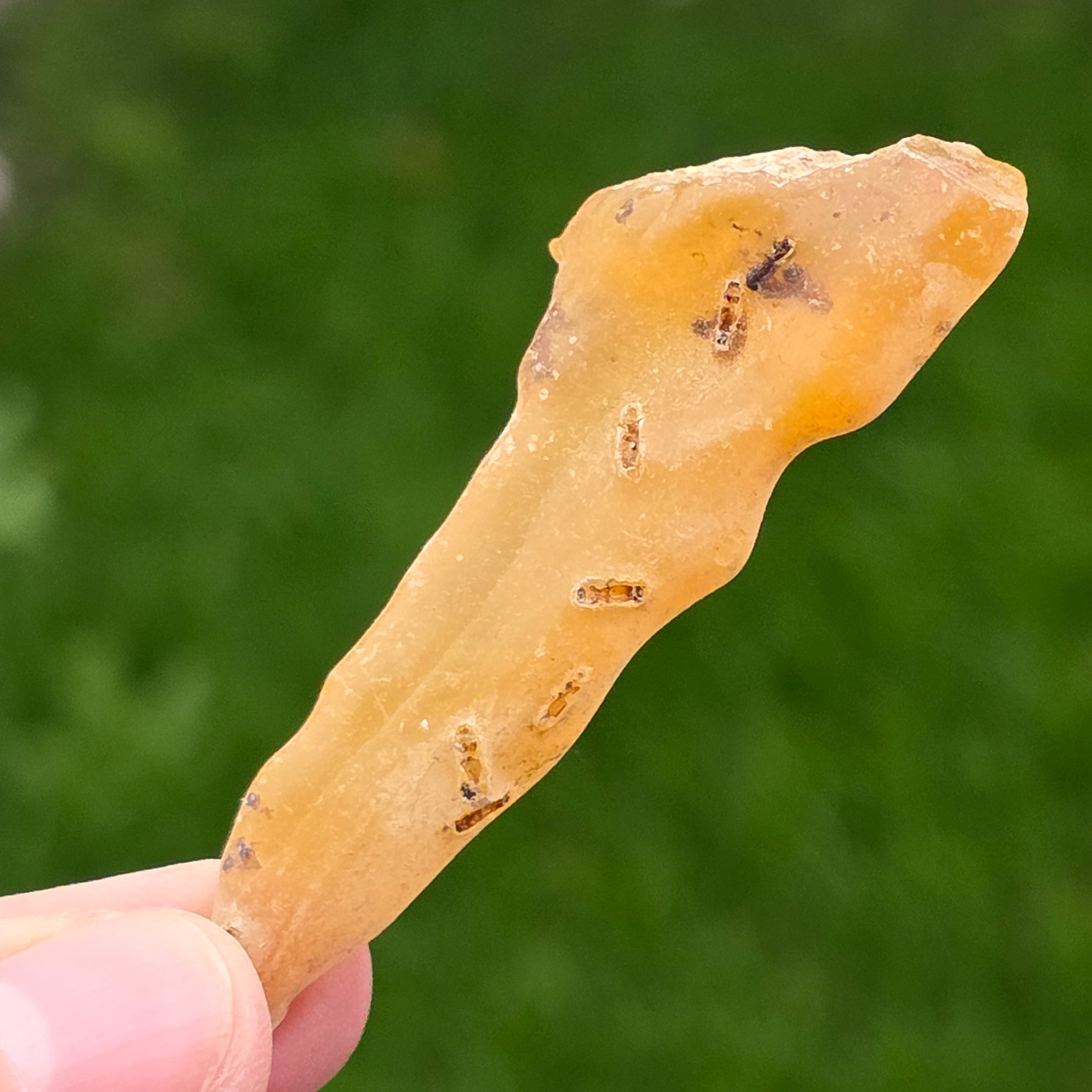 Copalul, adesea numit și rășină subfosilă, este forma timpurie a chihlimbarului – o rășină naturală care și-a păstrat lumina solară și transparența, înainte de a intra în adevărata fosilizare geologică. Provenit din arbori tropicali, acest material delicat poartă în el memoria câtorva secole sau milenii, captând fragmente din viața pădurii așa cum existau cândva. Este mai ușor, mai cald la atingere și mai luminos decât chihlimbarul matur, iar aspectul său suav îl face ideal pentru colecționari, creatori de bijuterii și iubitori de piese naturale cu poveste. În copal, timpul nu este încă piatră – este încă lumină, încă mișcare, încă promisiune.
