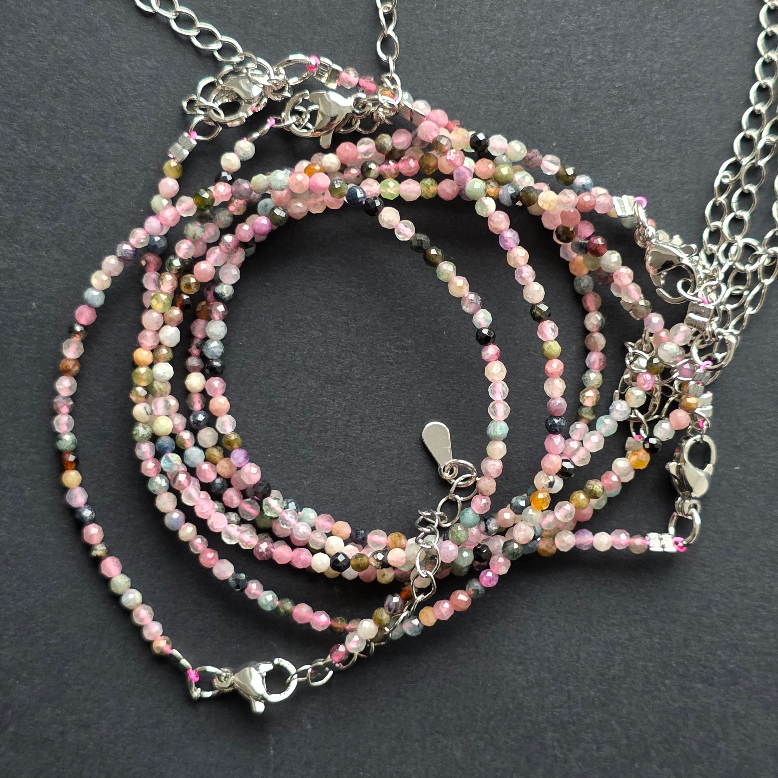 Descriere - Bratara trumalina neagra & roz 2 mm reglabila