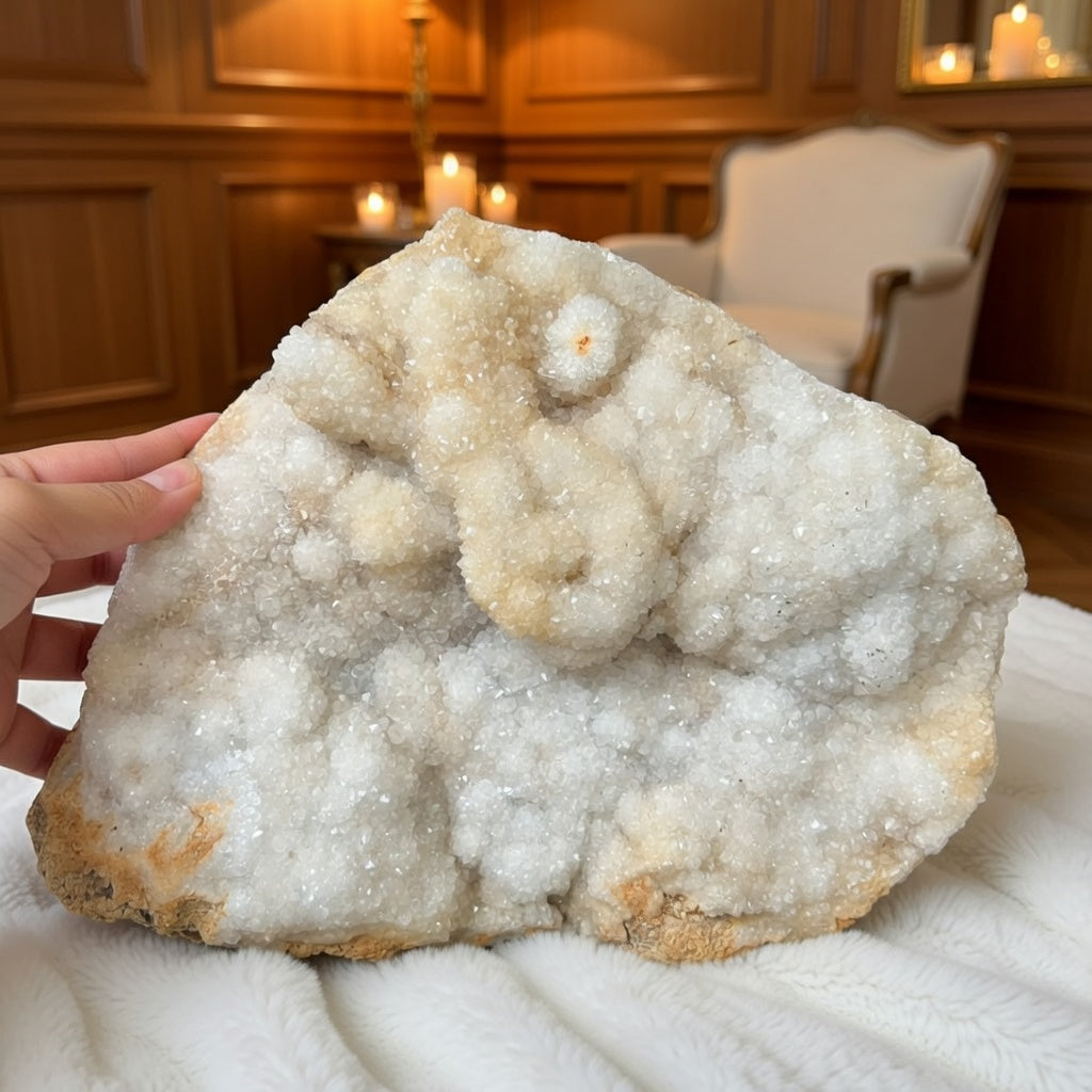 Recenzii - Cuarț botrioidal cu suprafață druzy – sculptură naturală în alb perlat -model 2