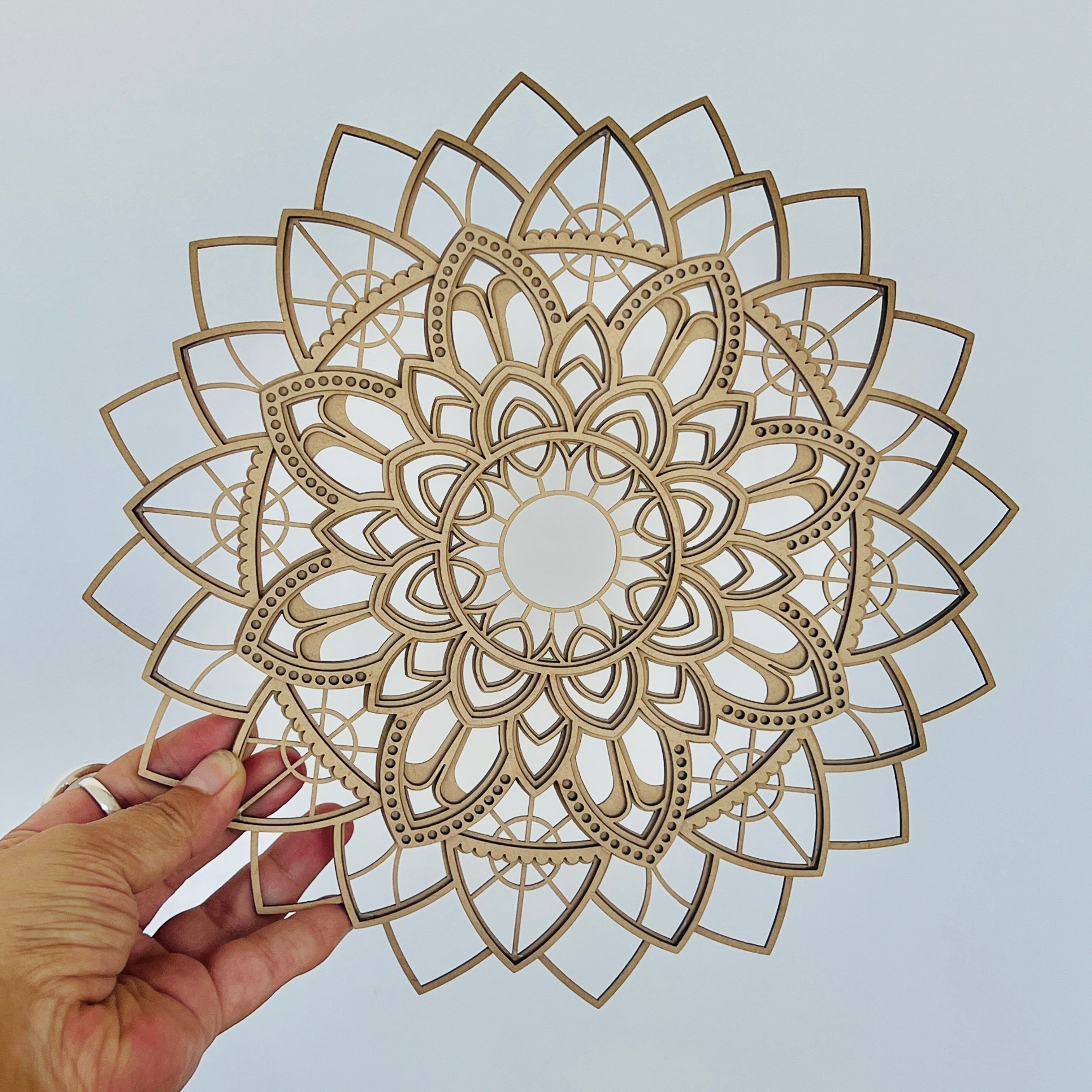 Această mandală de perete realizată prin tăiere laser în MDF aduce în spațiul tău un echilibru perfect între estetică și simbolism sacru. Prin suprapunerea mai multor straturi, decorul capătă un efect tridimensional spectaculos, transformând orice perete într-un punct de atracție vizuală.