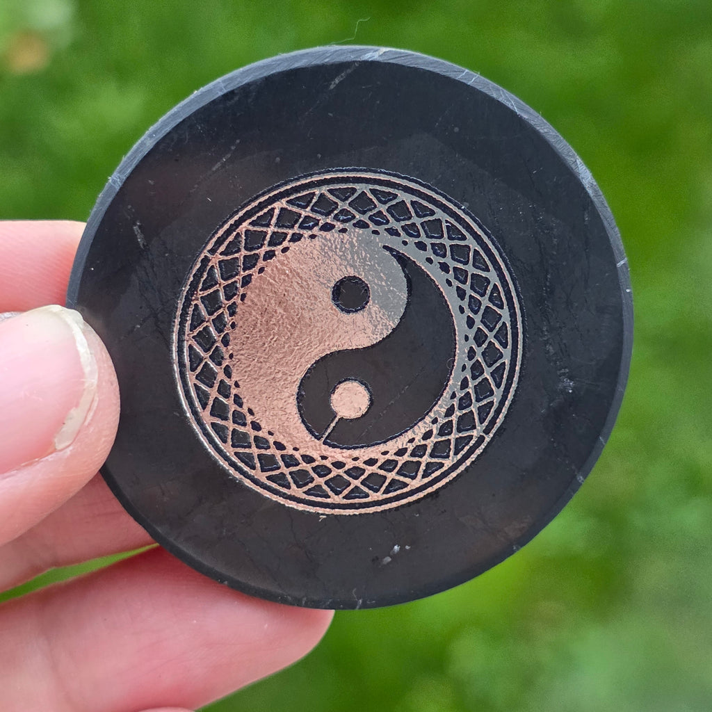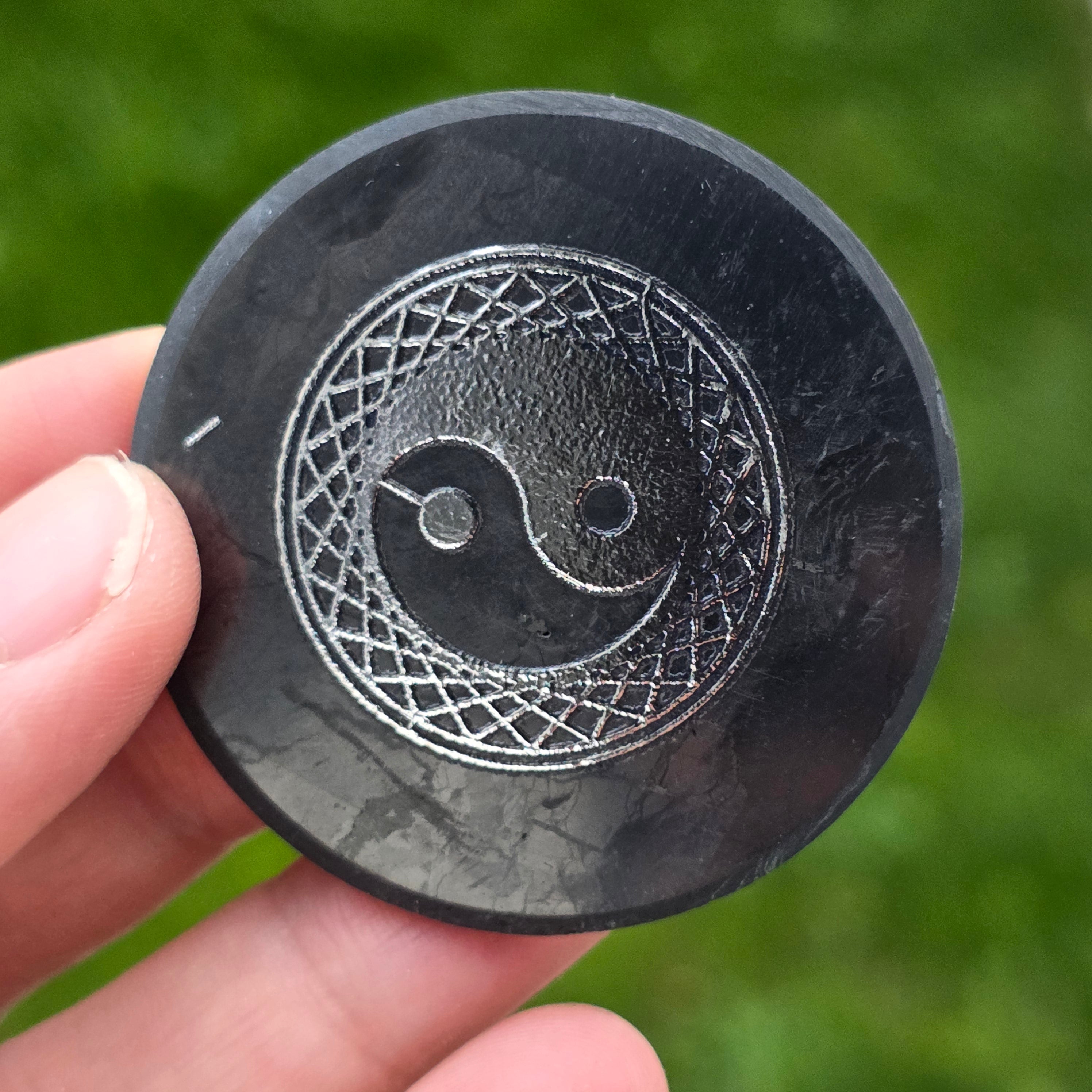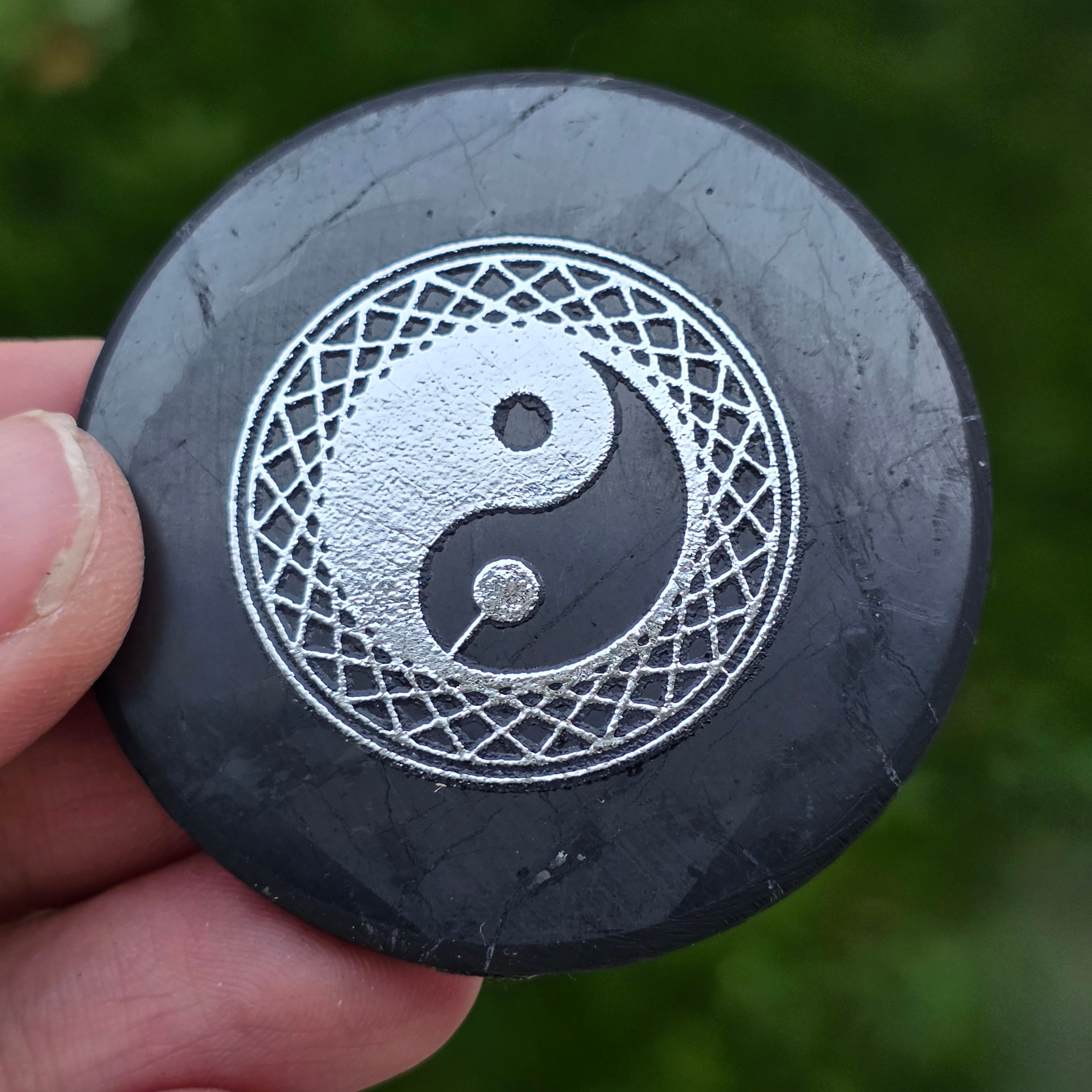 Descriere - Disc din Shungit adeziv Yin Yang Silver