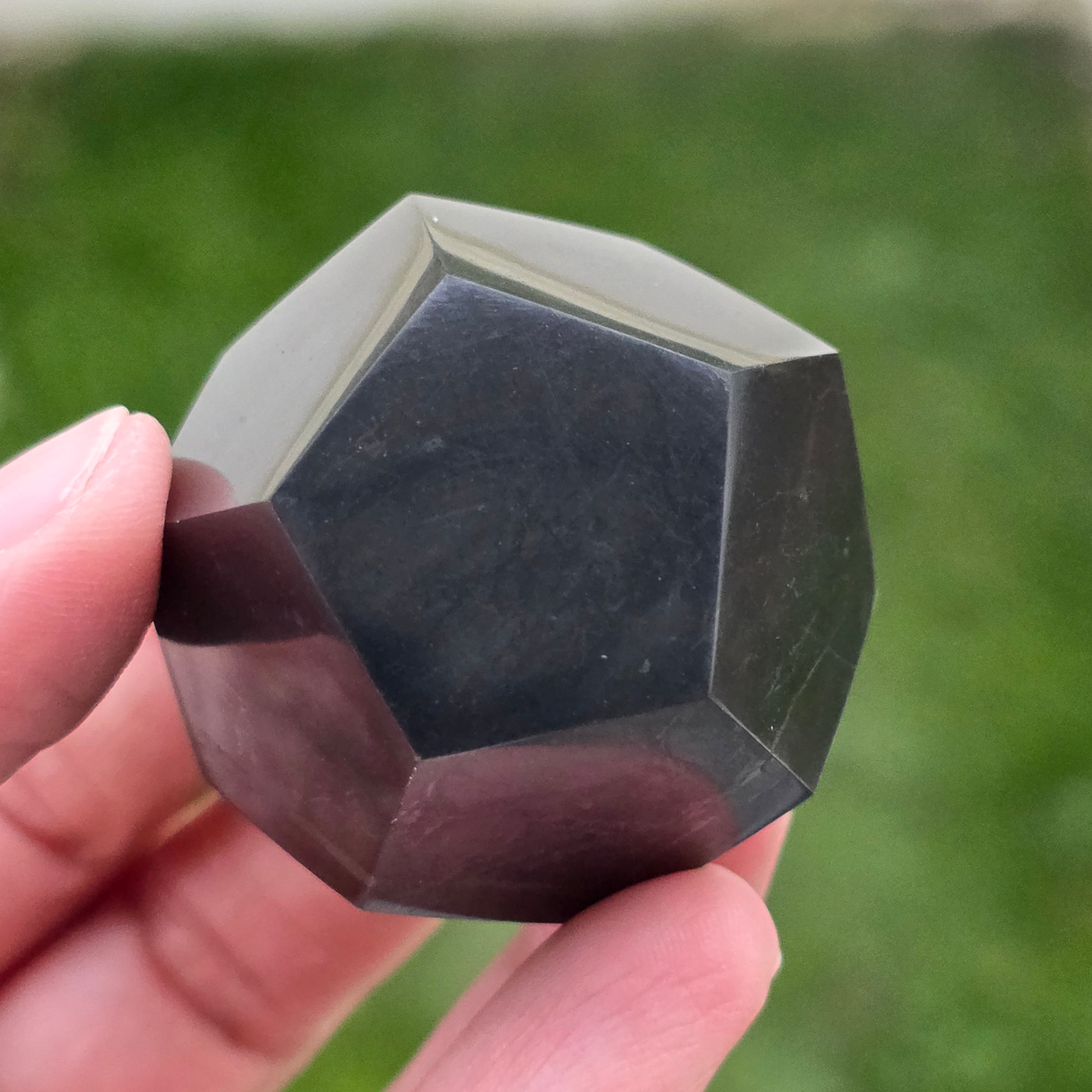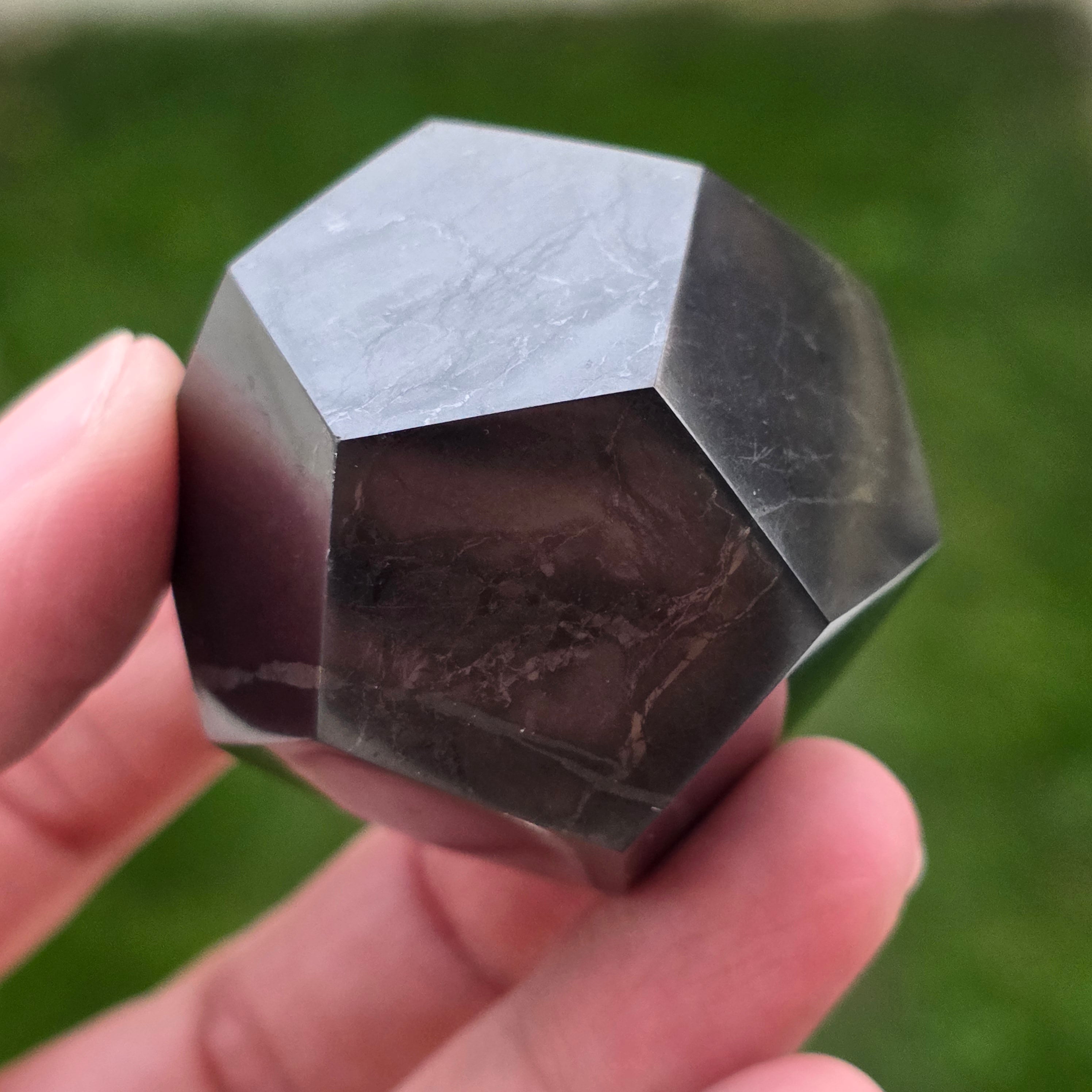 Shungitul, prin natura sa protectoare și purificatoare, completează această formă sacră, rezultând un obiect cu rol de armonizare profundă a spațiului. Dodecaedrul este adesea ales de cei care lucrează cu meditația, dezvoltarea personală și crearea unui cadru energetic stabil și coerent.