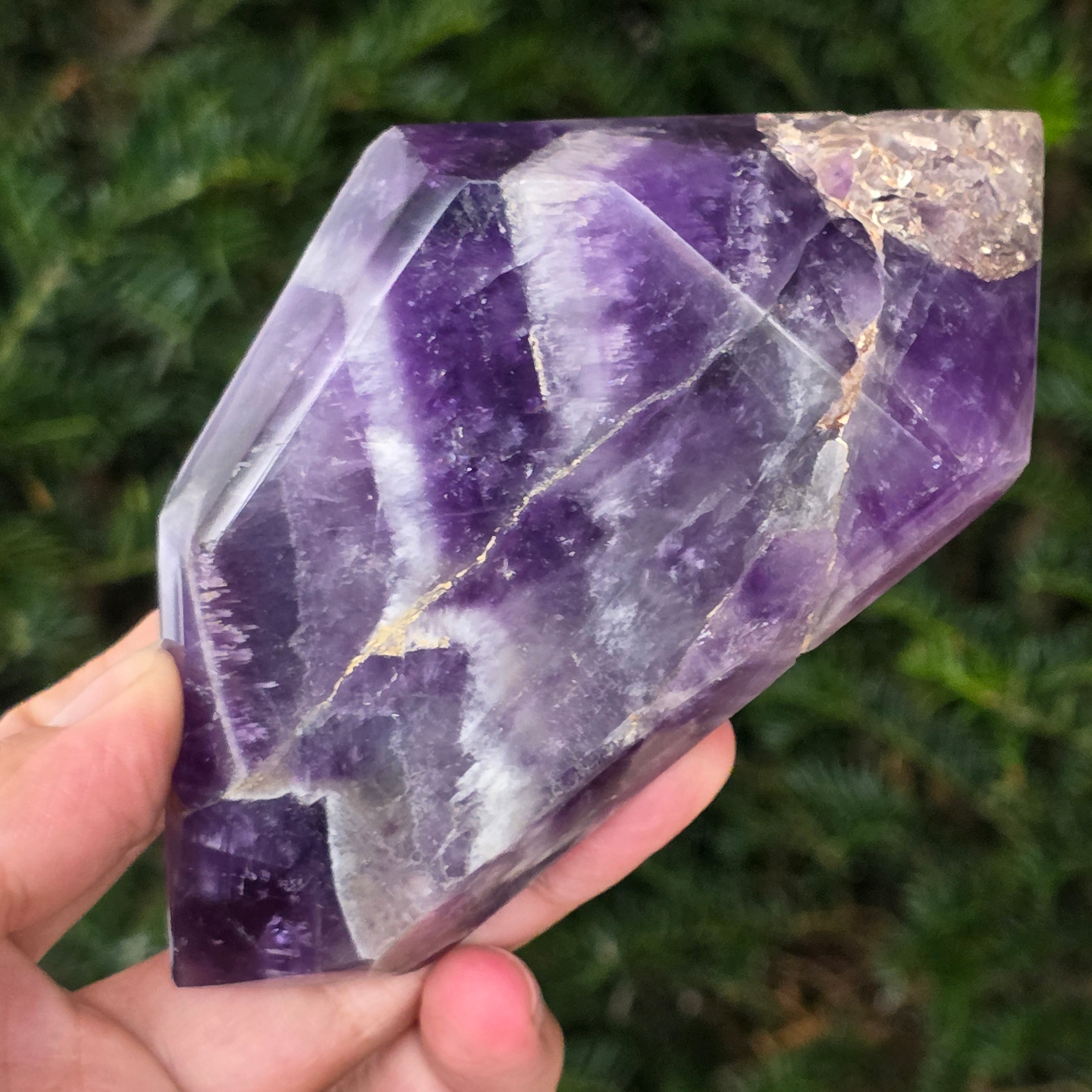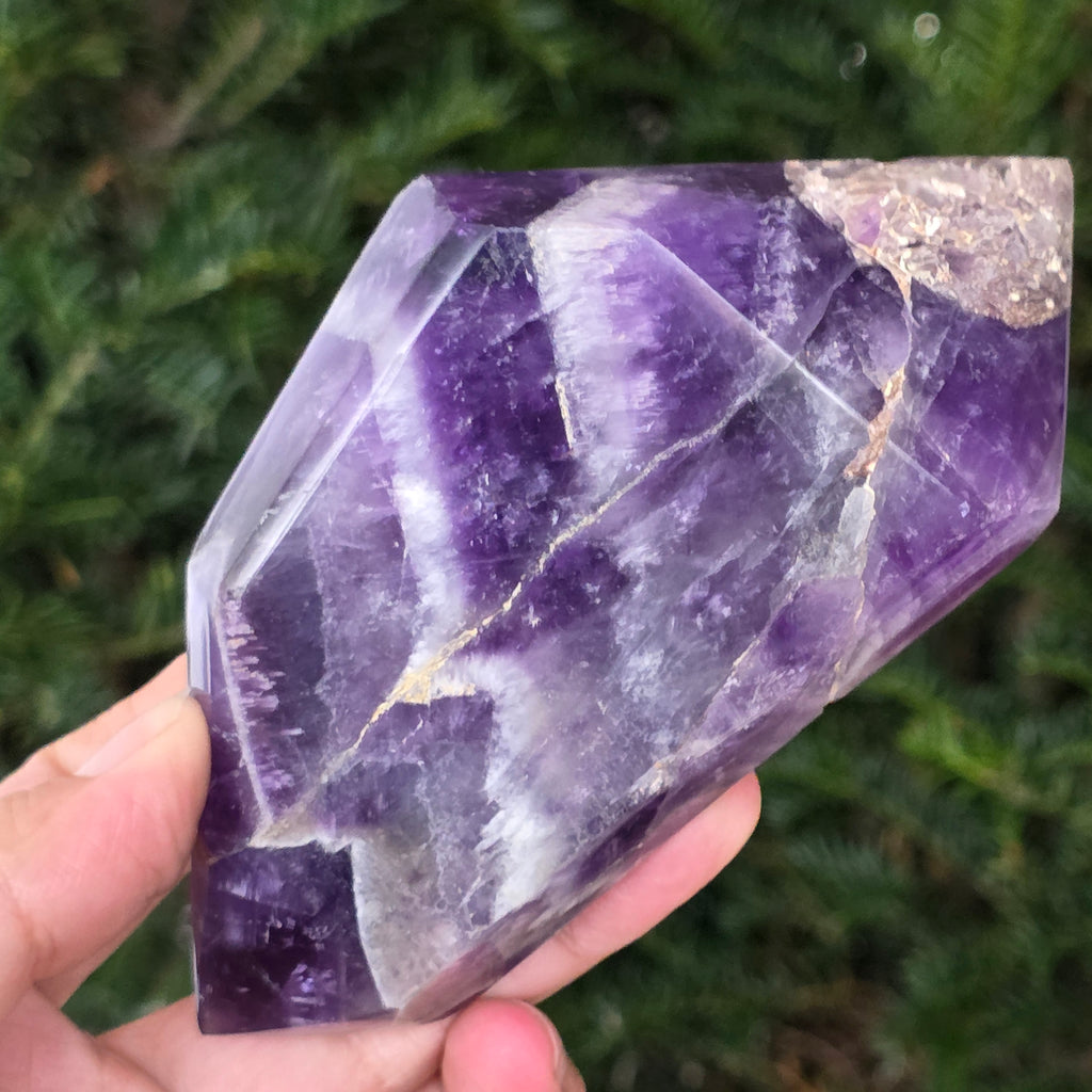Alege un cristal dublu vârf de ametist chevron și lasă-l să devină un aliat al echilibrului, al purificării și al conectării cu înțelepciunea interioară.
