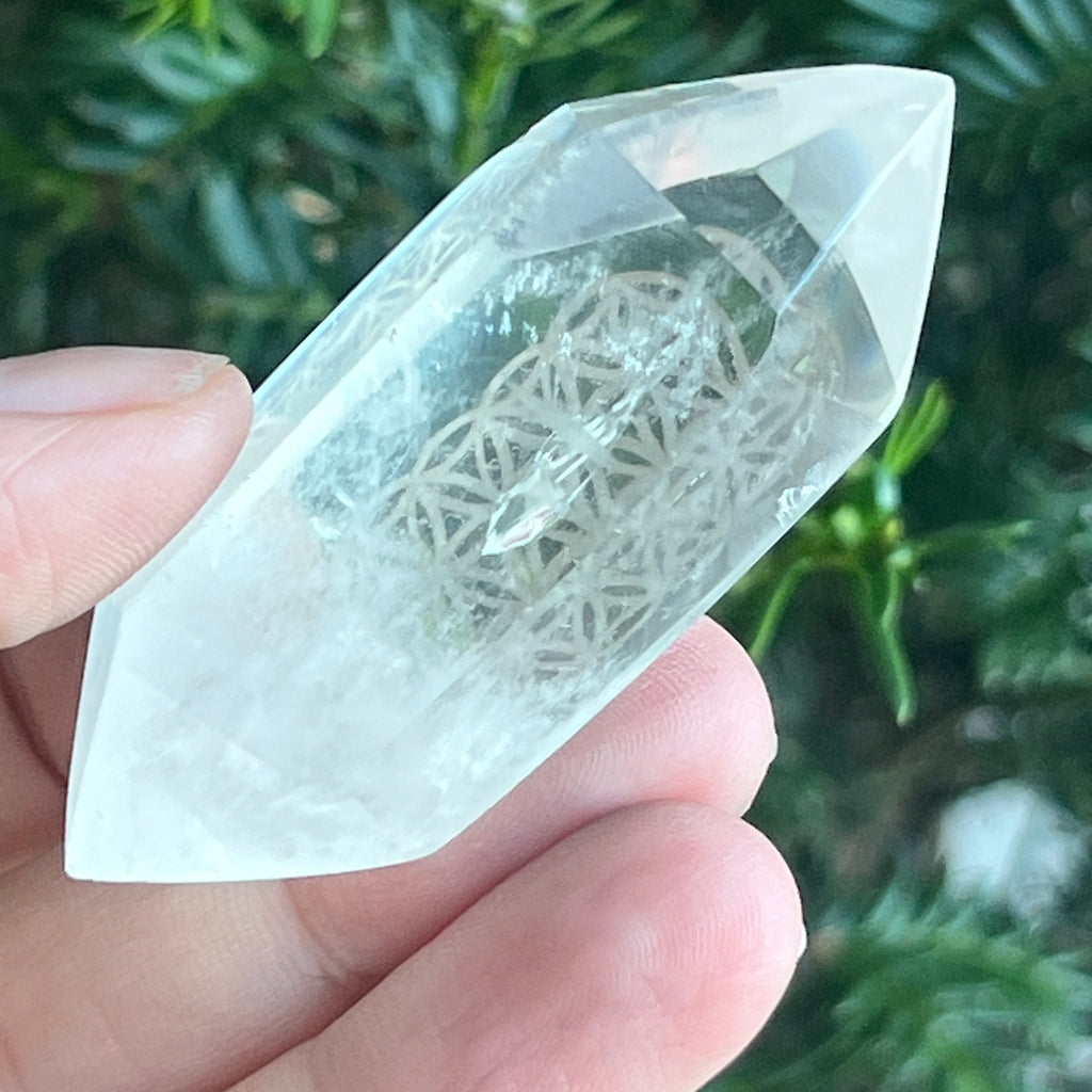 Descriere - Dublu varf cristal de stanca/cuart incolor | Flower of Life