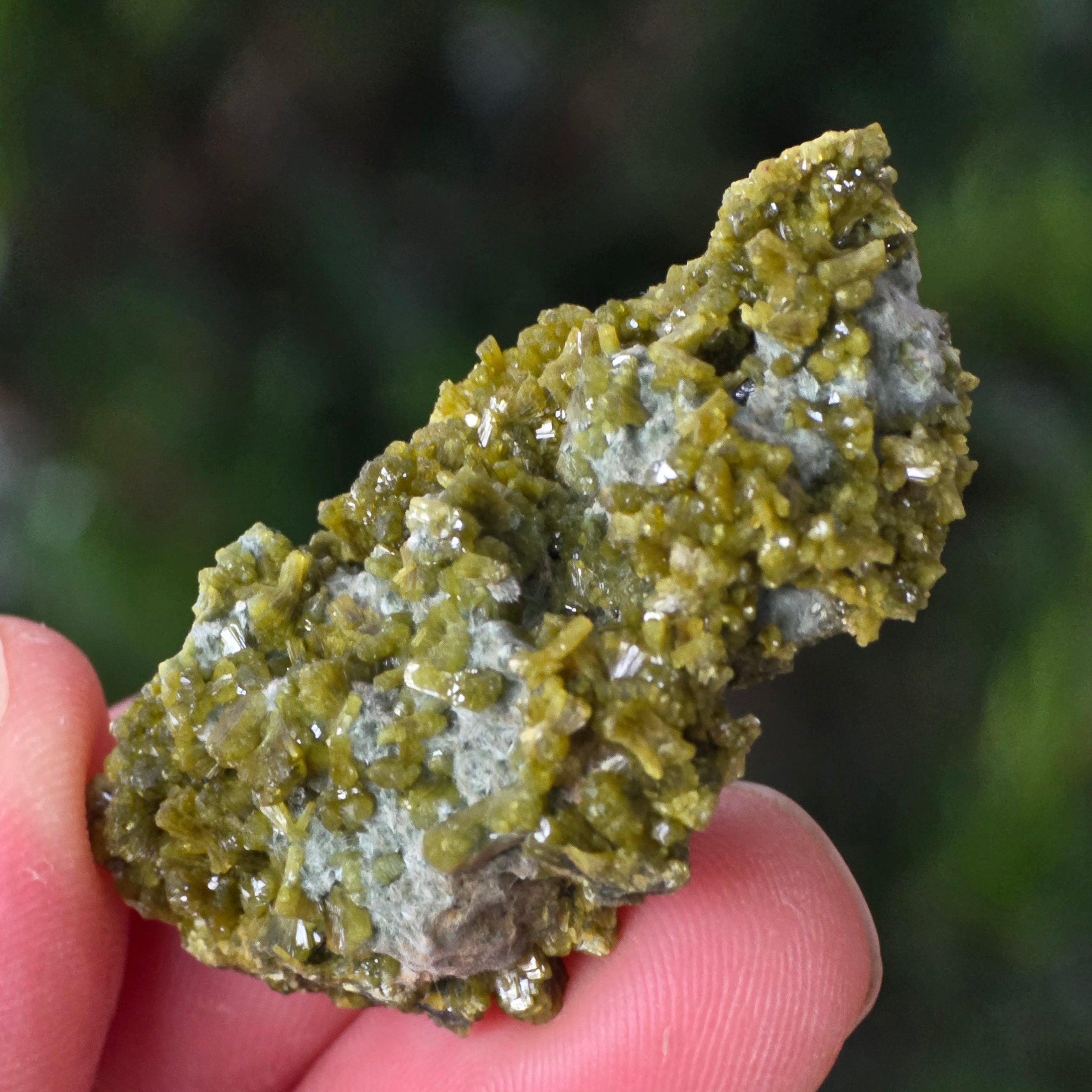 Epidotul se formează în roci metamorfice și în cavități hidrotermale, ca rezultat al transformării lente a mineralelor primare sub presiunea Pământului. Cristalele sale prismatice, lucioase, pot varia de la verde măsliniu la verde intens sau chiar brun-verzui, în funcție de conținutul de fier.