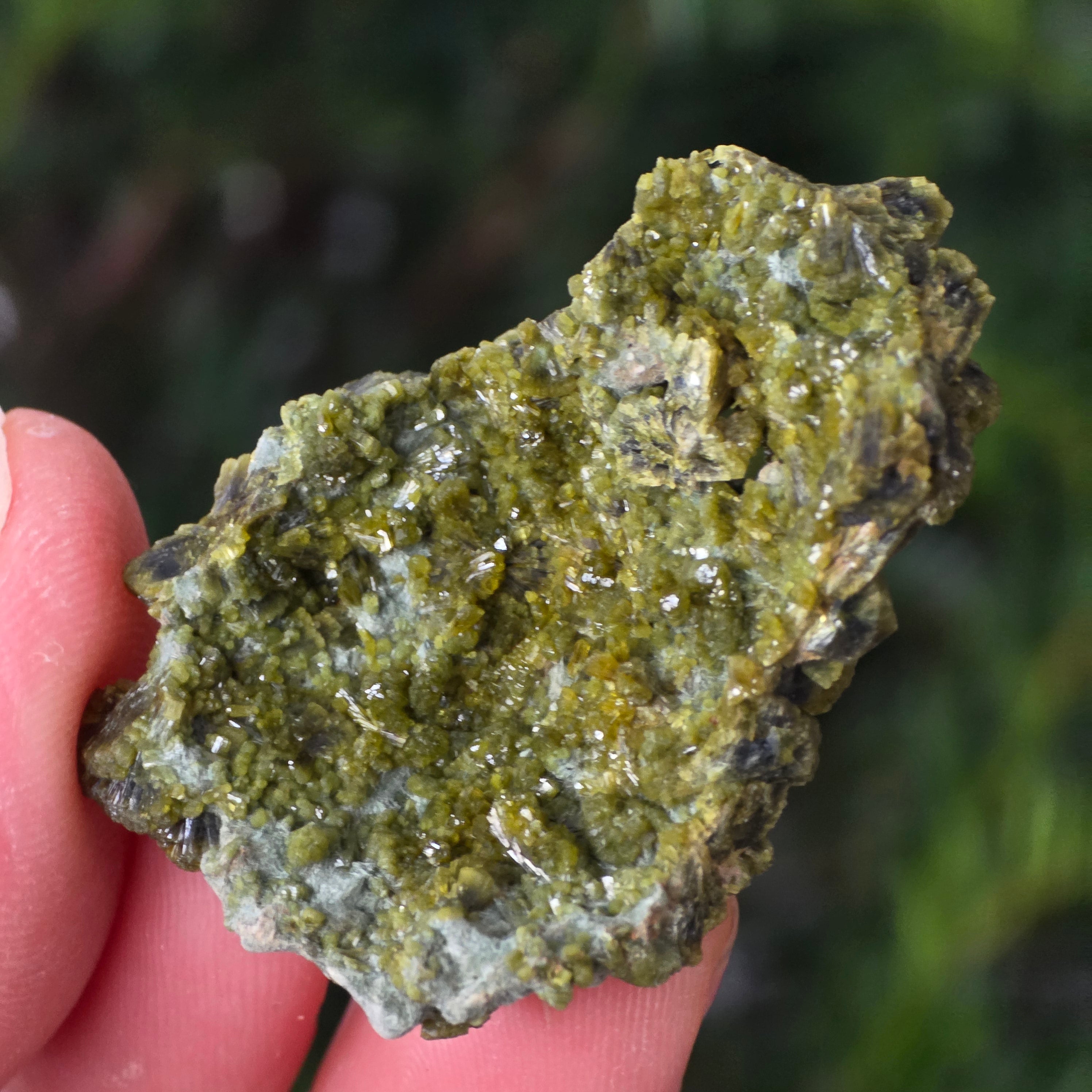 Epidotul se formează în roci metamorfice și în cavități hidrotermale, ca rezultat al transformării lente a mineralelor primare sub presiunea Pământului. Cristalele sale prismatice, lucioase, pot varia de la verde măsliniu la verde intens sau chiar brun-verzui, în funcție de conținutul de fier.