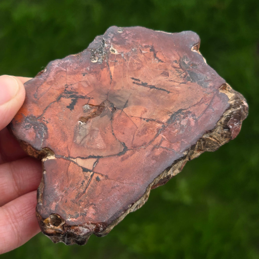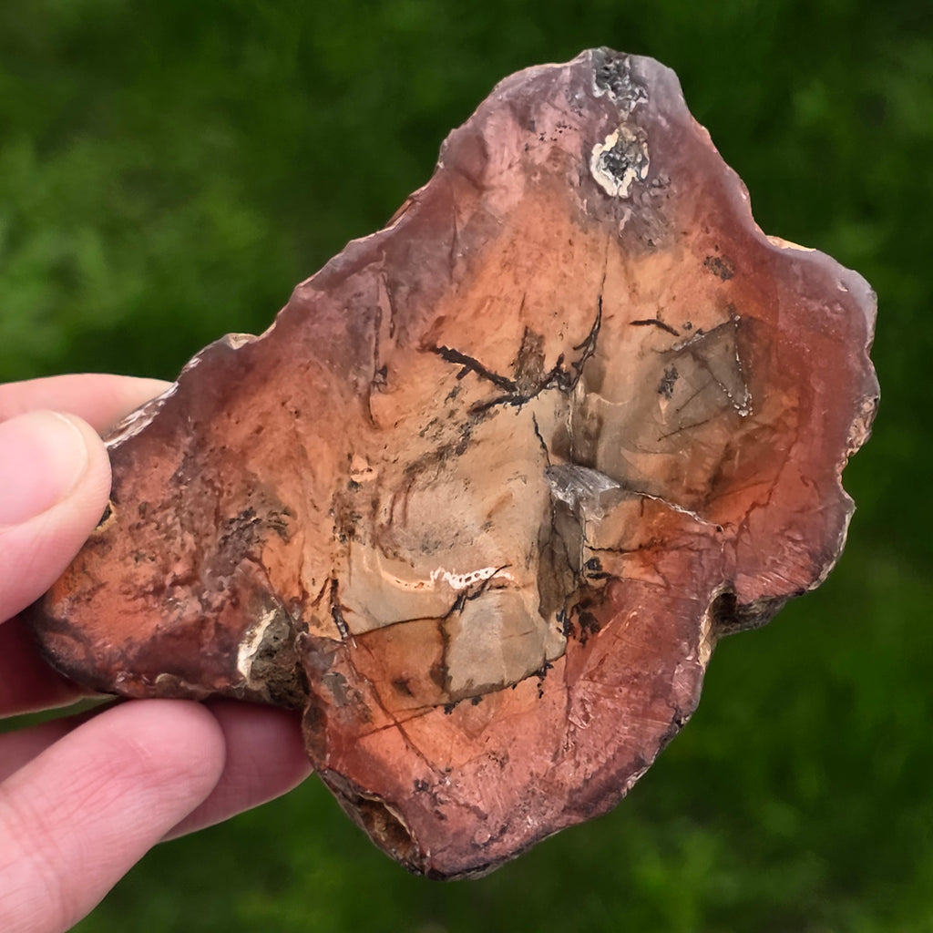 Lemnul pietrificat, cunoscut și sub numele de lemn silicifiat sau fossilized wood, este o piatră născută din răbdare geologică și din ciclurile tăcute ale pământului. Se formează atunci când trunchiurile copacilor antici sunt îngropate rapid sub sedimente vulcanice sau nămoluri bogate în minerale, lipsindu-le de oxigen. În acest mediu, procesul de petrificare are loc lent – moleculele organice ale lemnului sunt înlocuite treptat cu silice (în principal cuarț), dar textura și structura originală a fibrei lemnoase se păstrează în mod miraculos.
