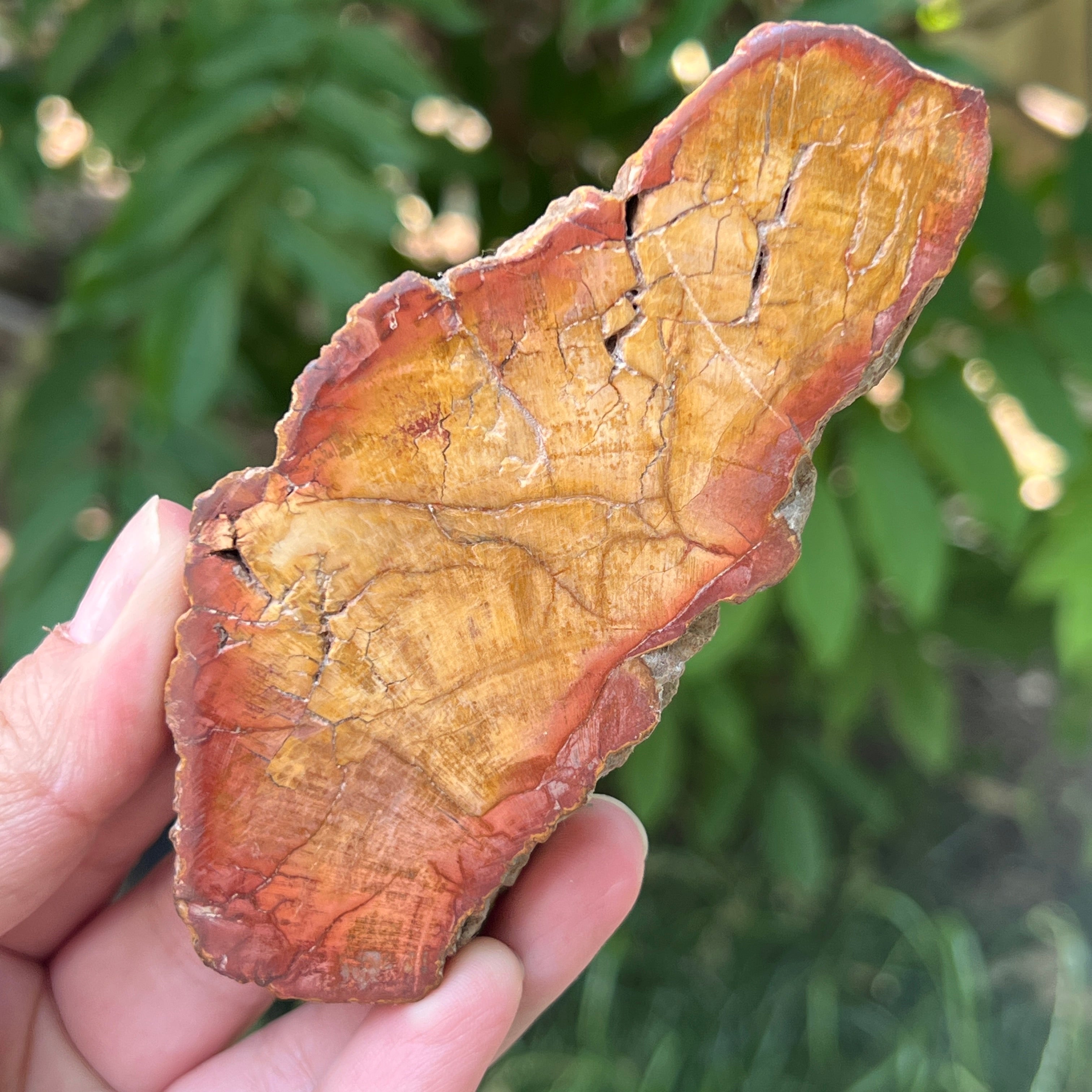 În timp, culorile lemnului pietrificat se dezvoltă datorită impurităților minerale: fierul adaugă nuanțe roșiatice sau portocalii, manganul aduce tonuri negre și violet, iar cuprul poate introduce accente verzui sau albăstrii. Deși pare lemn la prima vedere, această piatră este complet mineralizată, având o duritate Mohs de aproximativ 6,5 – 7, similară cu cea a cuarțului.