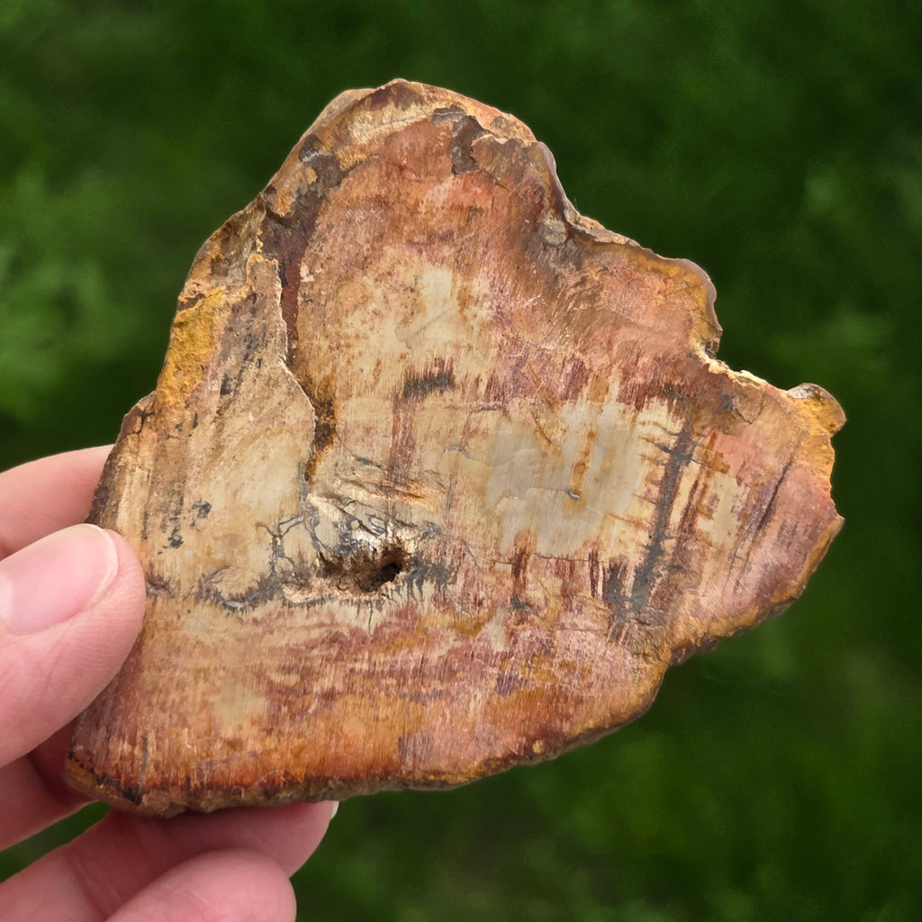 În timp, culorile lemnului pietrificat se dezvoltă datorită impurităților minerale: fierul adaugă nuanțe roșiatice sau portocalii, manganul aduce tonuri negre și violet, iar cuprul poate introduce accente verzui sau albăstrii. Deși pare lemn la prima vedere, această piatră este complet mineralizată, având o duritate Mohs de aproximativ 6,5 – 7, similară cu cea a cuarțului.