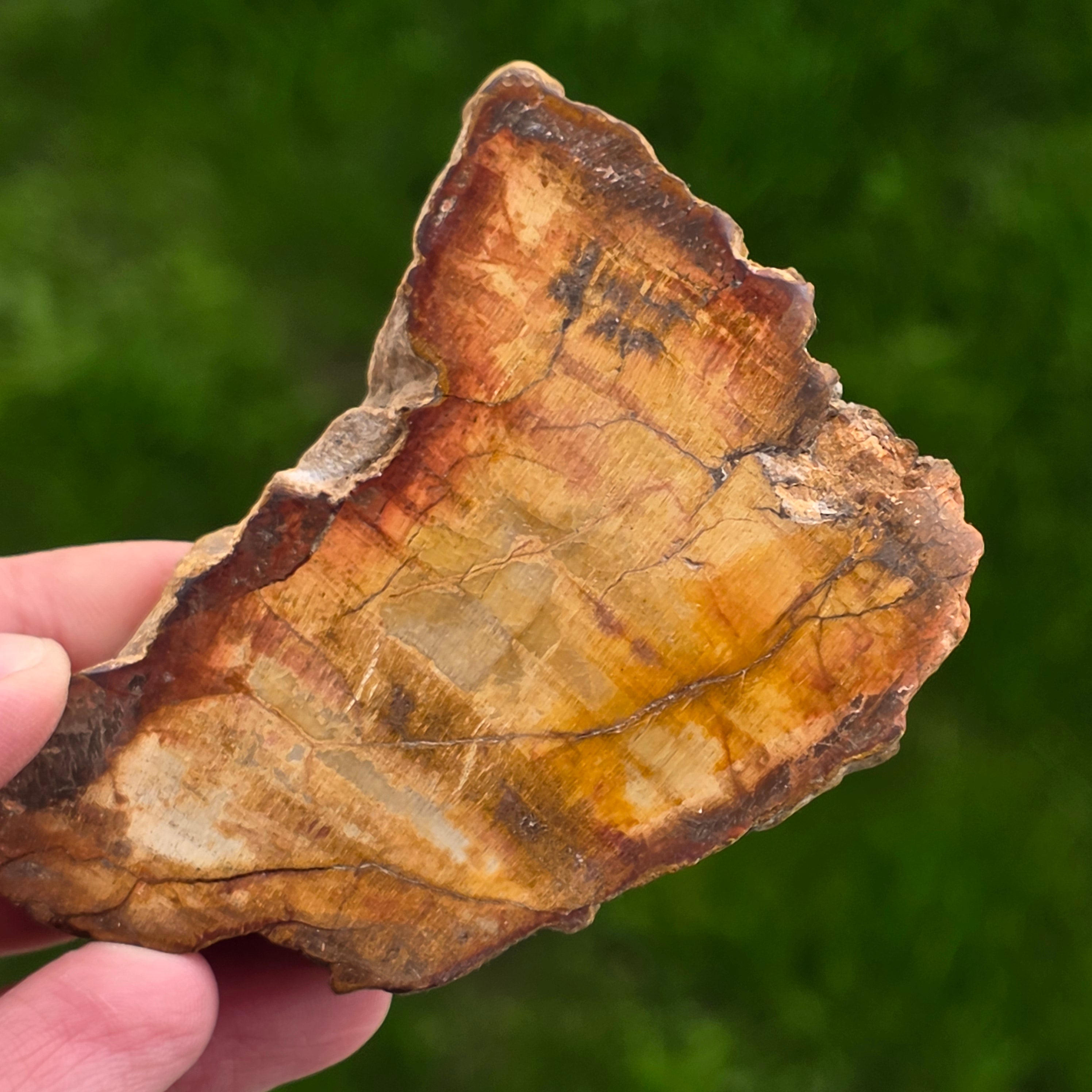 Lemnul pietrificat, cunoscut și sub numele de lemn silicifiat sau fossilized wood, este o piatră născută din răbdare geologică și din ciclurile tăcute ale pământului. Se formează atunci când trunchiurile copacilor antici sunt îngropate rapid sub sedimente vulcanice sau nămoluri bogate în minerale, lipsindu-le de oxigen. În acest mediu, procesul de petrificare are loc lent – moleculele organice ale lemnului sunt înlocuite treptat cu silice (în principal cuarț), dar textura și structura originală a fibrei lemnoase se păstrează în mod miraculos.