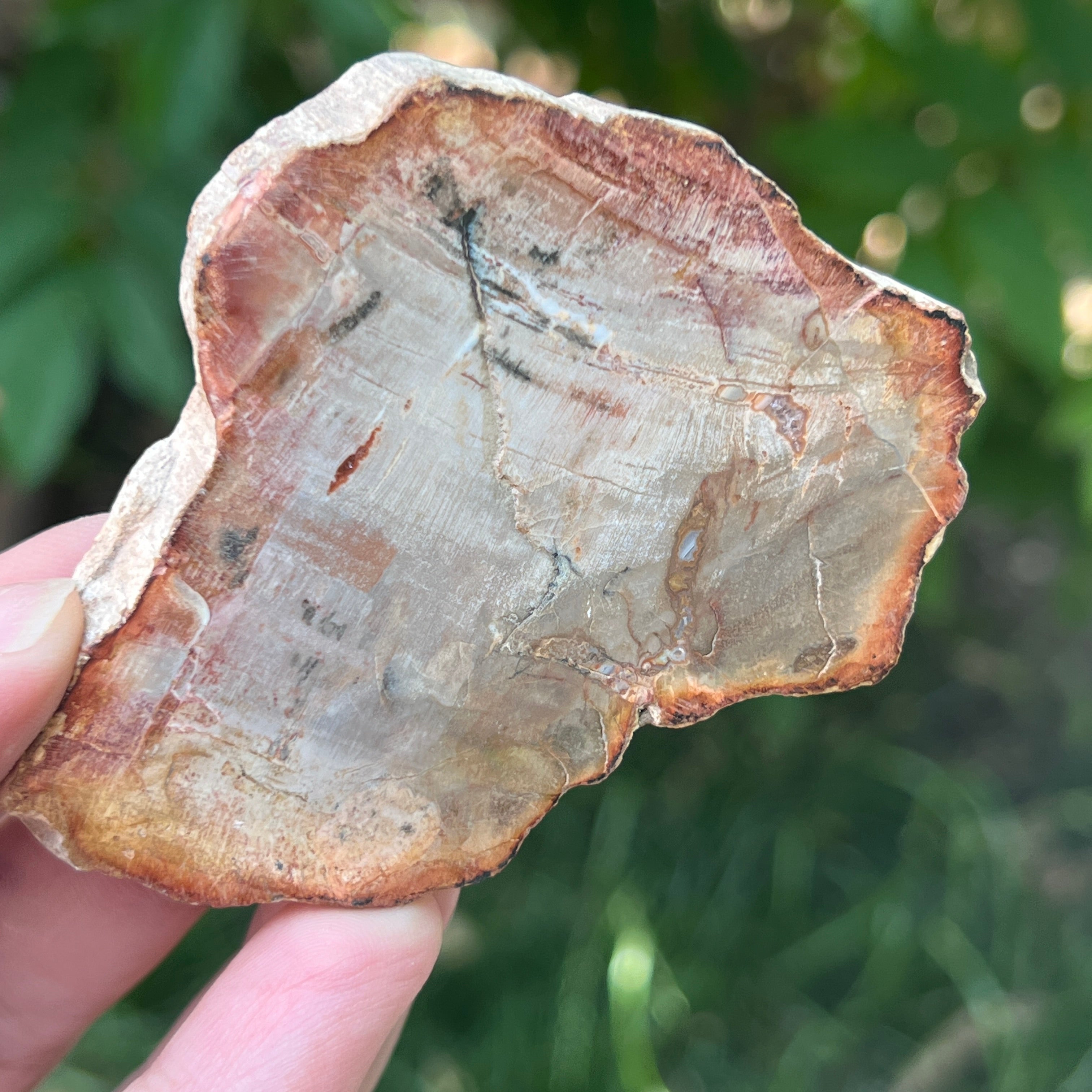 Lemnul pietrificat, cunoscut și sub numele de lemn silicifiat sau fossilized wood, este o piatră născută din răbdare geologică și din ciclurile tăcute ale pământului. Se formează atunci când trunchiurile copacilor antici sunt îngropate rapid sub sedimente vulcanice sau nămoluri bogate în minerale, lipsindu-le de oxigen. În acest mediu, procesul de petrificare are loc lent – moleculele organice ale lemnului sunt înlocuite treptat cu silice (în principal cuarț), dar textura și structura originală a fibrei lemnoase se păstrează în mod miraculos.