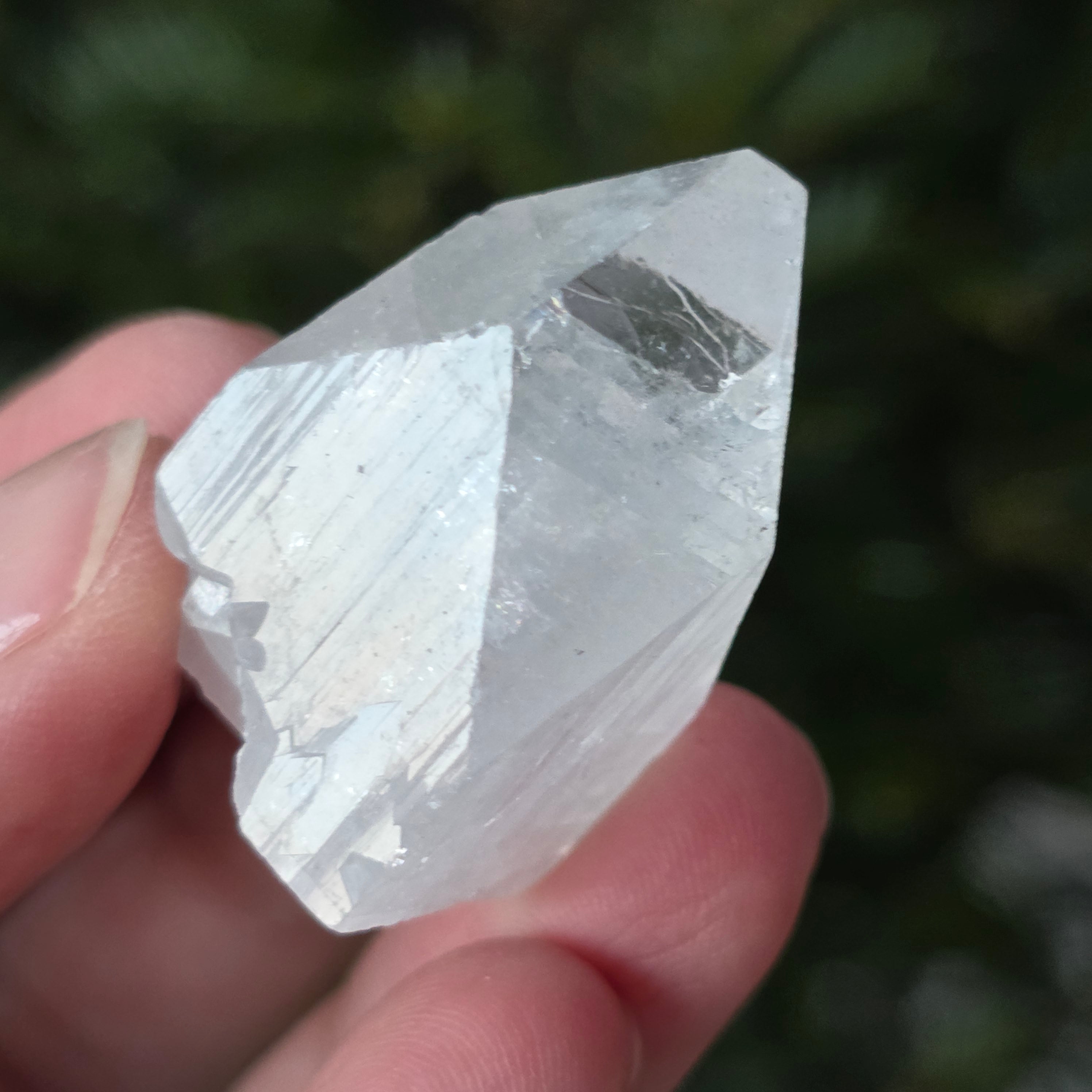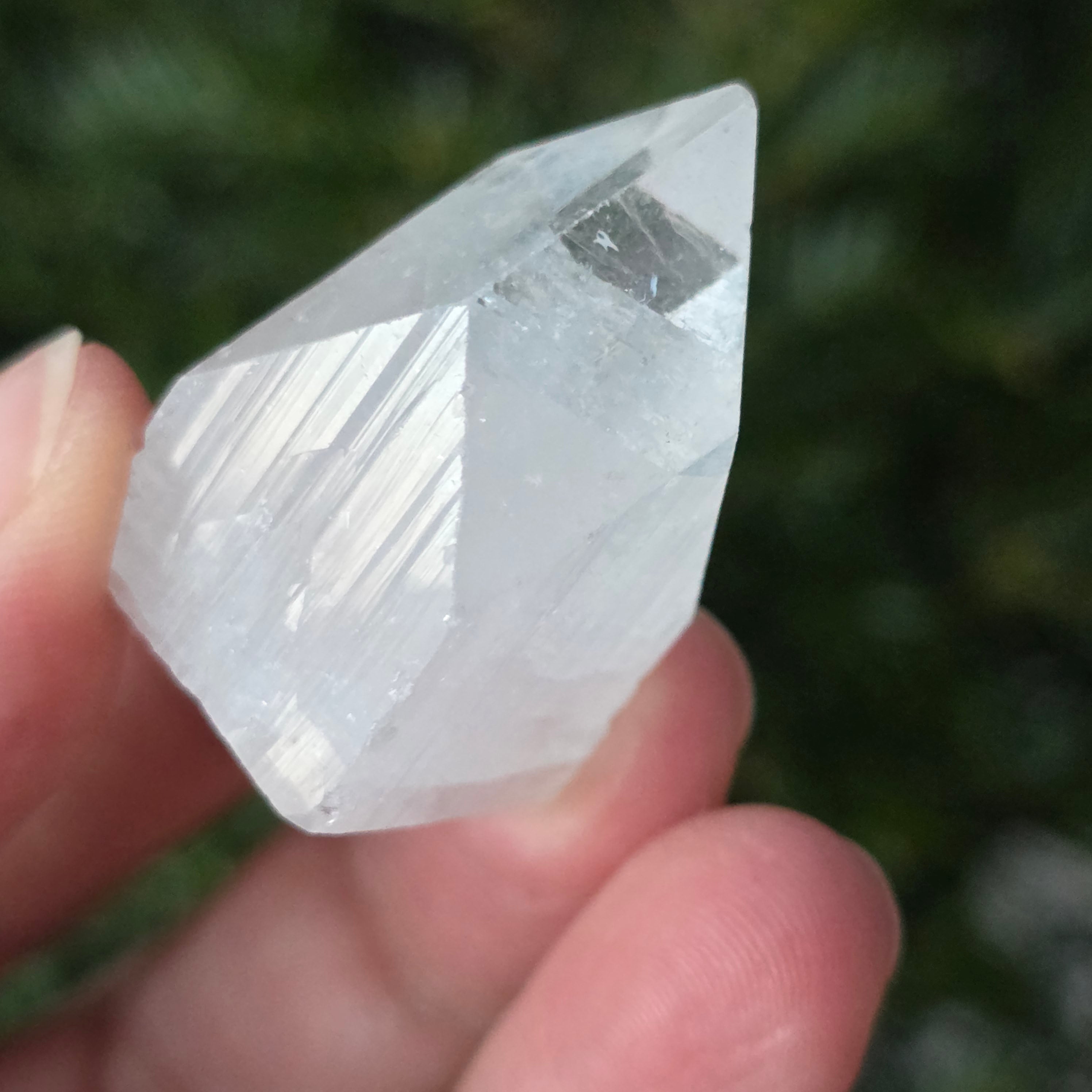 • Culoare: transparent-alb, cu reflexii lucioase și ușoare irizații verzi