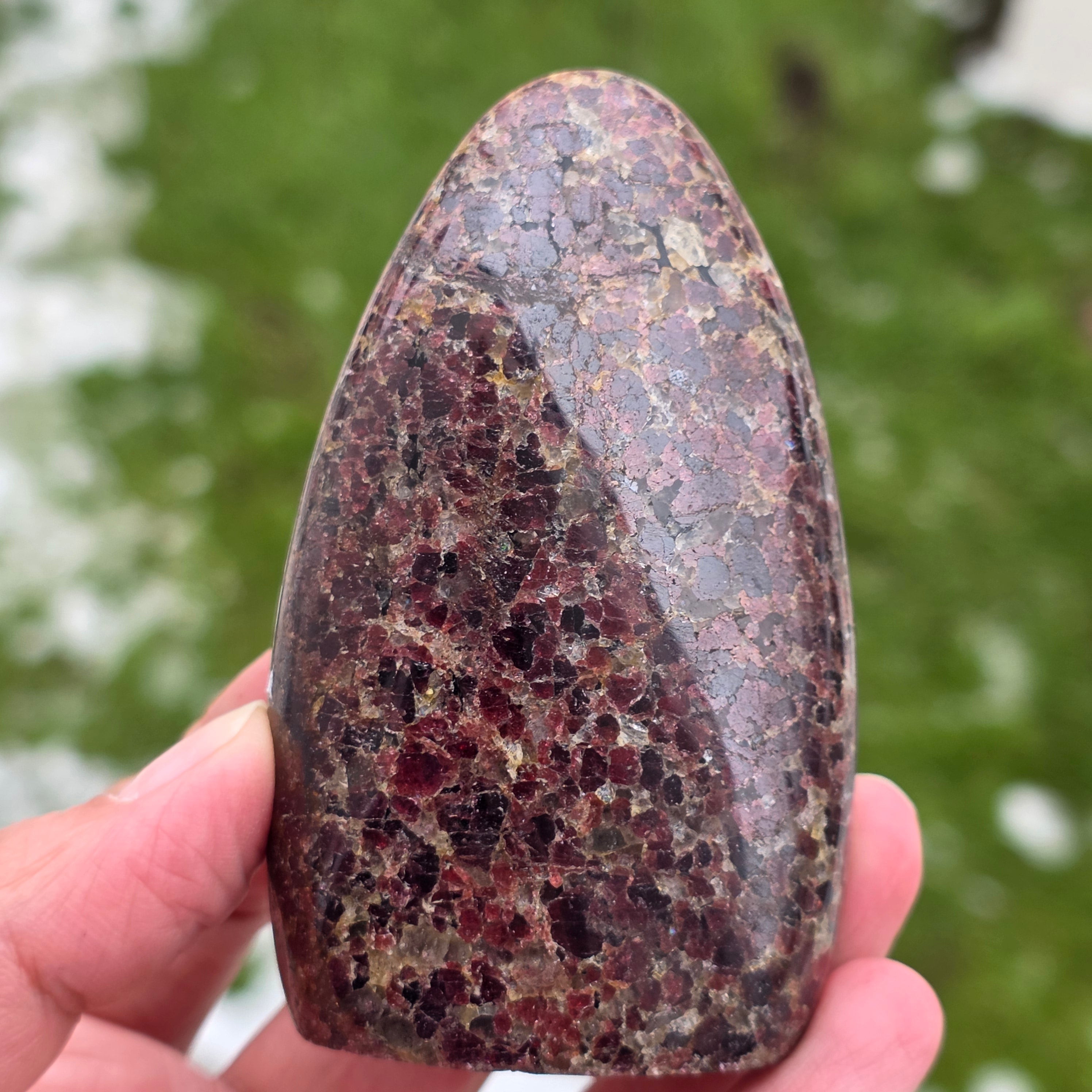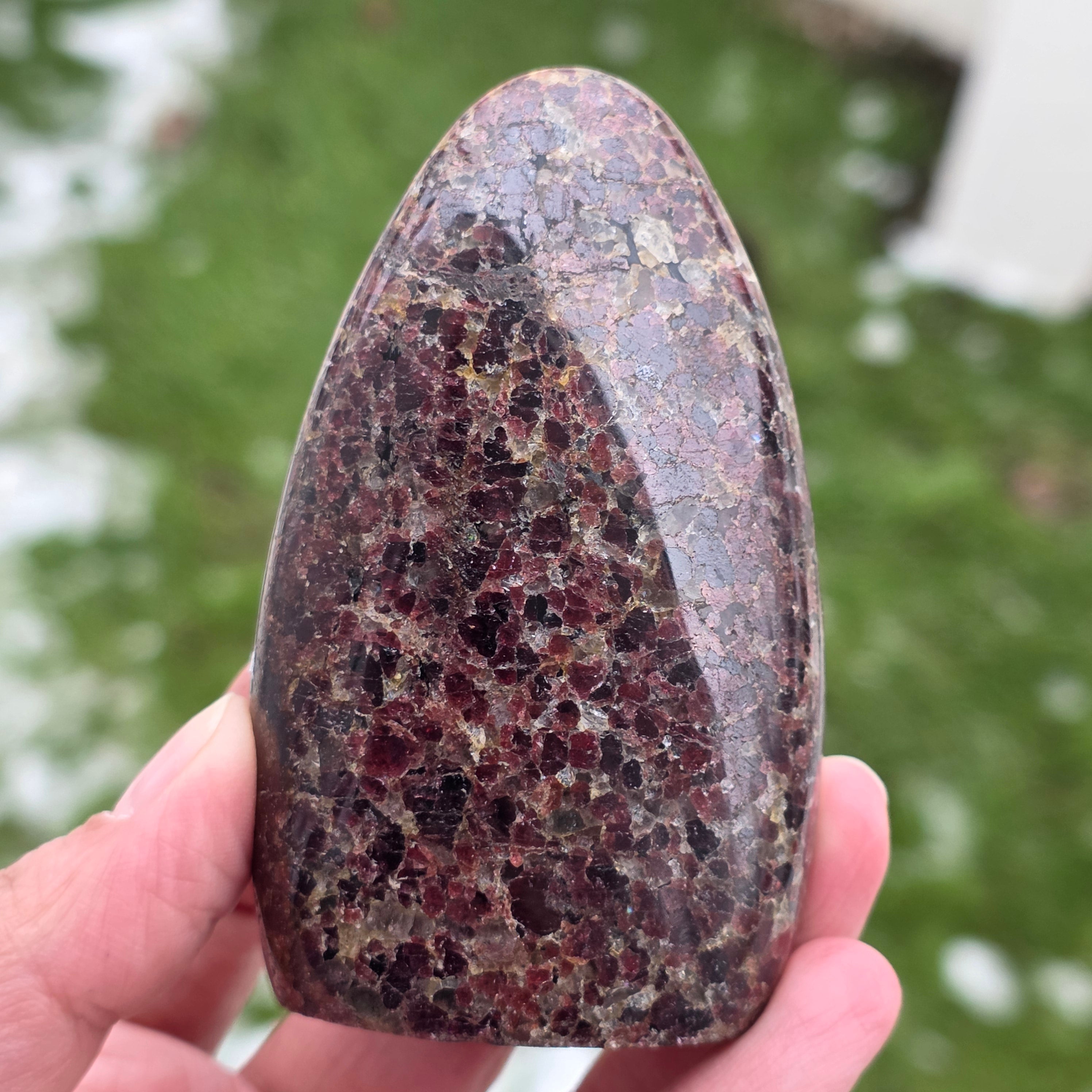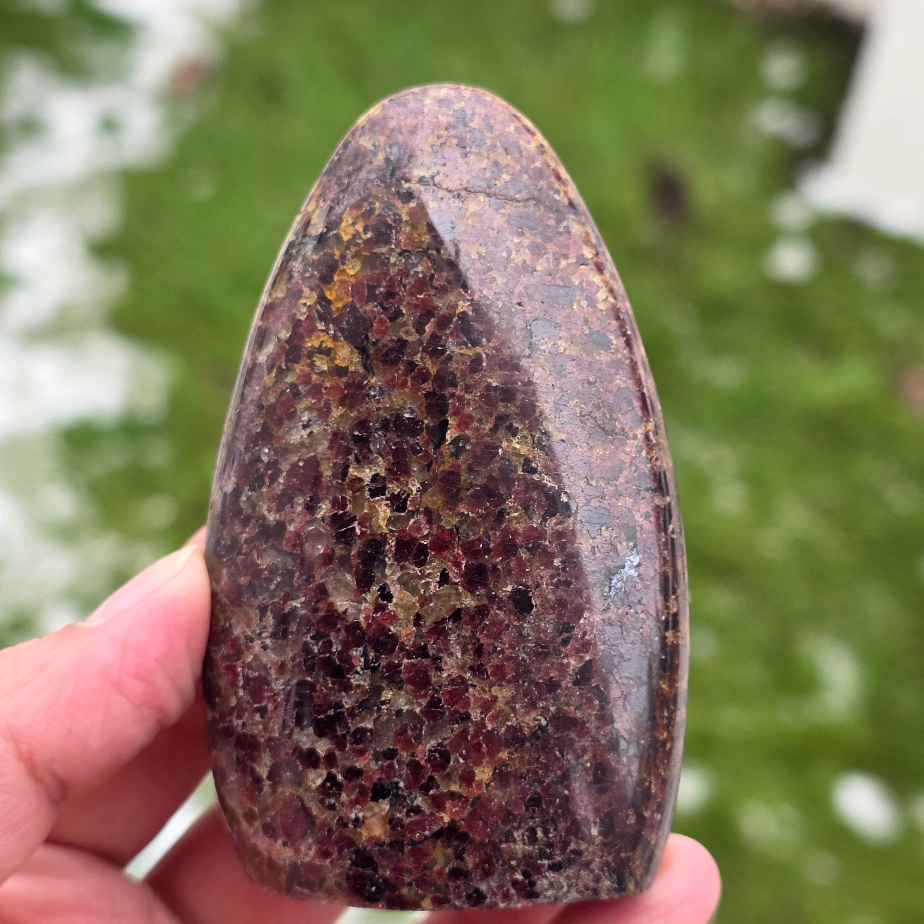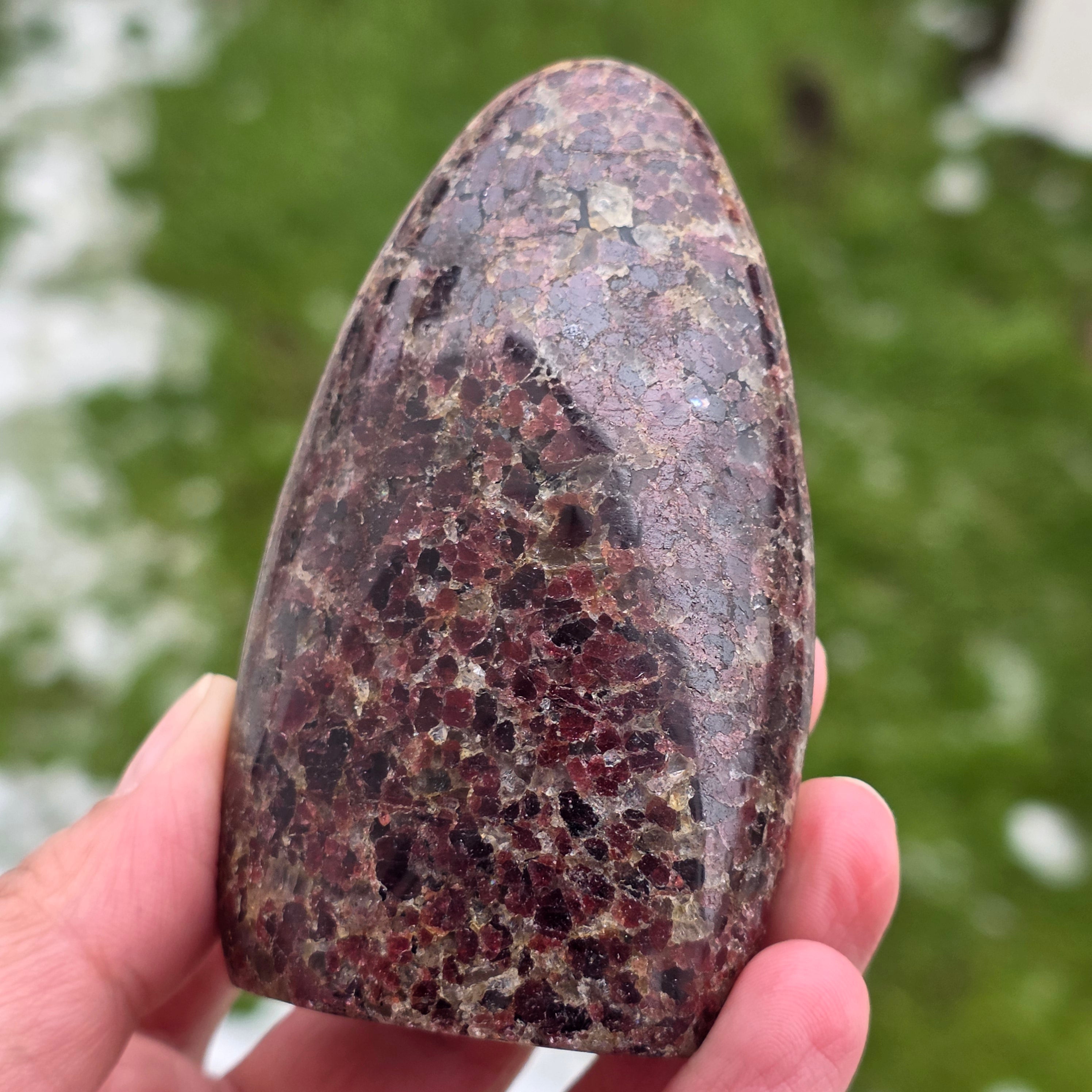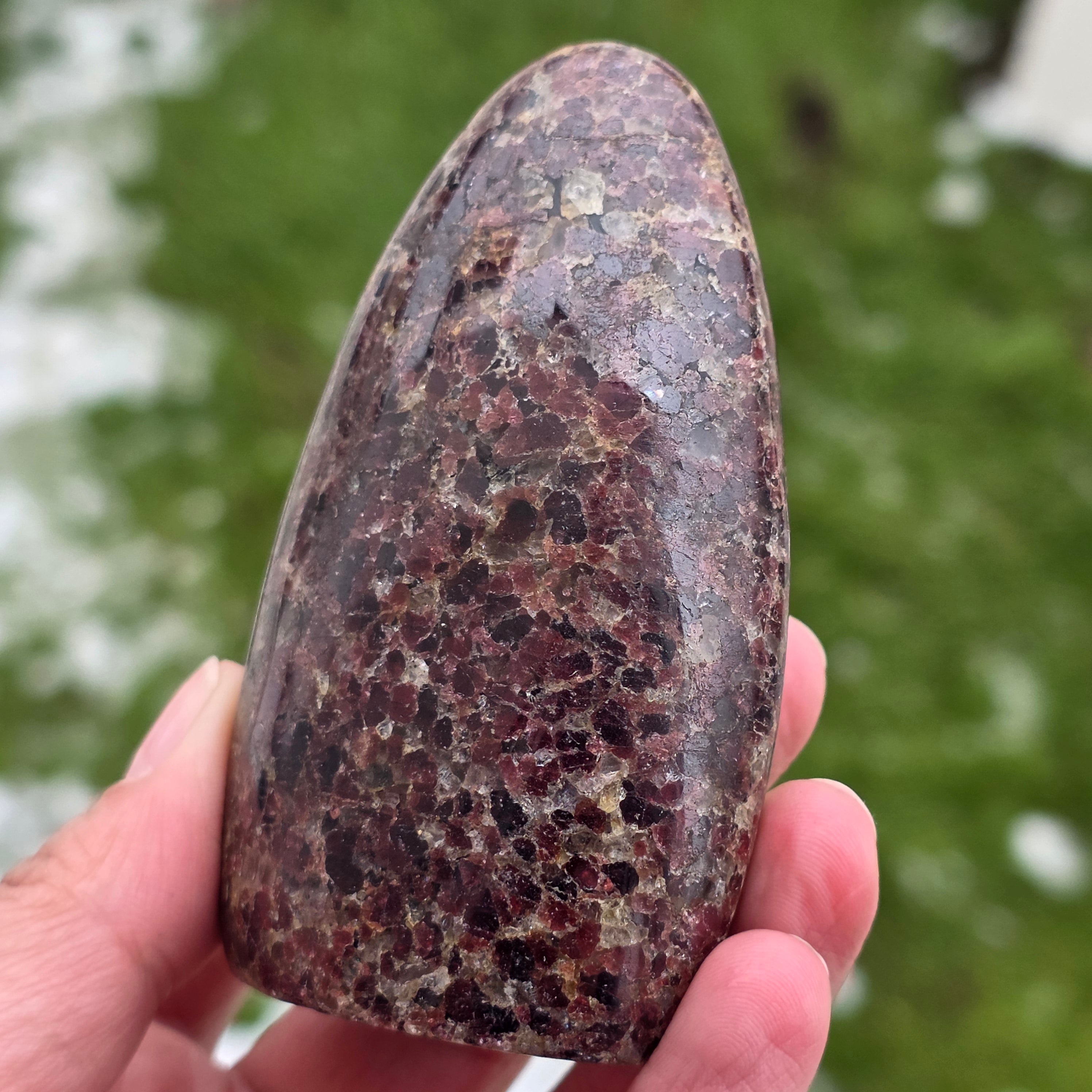 Această piesă din granat natural din Madagascar, cu structură în formă liberă, păstrează caracterul autentic al cristalului, evidențiind echilibrul dintre suprafețele șlefuite și zonele naturale. Este o piesă potrivită pentru colecție, spații de meditație sau birou, având o prezență puternică și stabilizatoare. Granatul este asociat cu vitalitatea, ancorarea și forța interioară, fiind ales adesea pentru susținerea energiei în perioade de efort, transformare și reconectare cu propria putere. Forma liberă permite o expresie naturală a energiei, oferind acestei piese un caracter unic și autentic. Granatul este, de asemenea, considerat a fi o piatră a pasiunii și a energiei sexuale și este adesea purtat pentru a crește nivelul de energie și vitalitate.