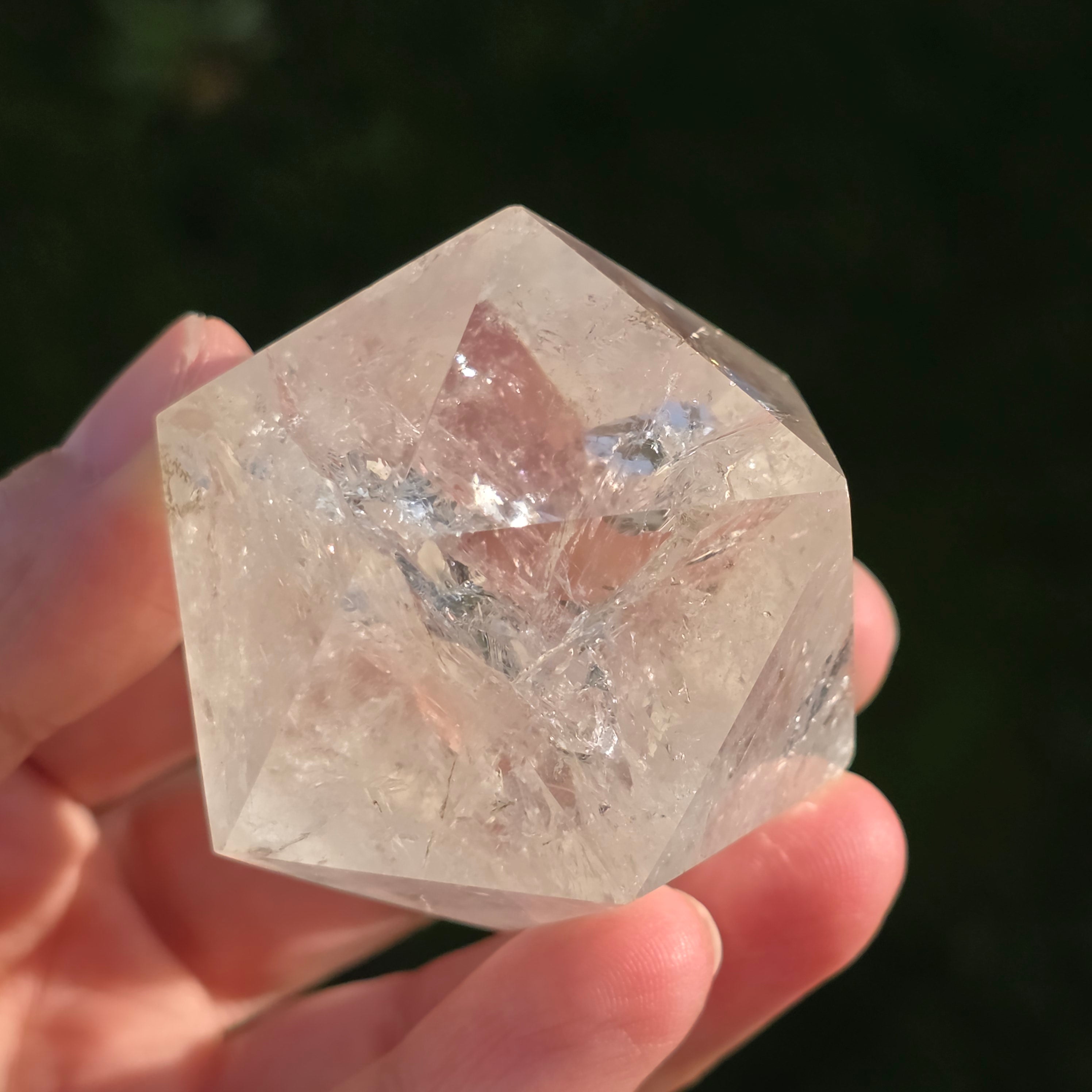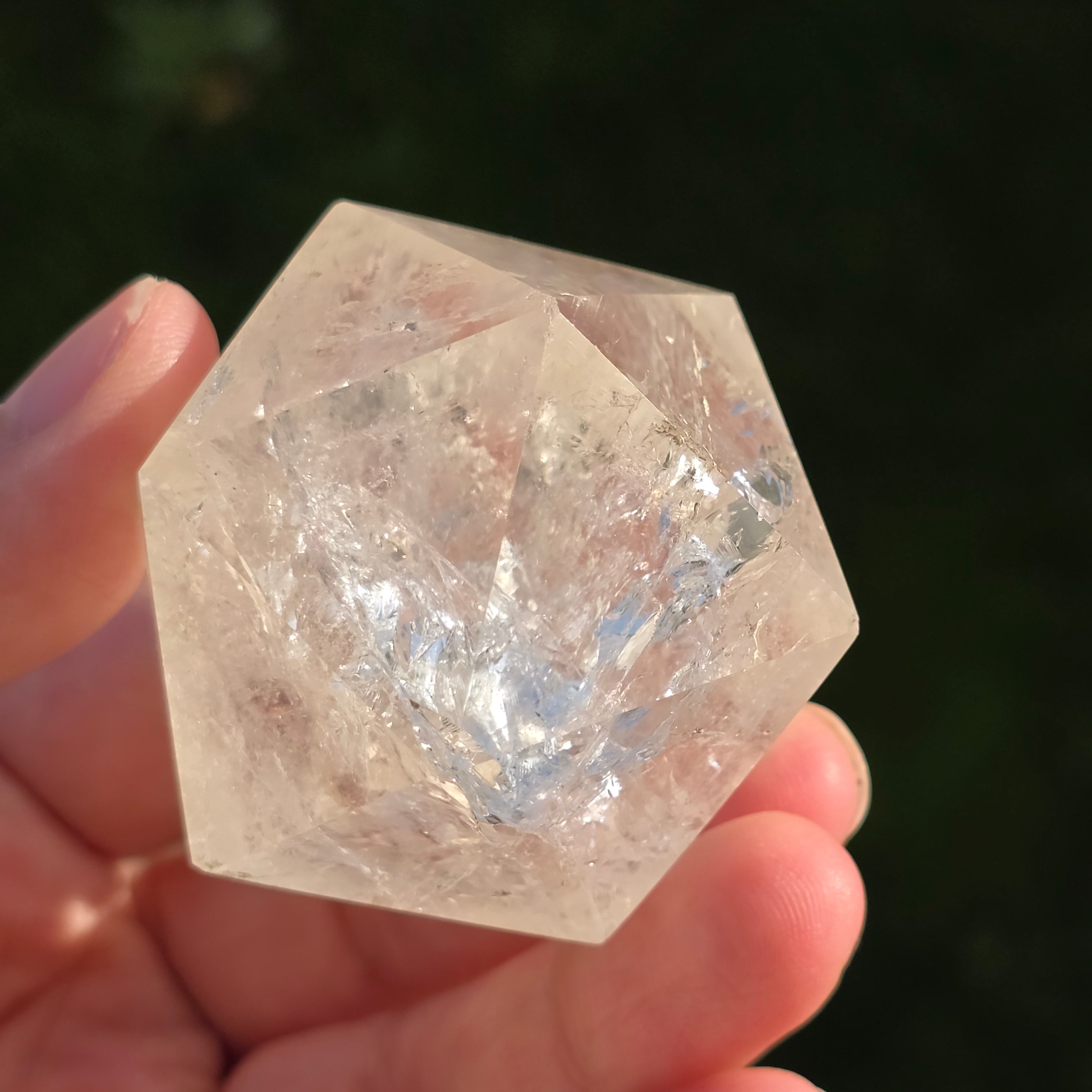 Realizat din cristal de stâncă – piatra clarității și a amplificării energiei – acest icosaedru aduce echilibru, fluiditate și deschidere către transformare interioară.