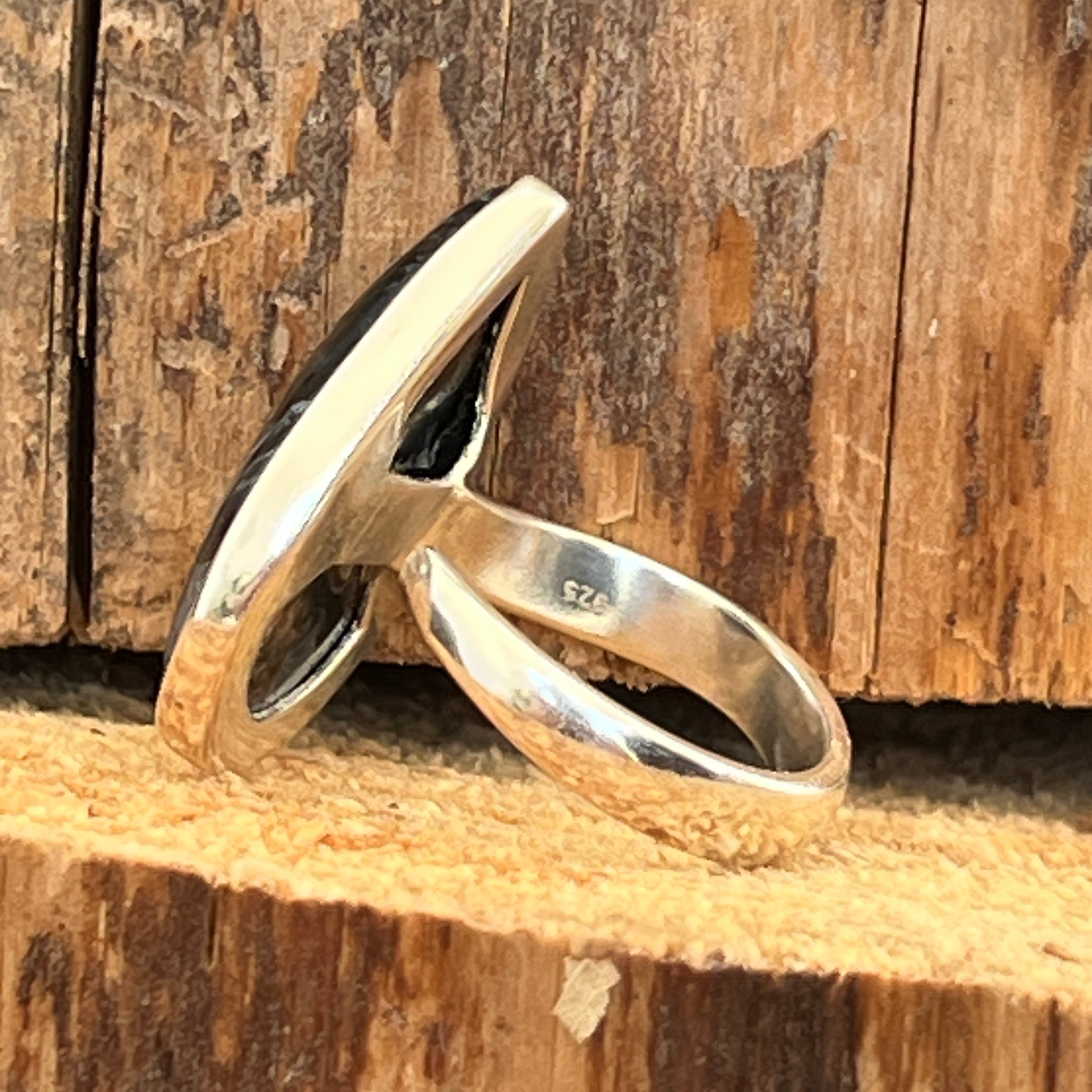 Descriere - Inel ajustabil pietersit din argint, piatra furtunii model 3