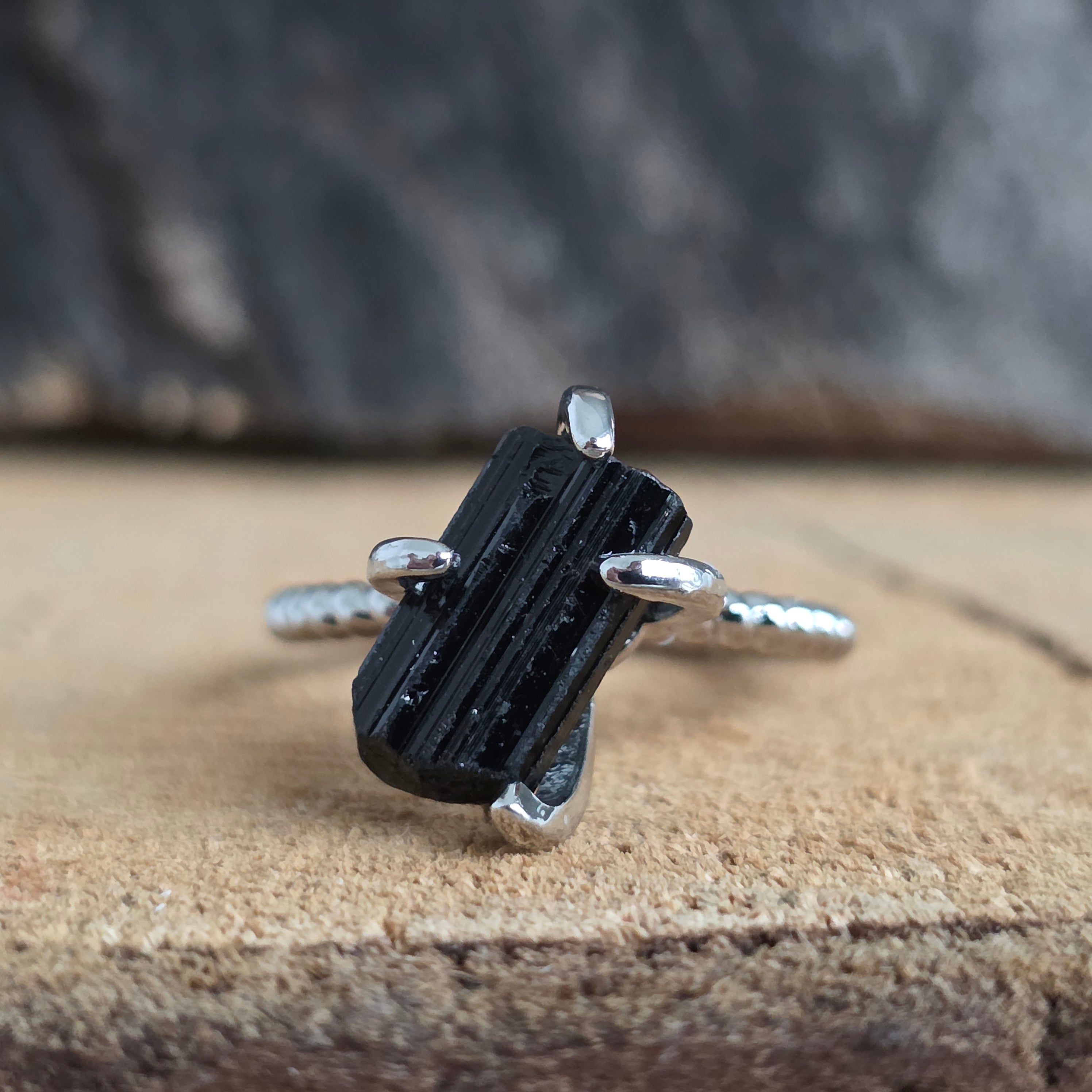 Descriere - Inel ajustabil turmalina neagra | Raw
