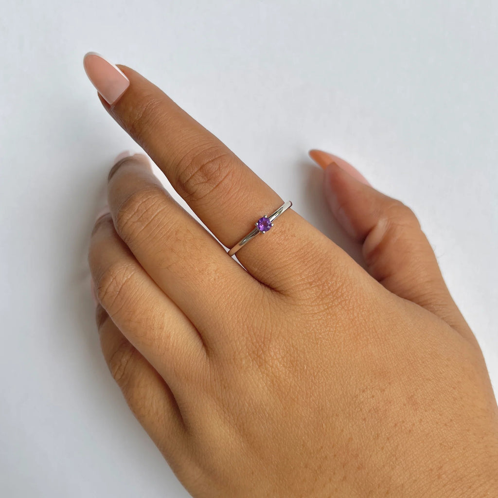 Ametistul este considerat piatra clarității și a spiritualității, fiind purtat de-a lungul timpului ca simbol al protecției și al echilibrului sufletesc. Strălucirea sa discretă adaugă un farmec aparte, transformând acest inel într-o piesă rafinată, ideală pentru a fi purtată zilnic sau în momente speciale.