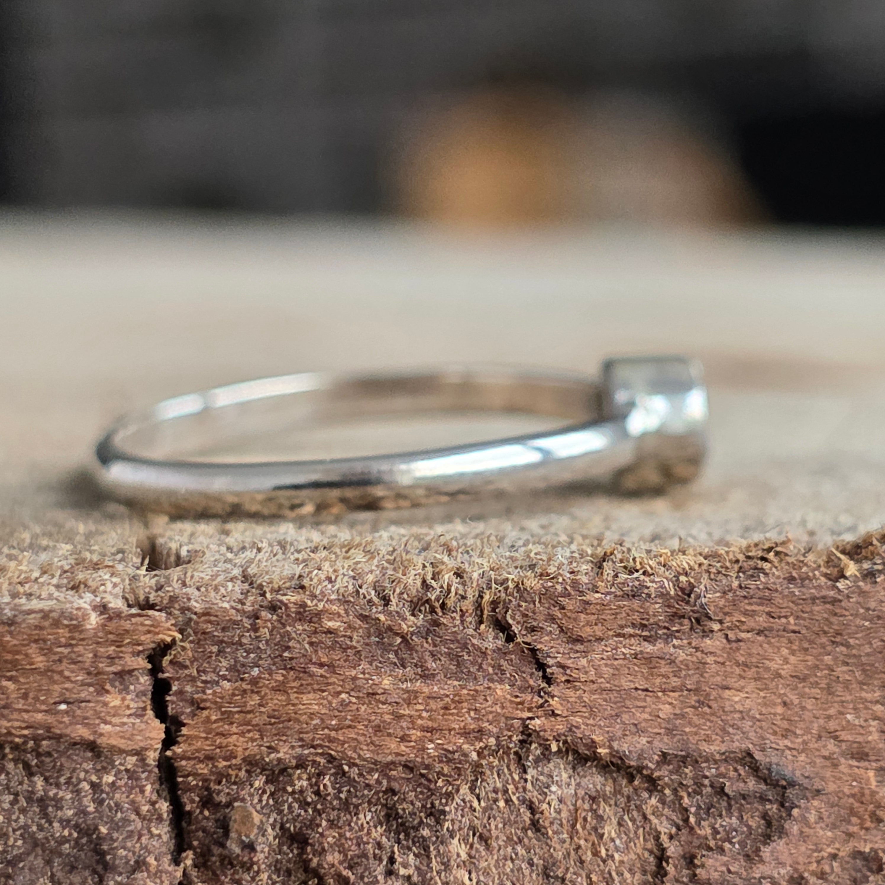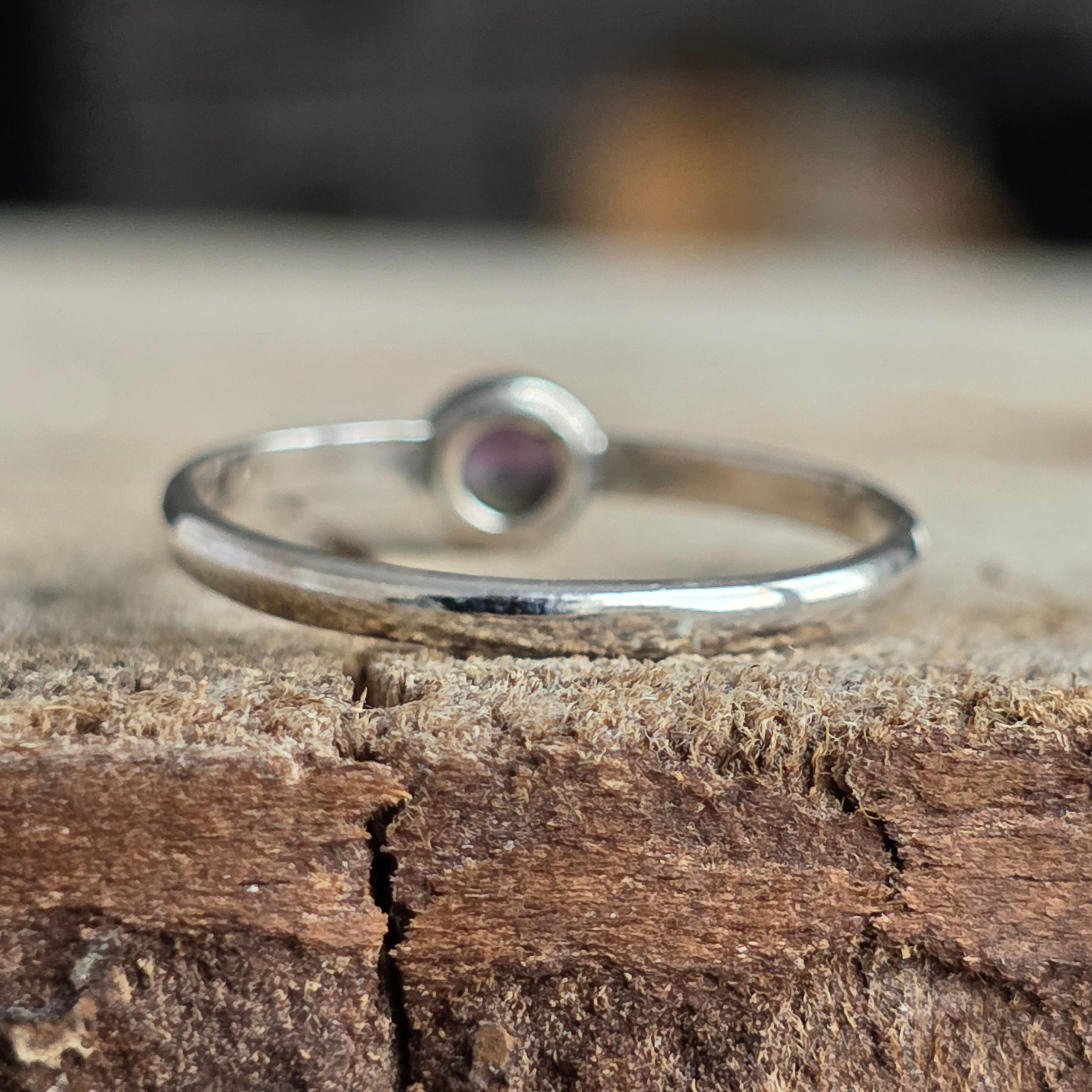 Designul minimalist pune accent pe esență — o montură fină ce lasă lumina să pătrundă prin piatră, amplificându-i nuanțele violet translucide.
